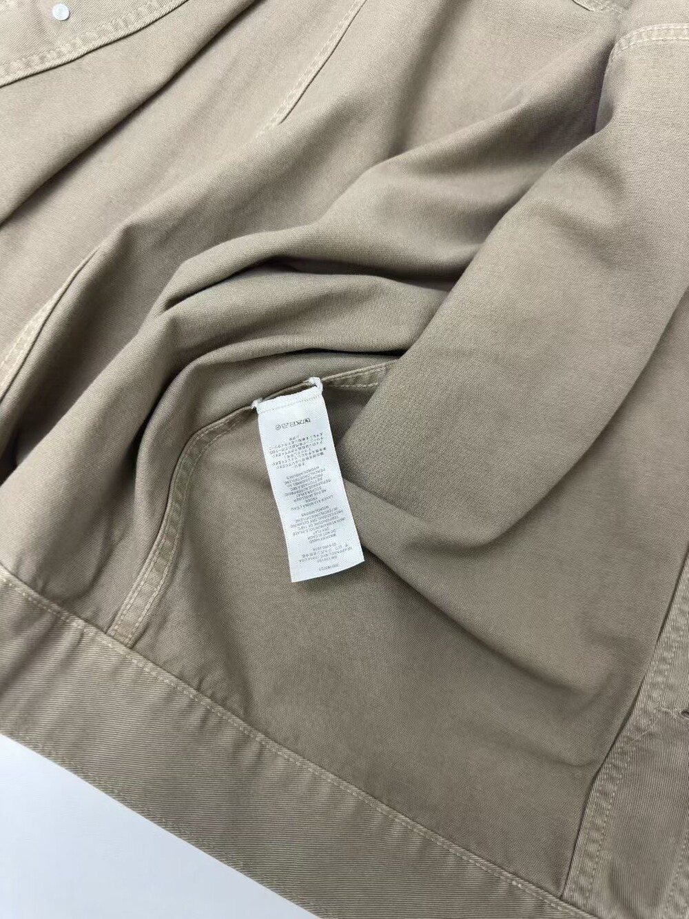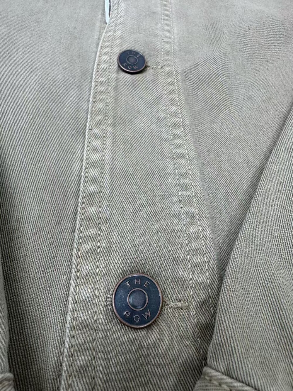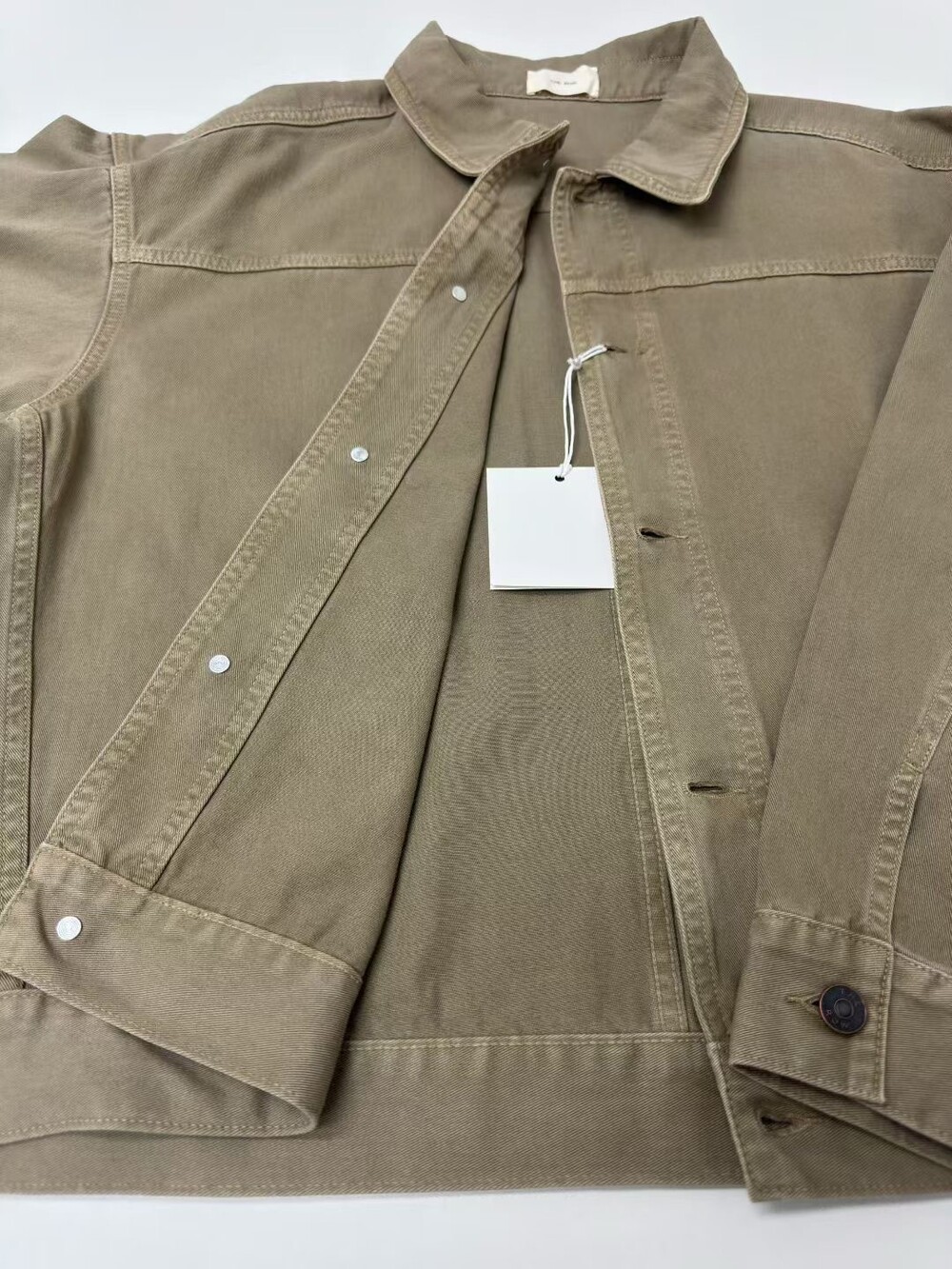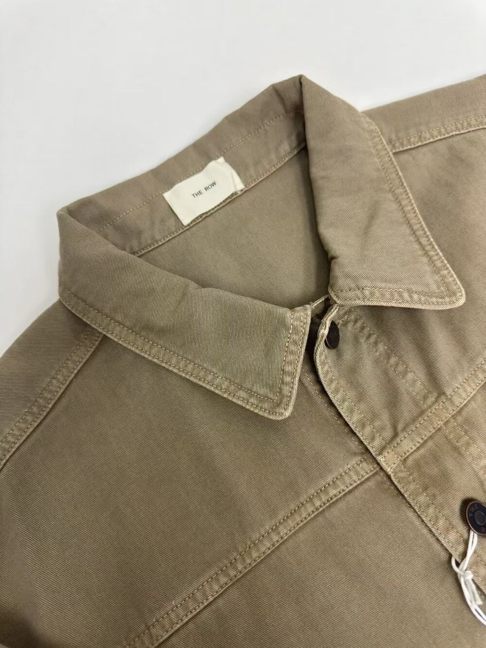 100% 면 소재의 루즈핏 셔츠입니다. 앞면 버튼 여밈 방식이며, 버튼 커프스 디테일이 있습니다.
