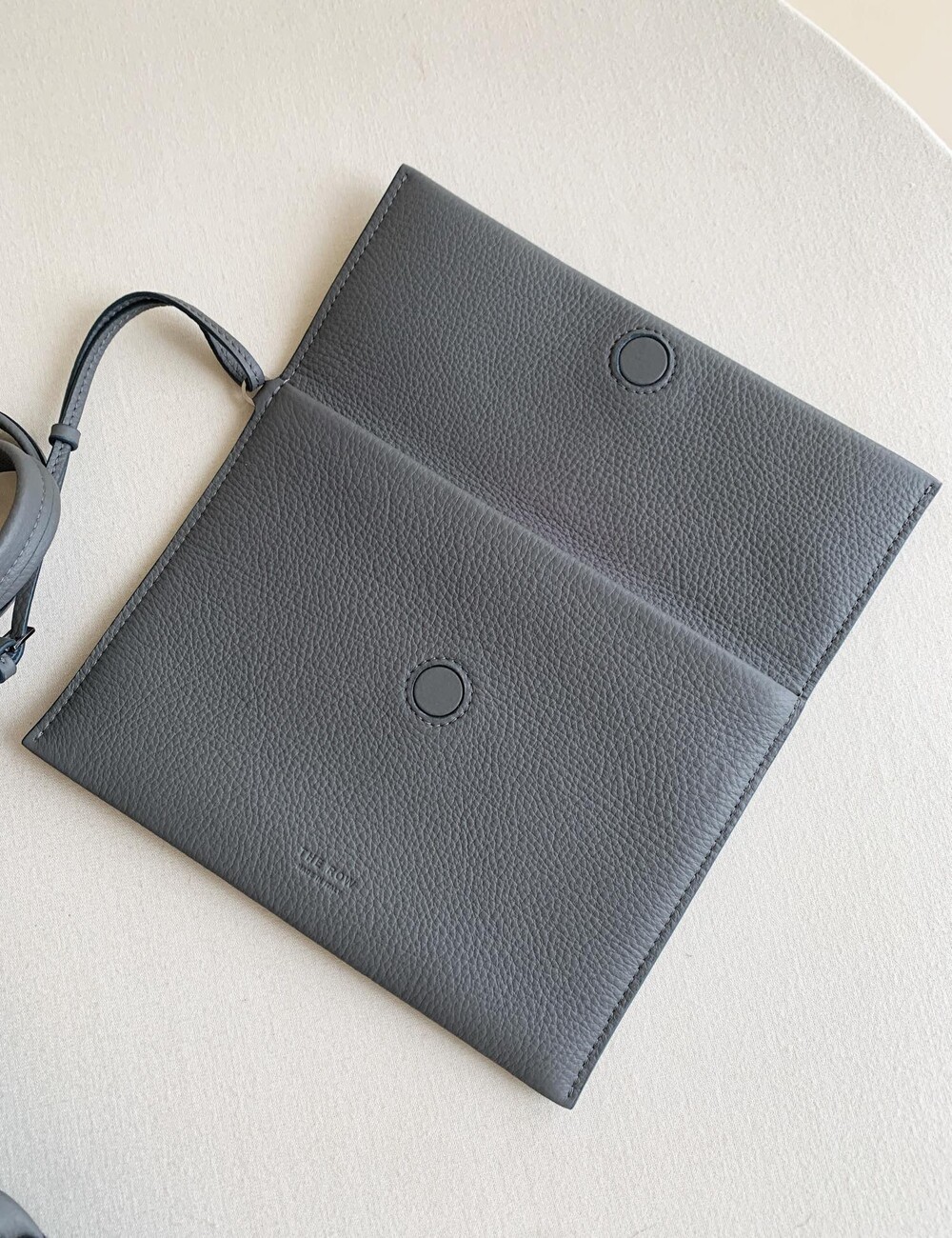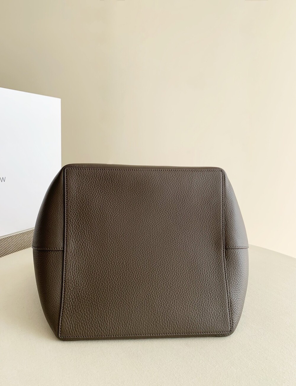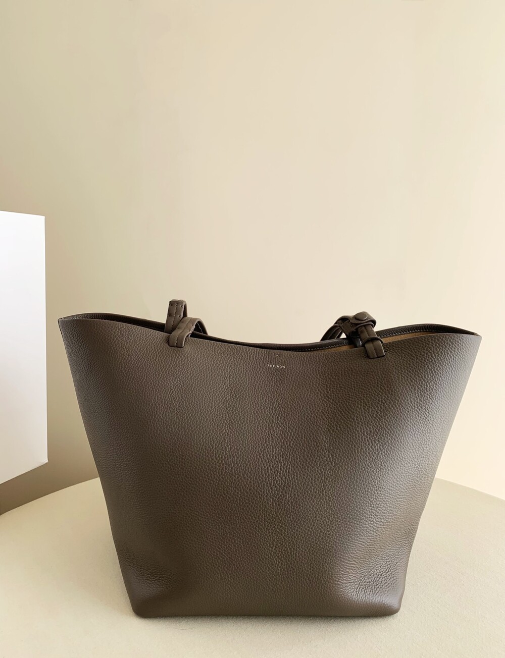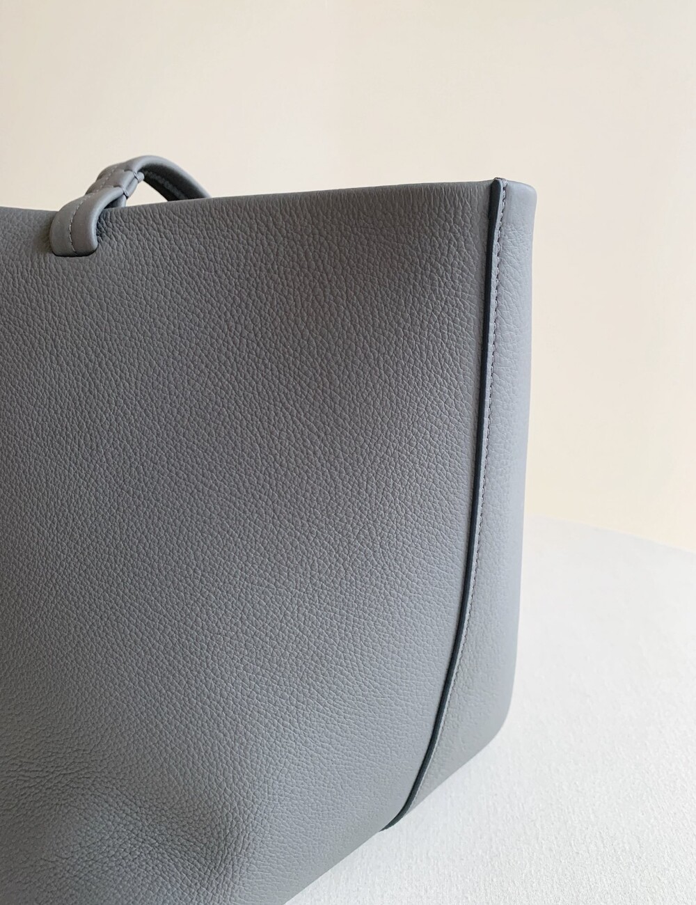 내부 타이 클로저, 플랫 핸들, 탈부착 내부 손목끈과 조절식 스트랩이 특징인 질감 마감된 송아지 가죽 소재의 클래식 토트백. 최소한의 마감만 적용한 천연 그레인 표면을 그대로 살려 가죽에 부드러운 감촉과 세련된 질감을 부여하여 시간이 지날수록 개성이 더해집니다.