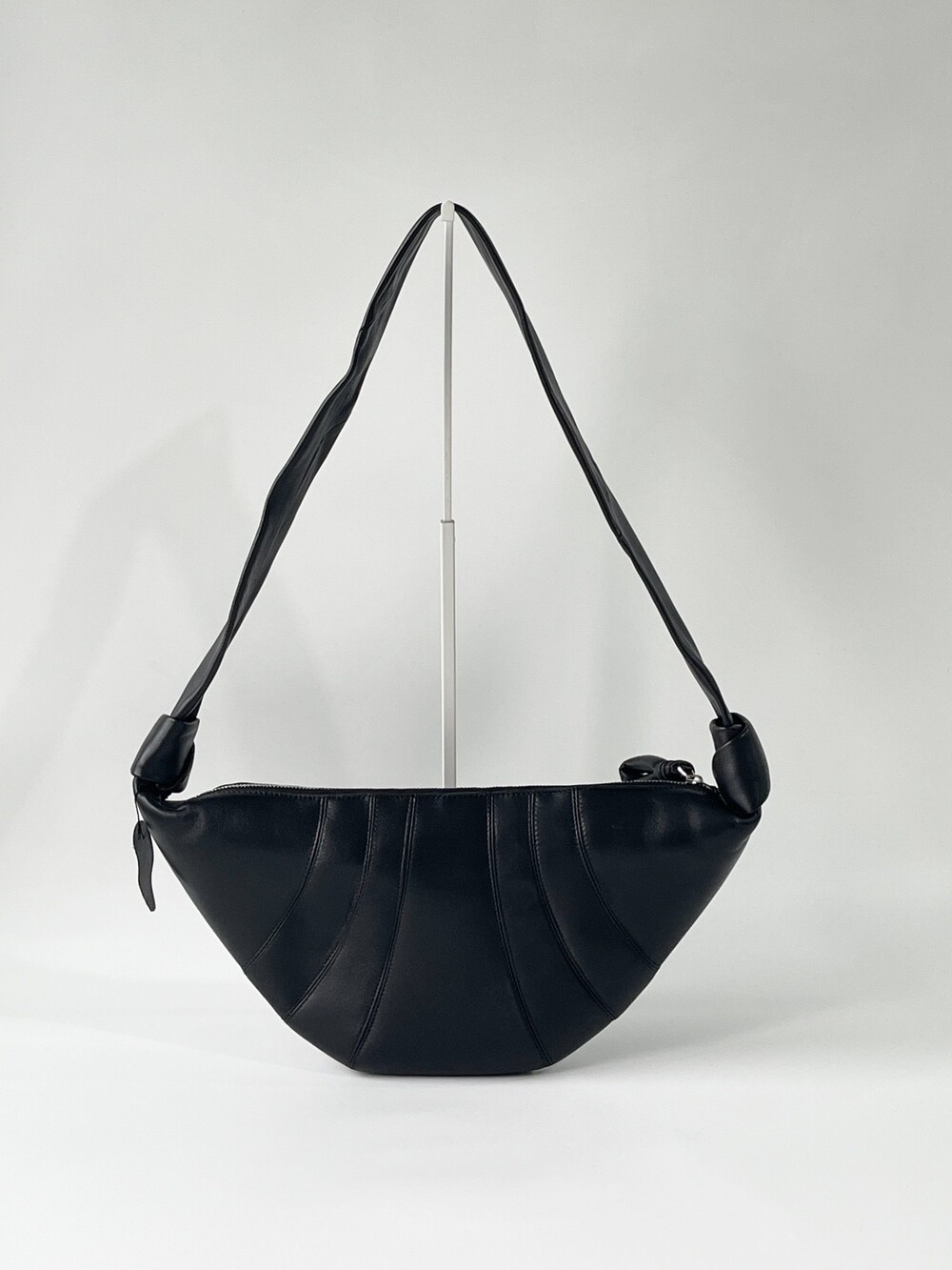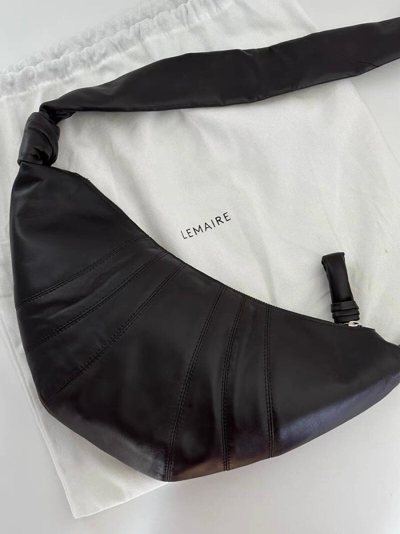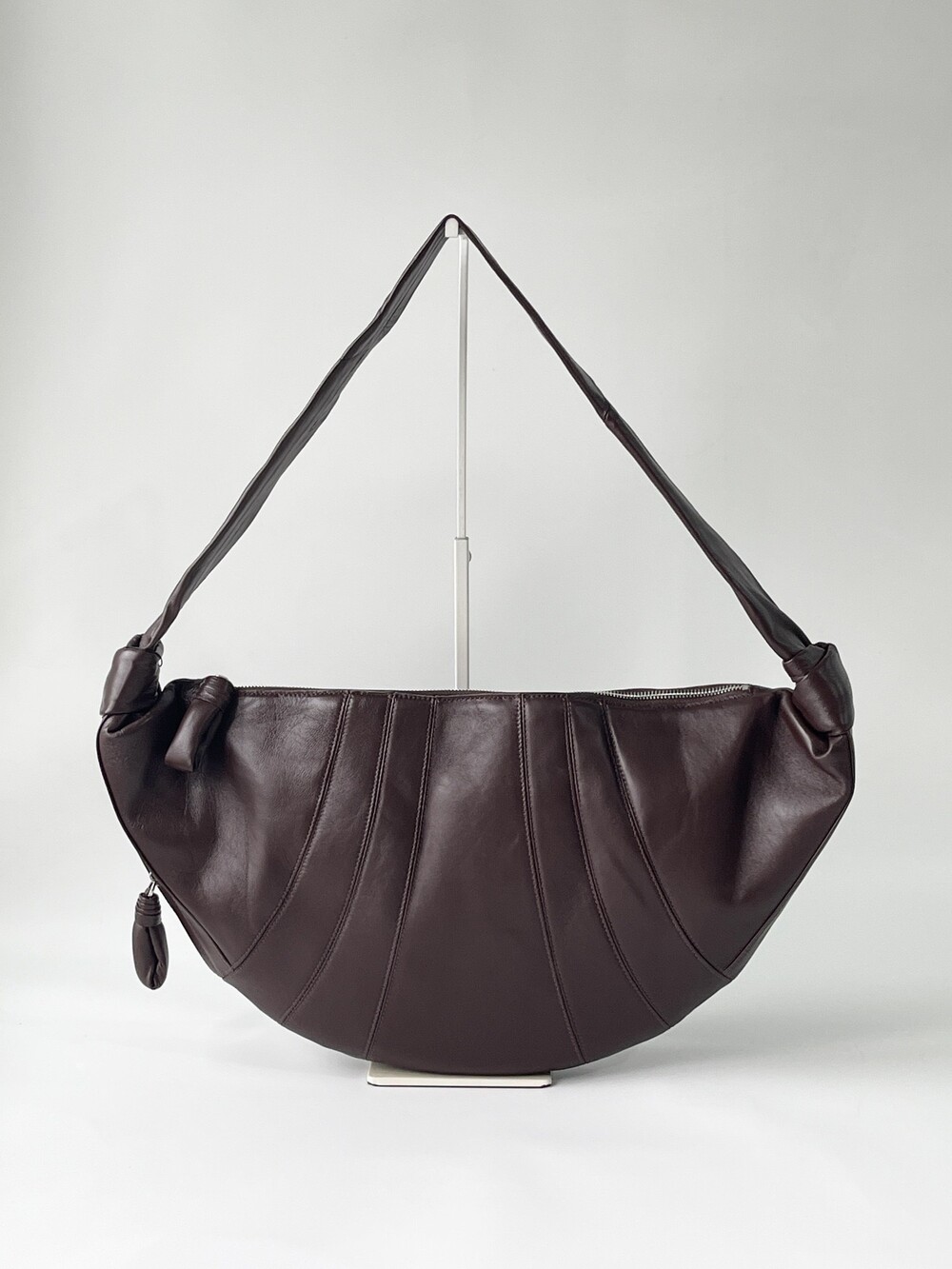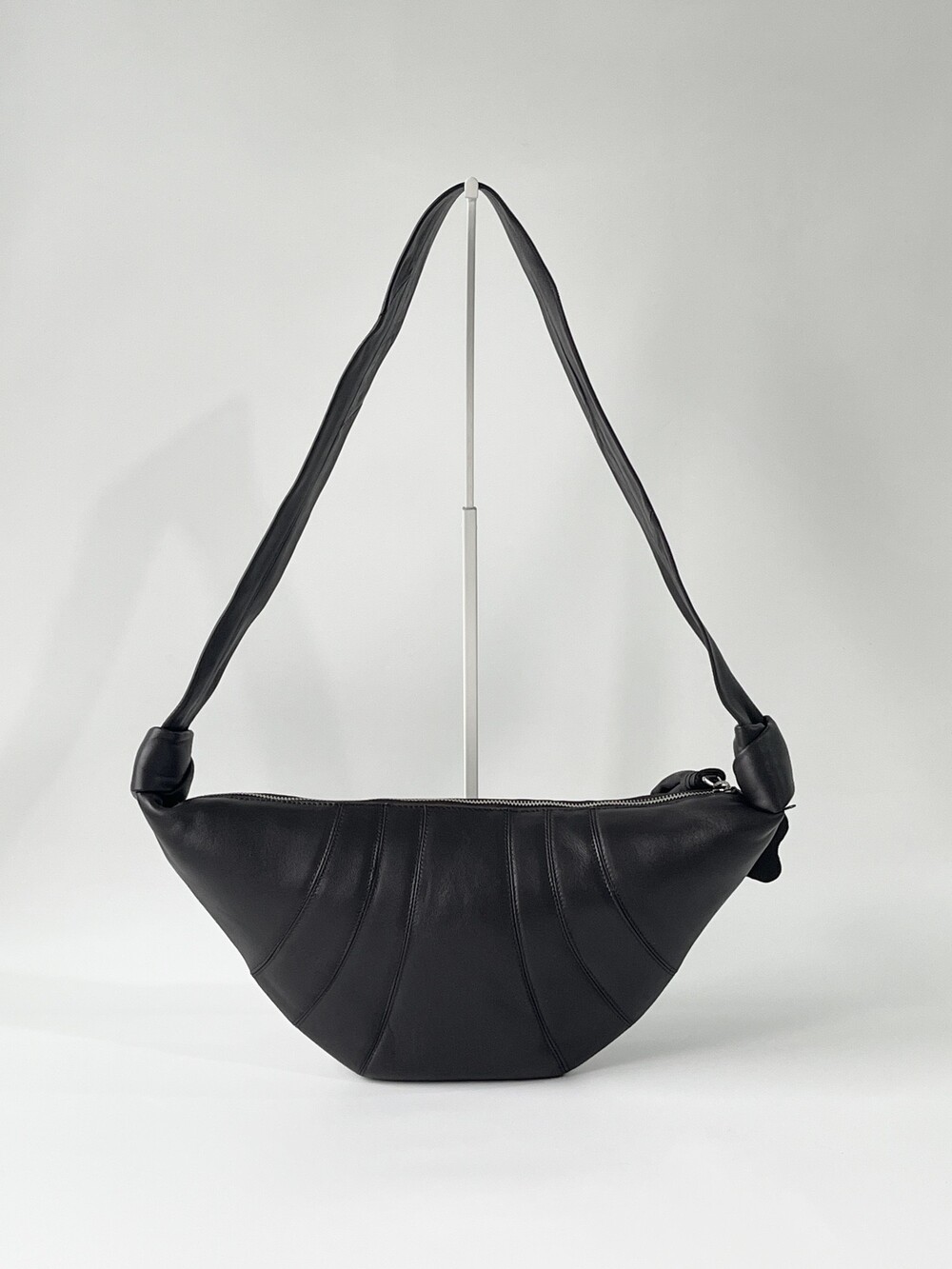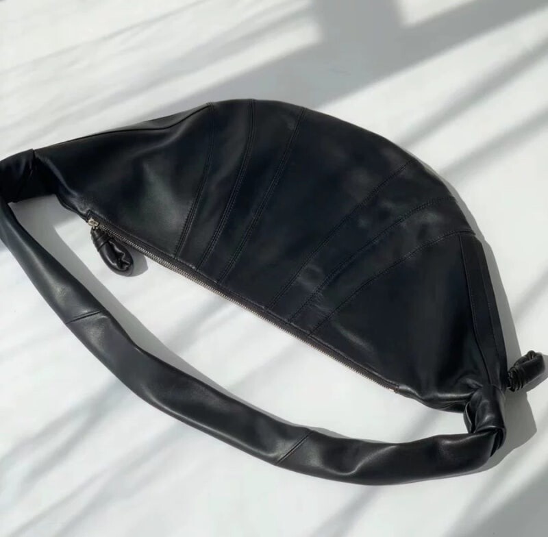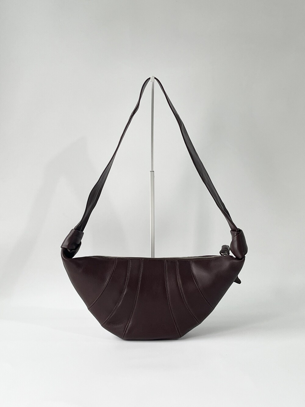 Croissant는 부드럽지만 내구성 있는 원단인 부드러운 램 나파 가죽으로 만들어졌습니다. 매끄러운 표면은 촉감을 더하고 백의 곡선의 내구성에 기여합니다. 동명의 페이스트리 모양에서 영감을 받은 이 디자인은 탑 스티치 컷아웃을 조립하여 스타일과 기능을 혼합하여 구현되었습니다. 루프형 지퍼 풀러와 사이드 매듭 마감이 특징이며 스마트폰, 카드 홀더, 지갑과 같은 작은 액세서리를 넣을 수 있습니다. 이 다재다능한 스타일은 어깨에 걸치거나 크로스바디로 착용할 수 있습니다.