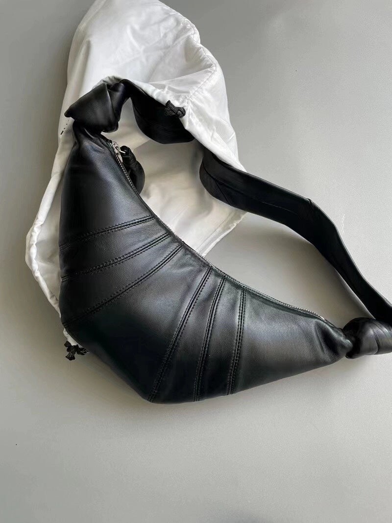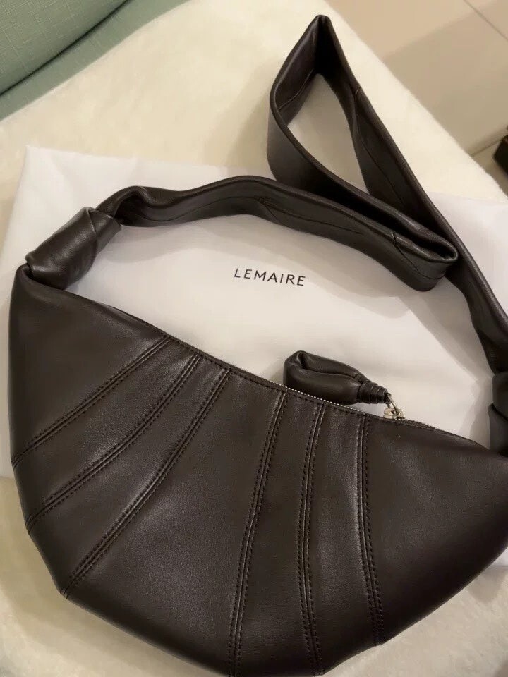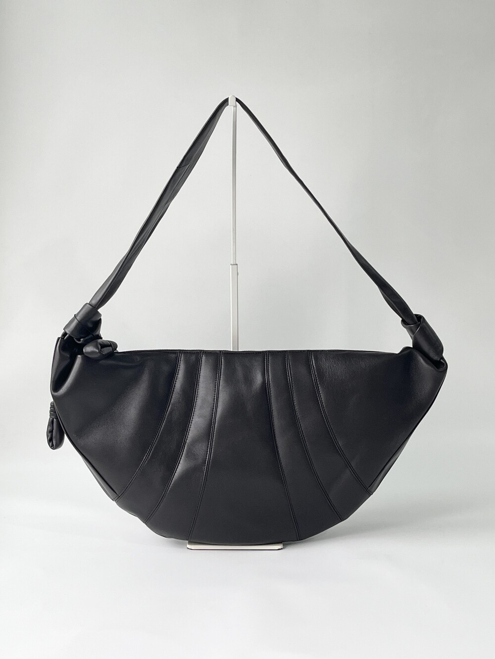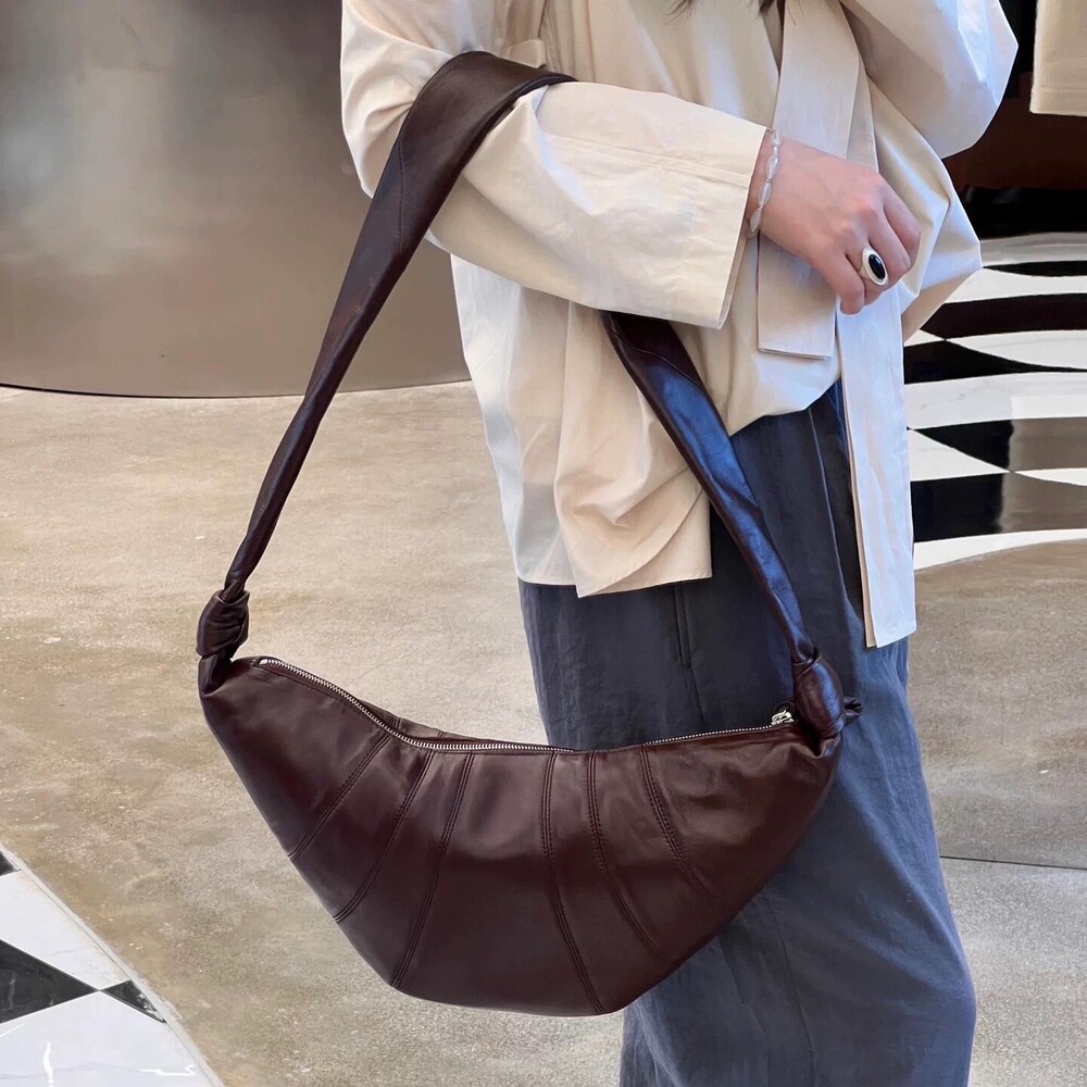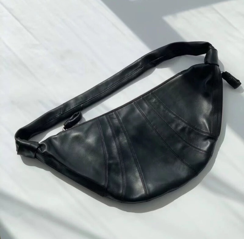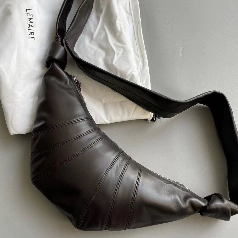 Croissant는 부드럽지만 내구성 있는 원단인 부드러운 램 나파 가죽으로 만들어졌습니다. 매끄러운 표면은 촉감을 더하고 백의 곡선의 내구성에 기여합니다. 동명의 페이스트리 모양에서 영감을 받은 이 디자인은 탑 스티치 컷아웃을 조립하여 스타일과 기능을 혼합하여 구현되었습니다. 루프형 지퍼 풀러와 사이드 매듭 마감이 특징이며 스마트폰, 카드 홀더, 지갑과 같은 작은 액세서리를 넣을 수 있습니다. 이 다재다능한 스타일은 어깨에 걸치거나 크로스바디로 착용할 수 있습니다.