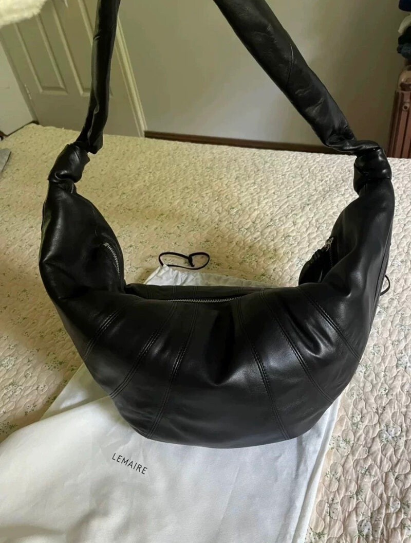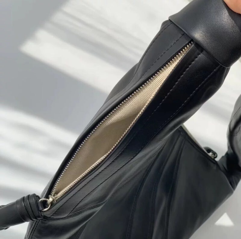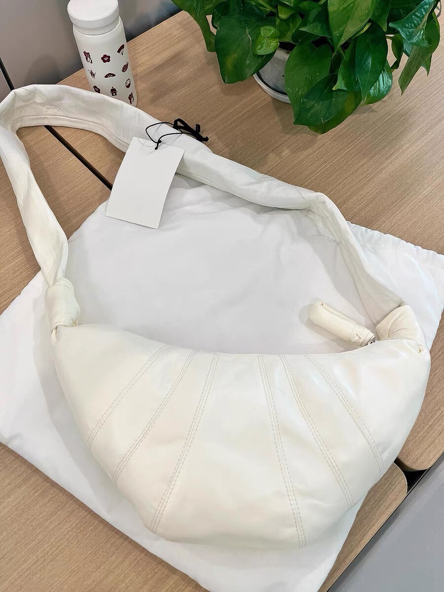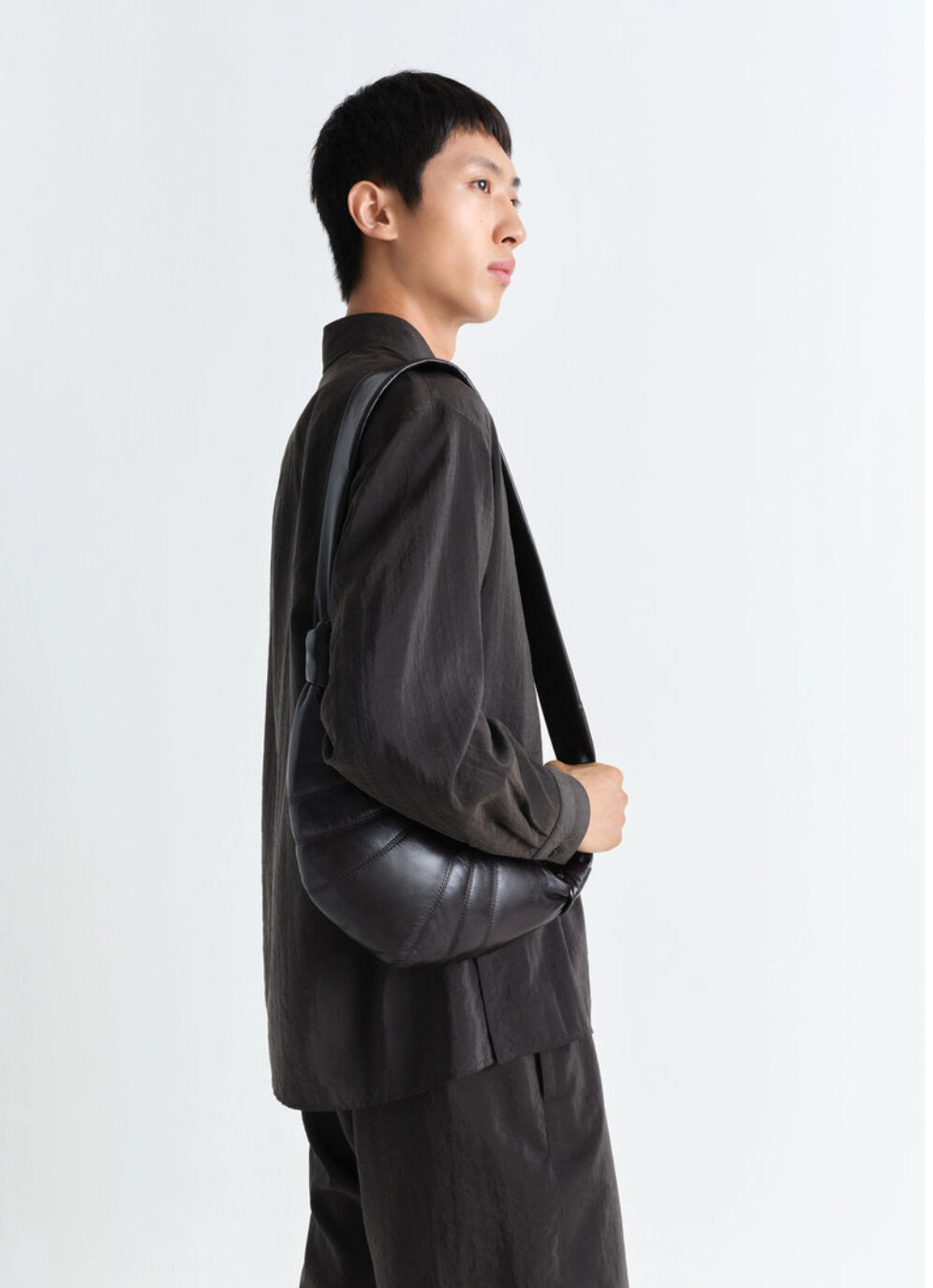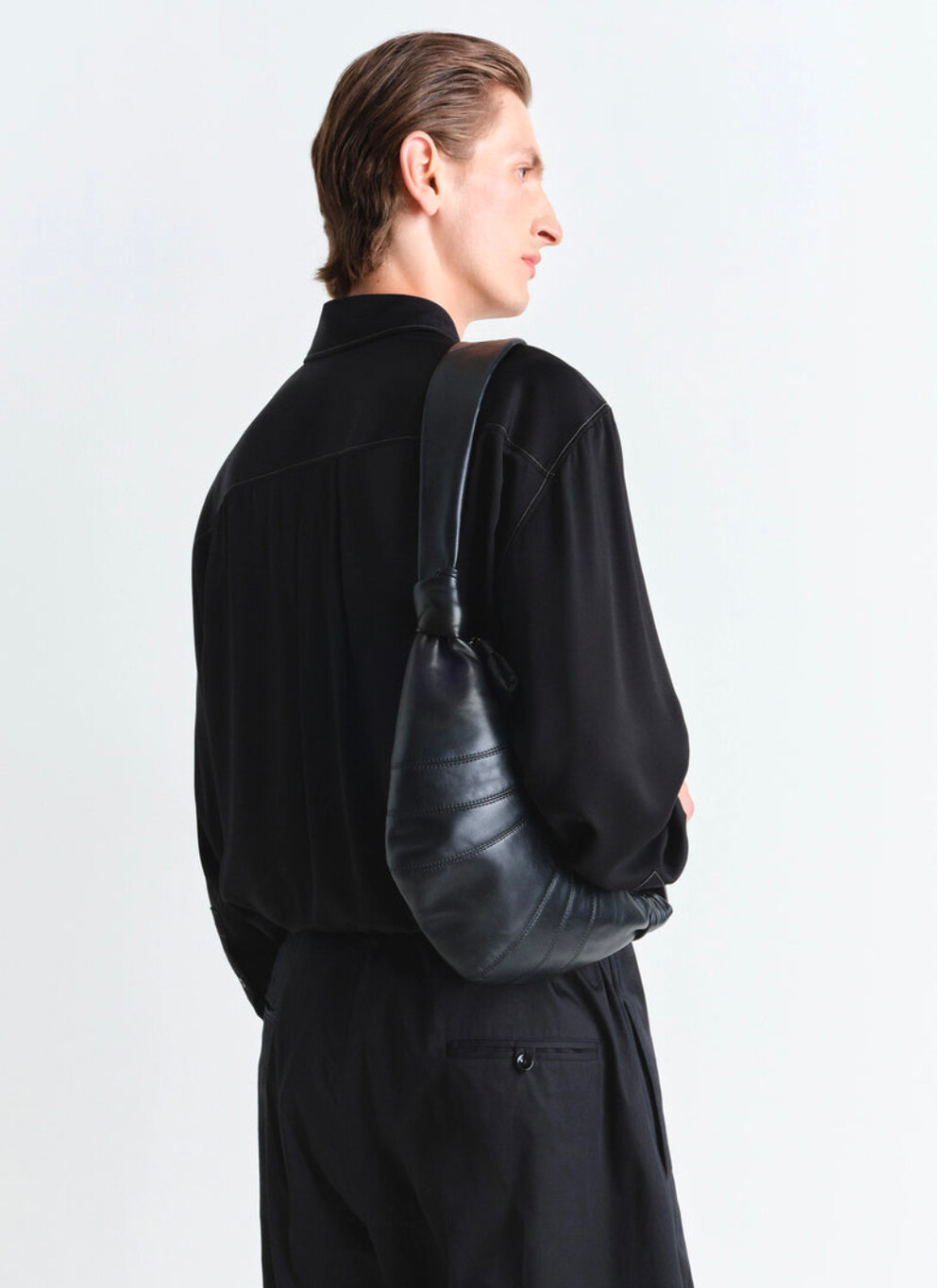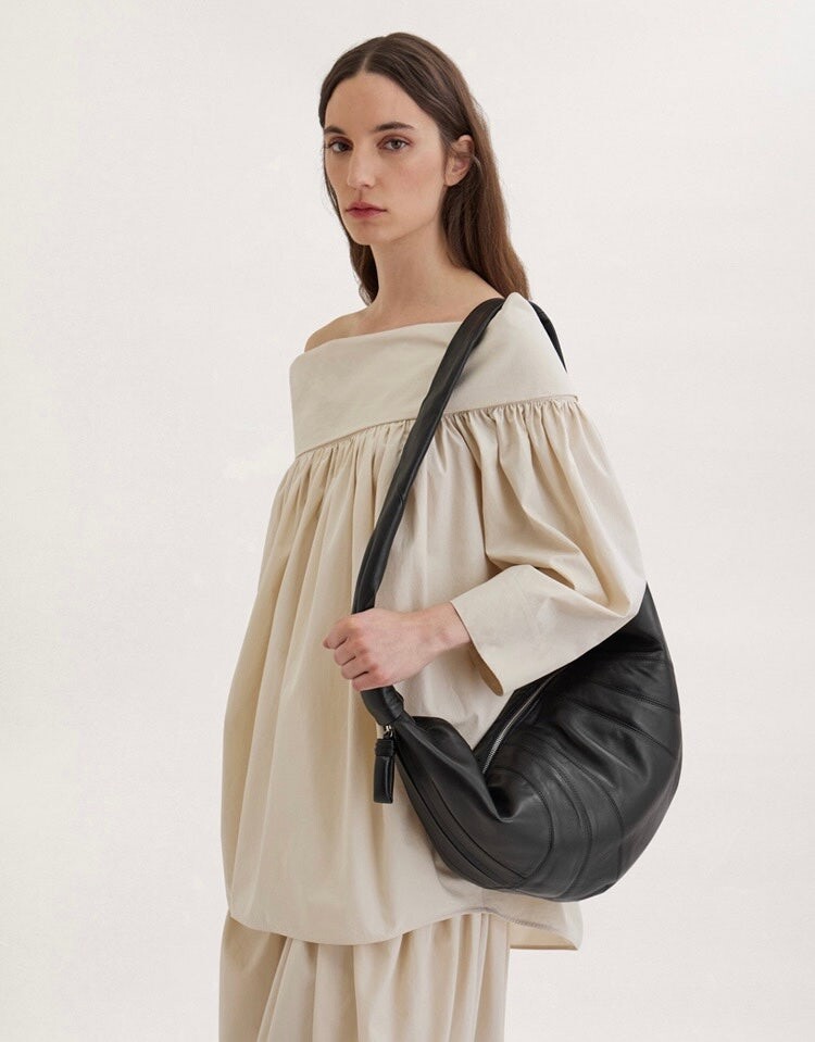 Croissant는 부드럽지만 내구성 있는 원단인 부드러운 램 나파 가죽으로 만들어졌습니다. 매끄러운 표면은 촉감을 더하고 백의 곡선의 내구성에 기여합니다. 동명의 페이스트리 모양에서 영감을 받은 이 디자인은 탑 스티치 컷아웃을 조립하여 스타일과 기능을 혼합하여 구현되었습니다. 루프형 지퍼 풀러와 사이드 매듭 마감이 특징이며 스마트폰, 카드 홀더, 지갑과 같은 작은 액세서리를 넣을 수 있습니다. 이 다재다능한 스타일은 어깨에 걸치거나 크로스바디로 착용할 수 있습니다.