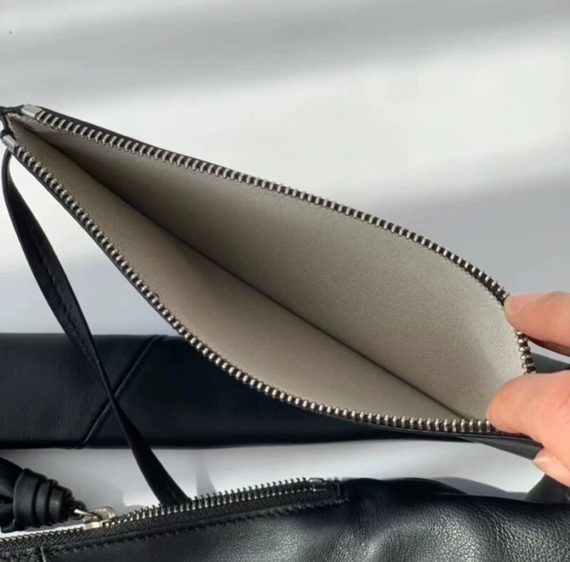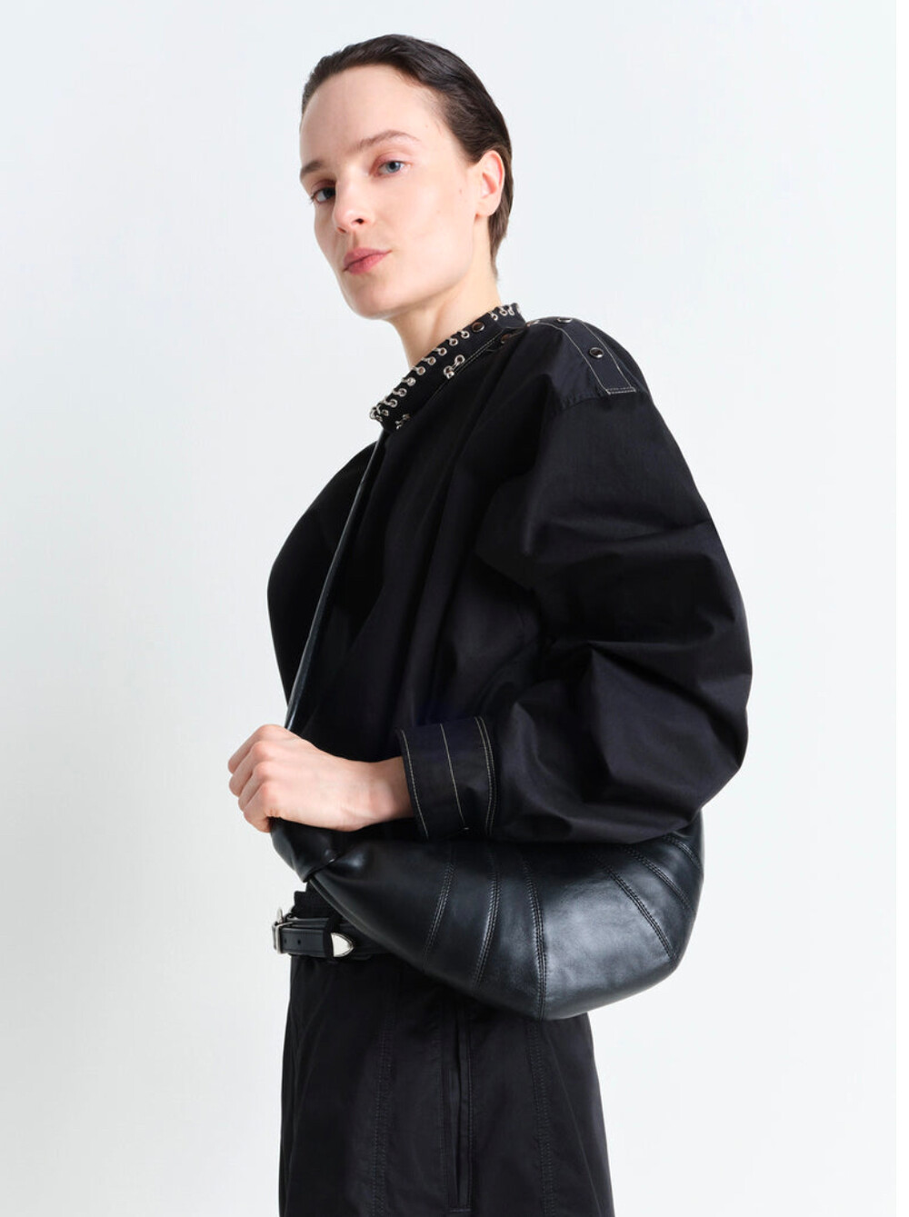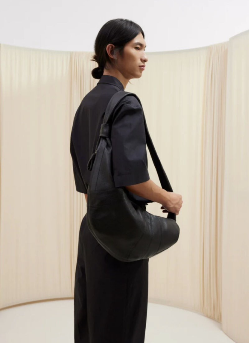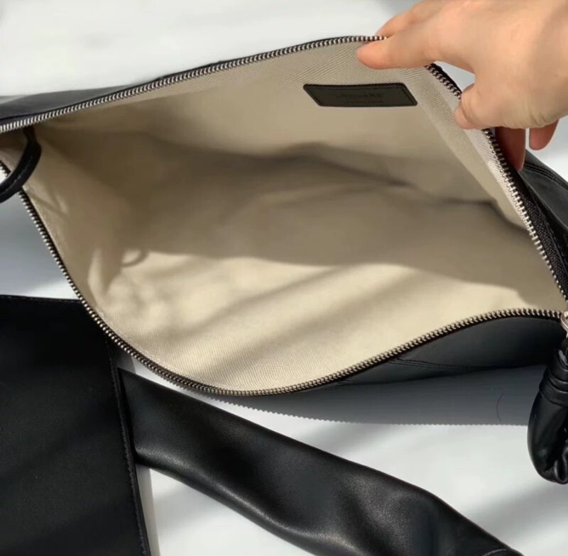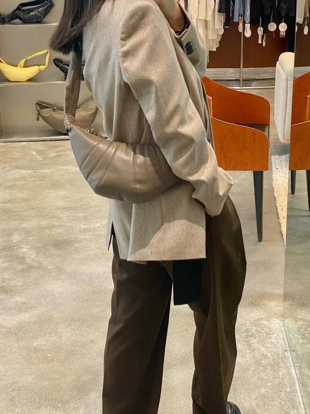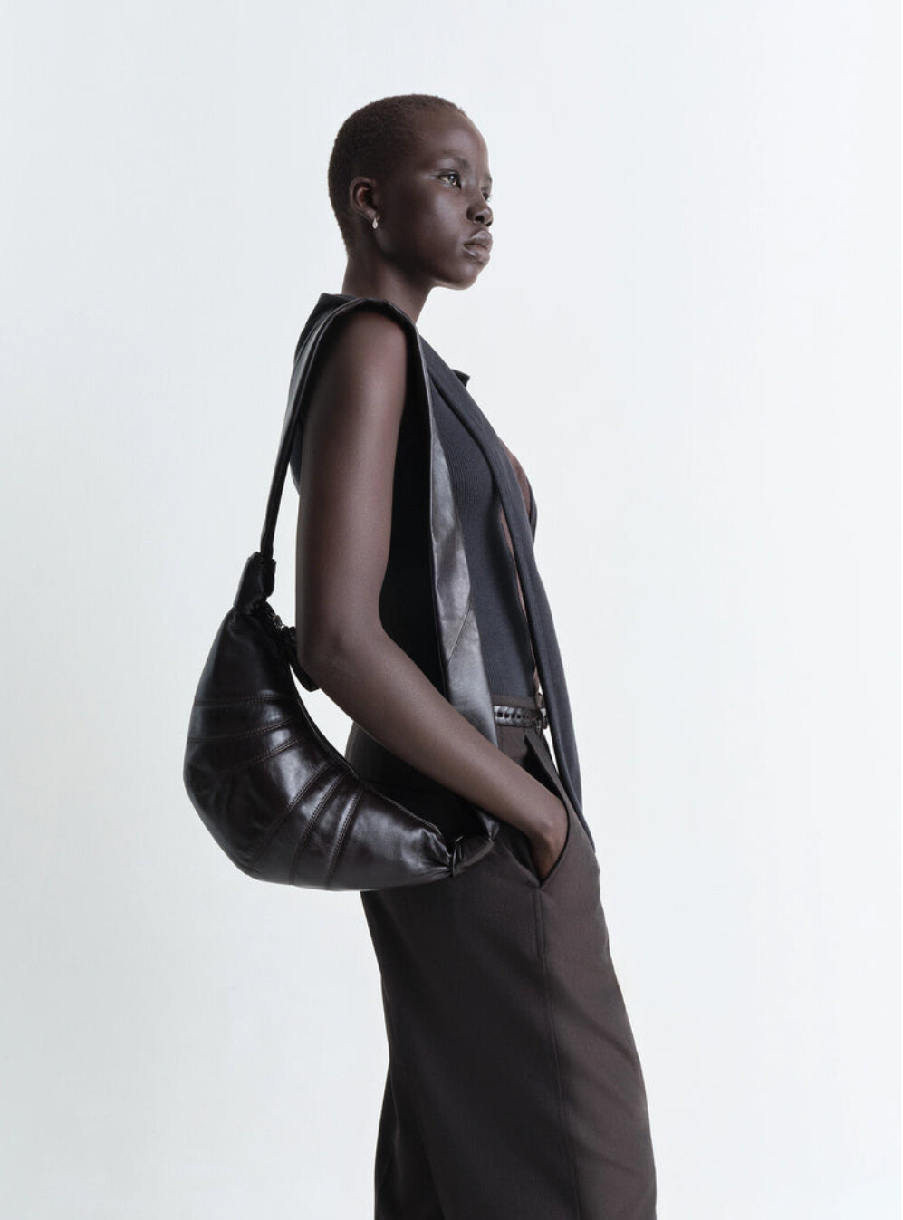 Croissant는 부드럽지만 내구성 있는 원단인 부드러운 램 나파 가죽으로 만들어졌습니다. 매끄러운 표면은 촉감을 더하고 백의 곡선의 내구성에 기여합니다. 동명의 페이스트리 모양에서 영감을 받은 이 디자인은 탑 스티치 컷아웃을 조립하여 스타일과 기능을 혼합하여 구현되었습니다. 루프형 지퍼 풀러와 사이드 매듭 마감이 특징이며 스마트폰, 카드 홀더, 지갑과 같은 작은 액세서리를 넣을 수 있습니다. 이 다재다능한 스타일은 어깨에 걸치거나 크로스바디로 착용할 수 있습니다.