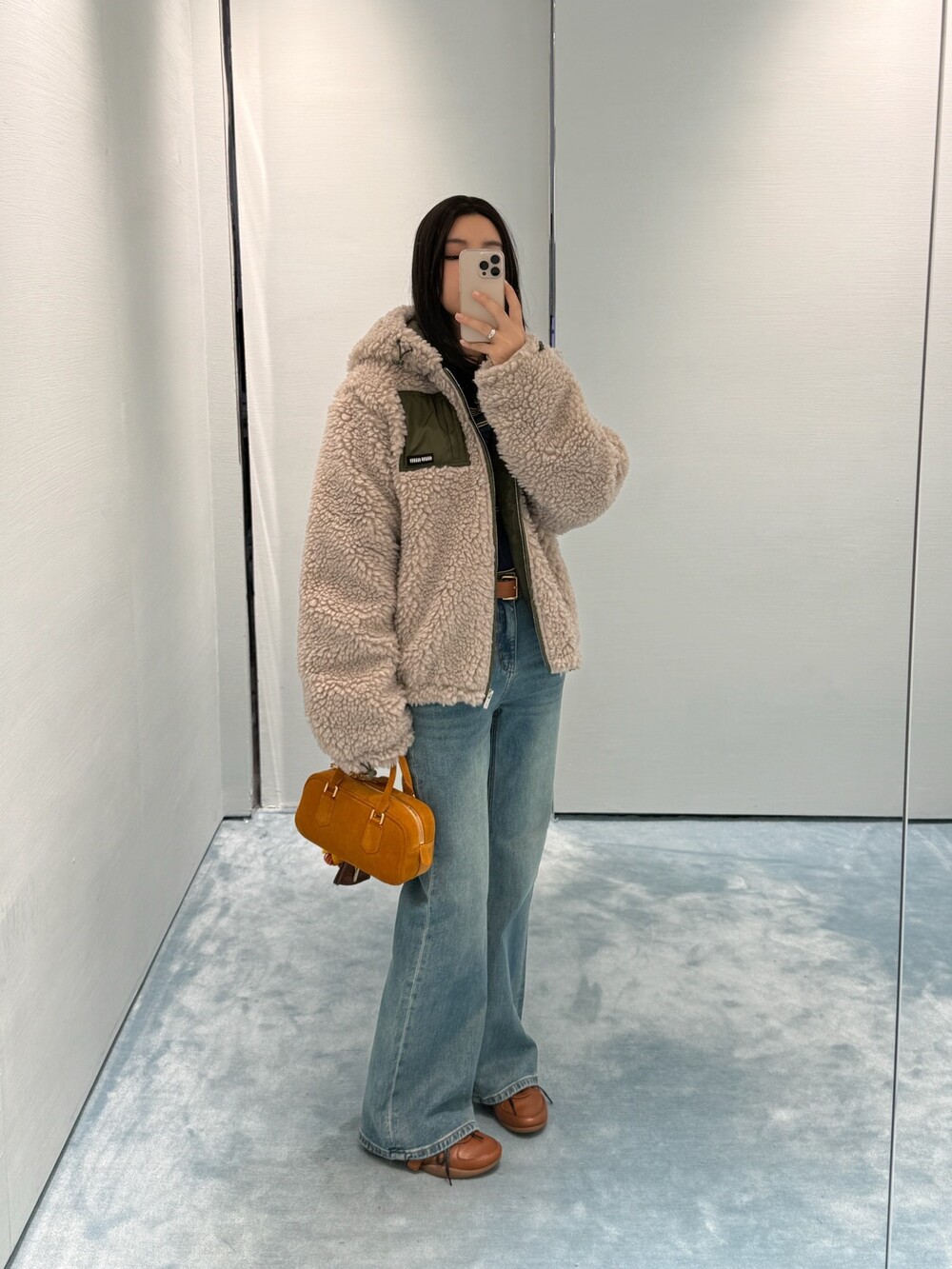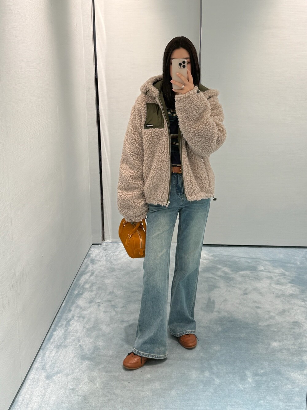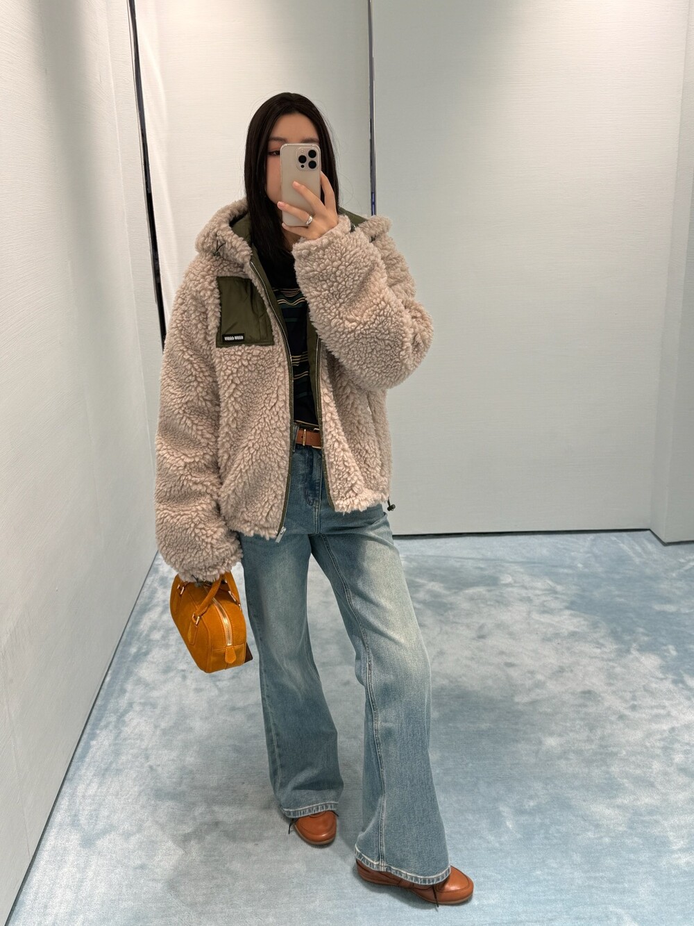 90년대 스포츠 미학에서 영감을 받은 이 다운 재킷은 외부에 테디 패브릭과 내부에 테크니컬 퐁제 소재를 결합하여 가벼운 구스 다운 패딩으로 캐주얼한 아웃도어 감성을 더했습니다.