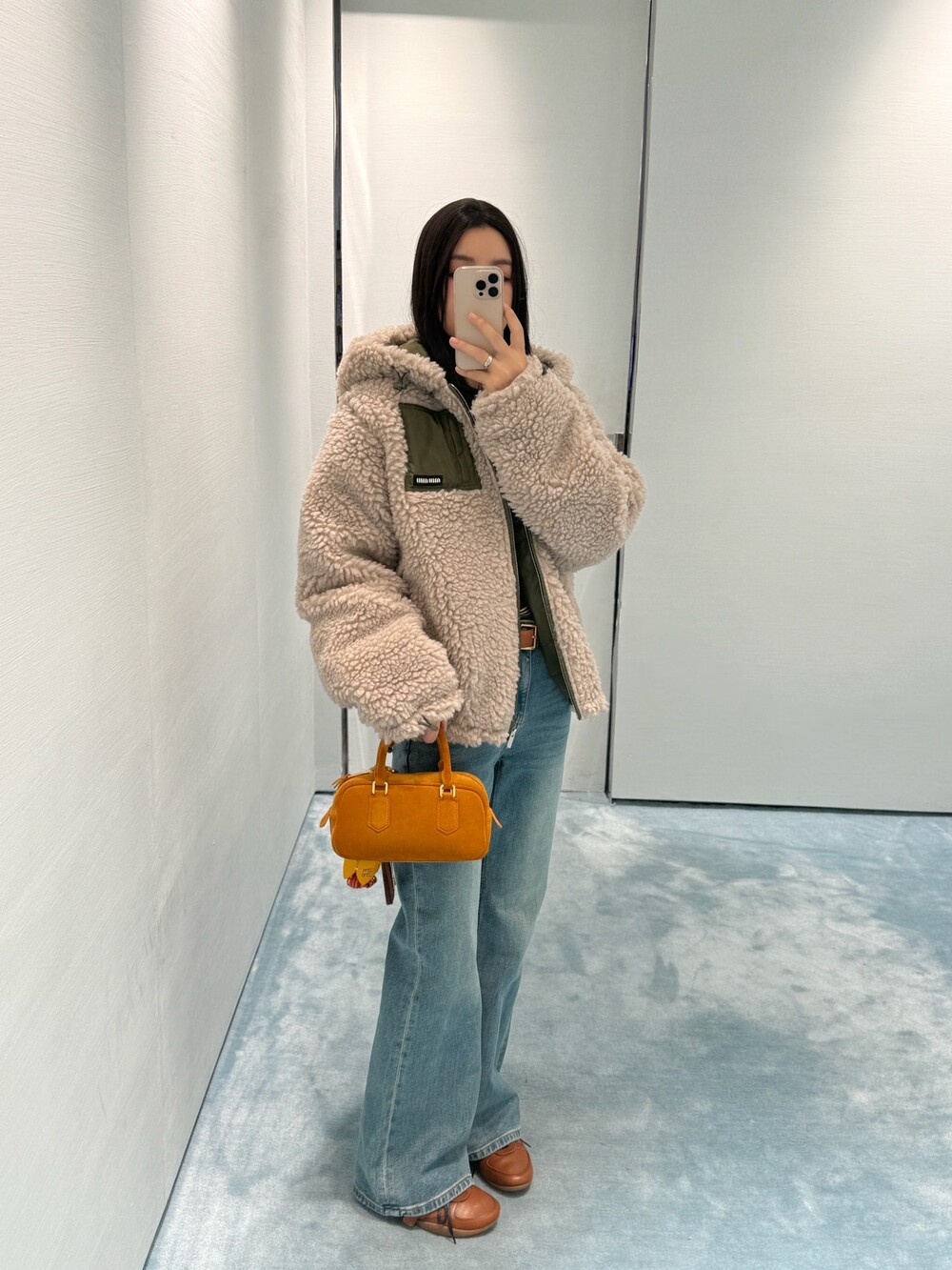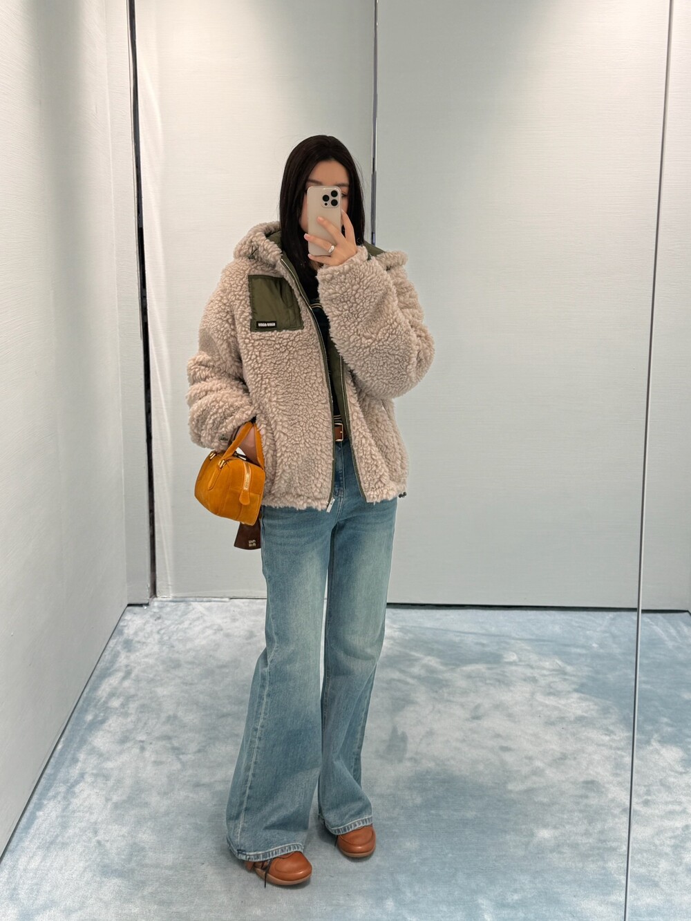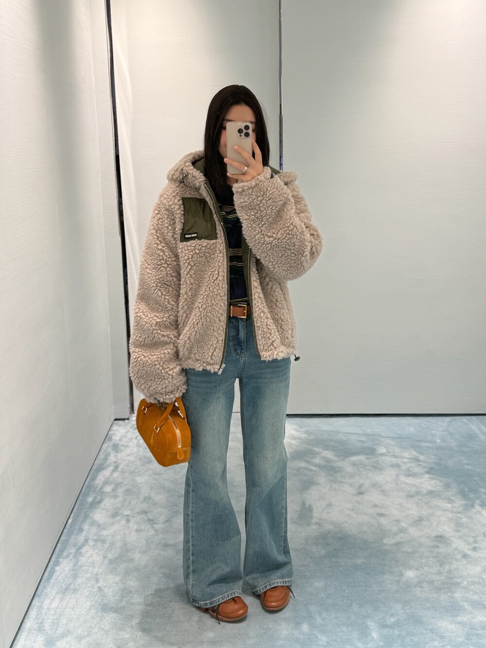 90년대 스포츠 미학에서 영감을 받은 이 다운 재킷은 외부에 테디 패브릭과 내부에 테크니컬 퐁제 소재를 결합하여 가벼운 구스 다운 패딩으로 캐주얼한 아웃도어 감성을 더했습니다.