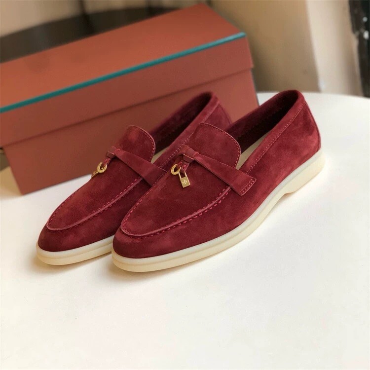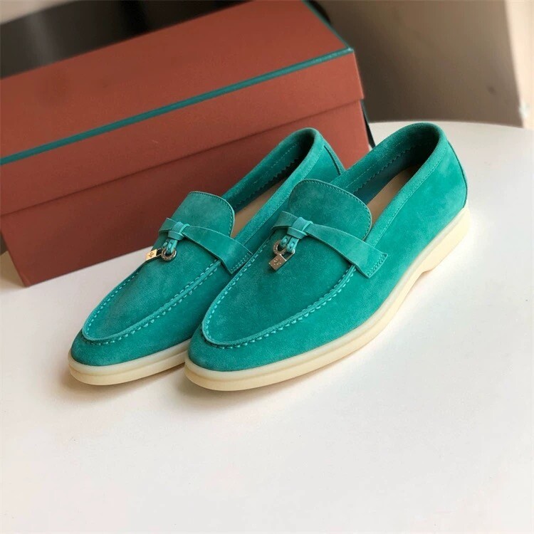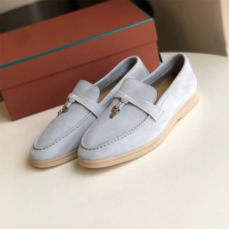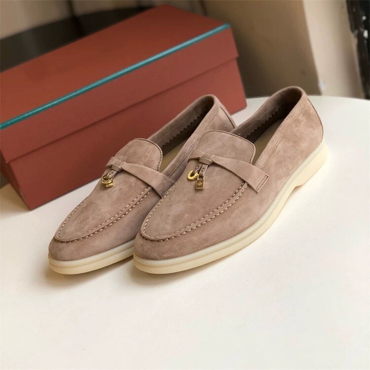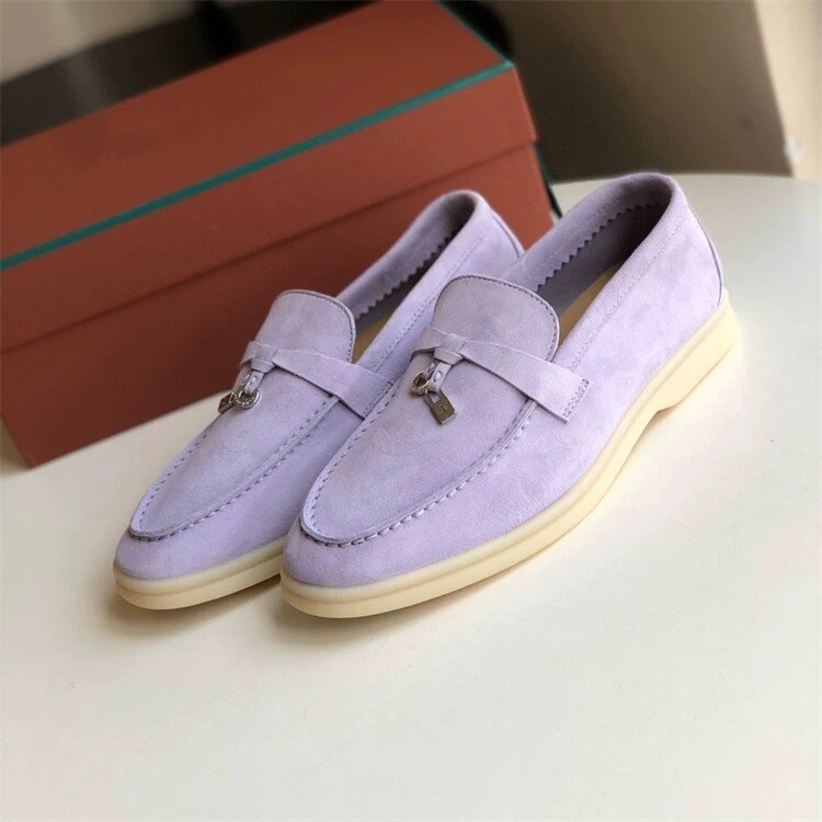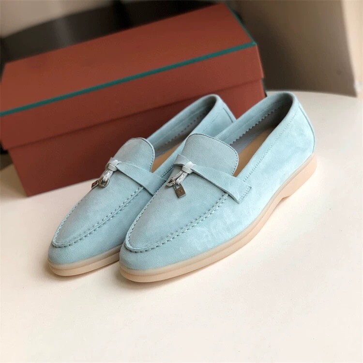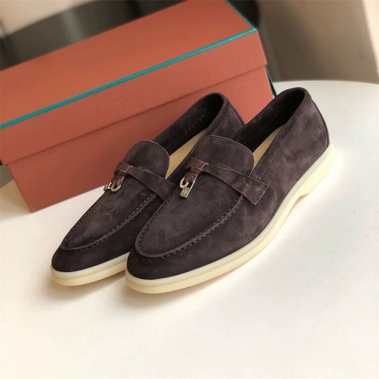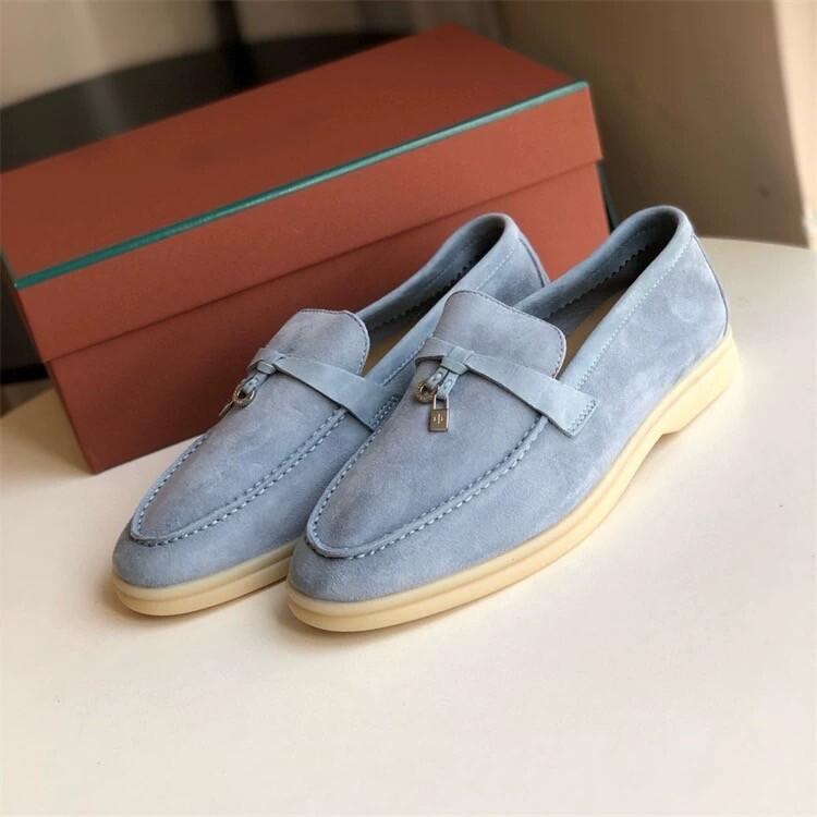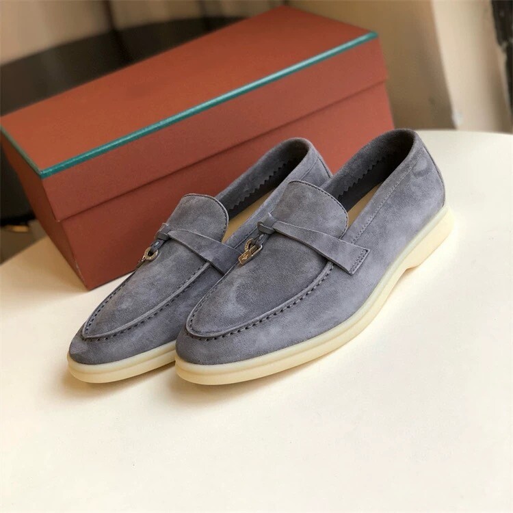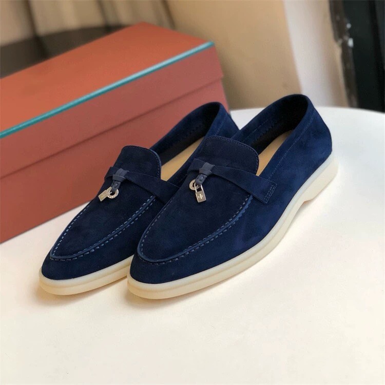 부드러운 스웨이드 소재의 편안하고 스포티한 로퍼. 모든 로로피아나 스포츠웨어 슈즈의 공통된 특징인 고무 밑창을 갖춘 디자인. 미니어처 마이 참이 장식된 앞면 밴드. 도시나 바닷가에서 보내는 여름 혹은 세일링에 적합한 슈즈.