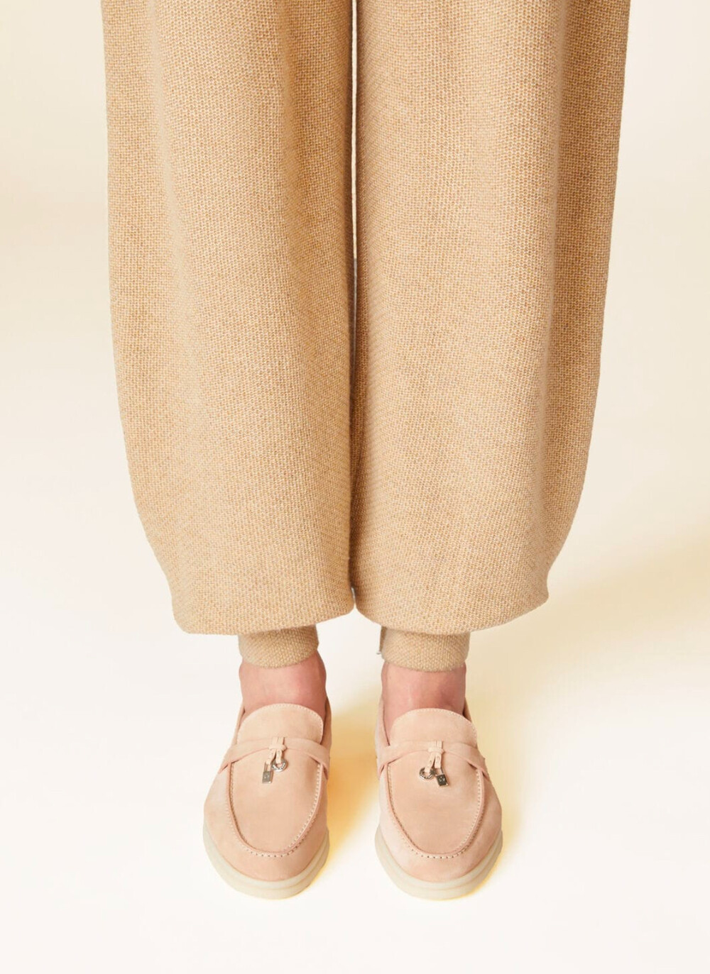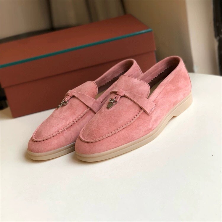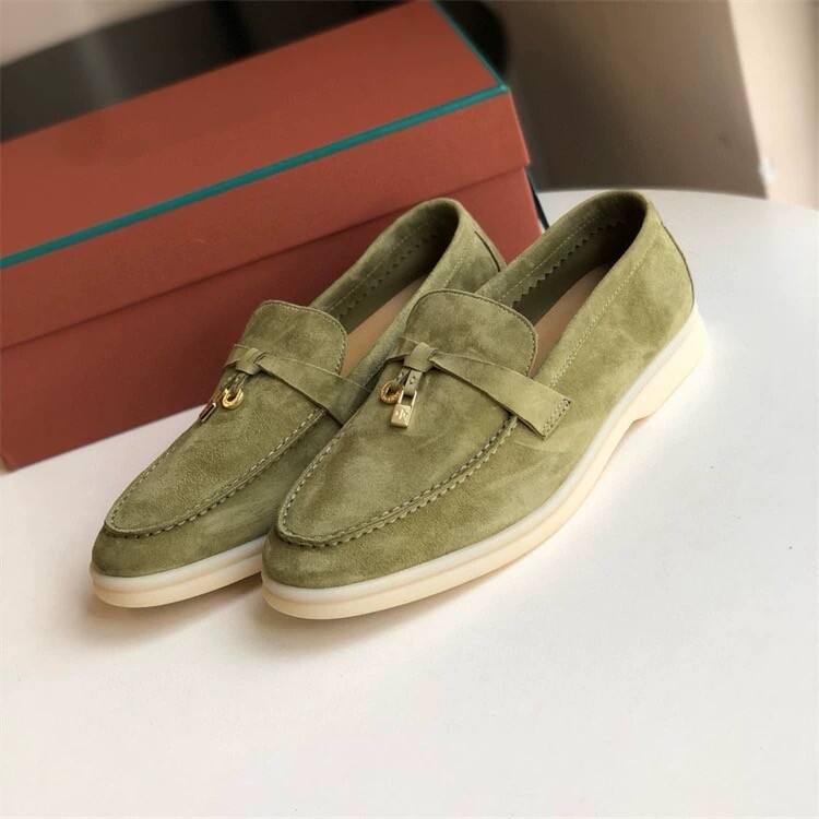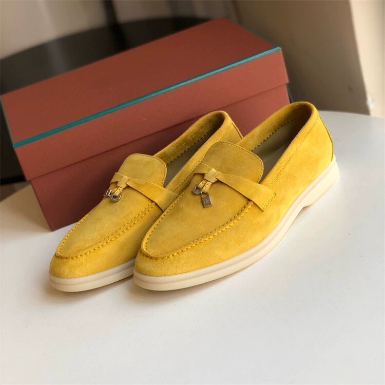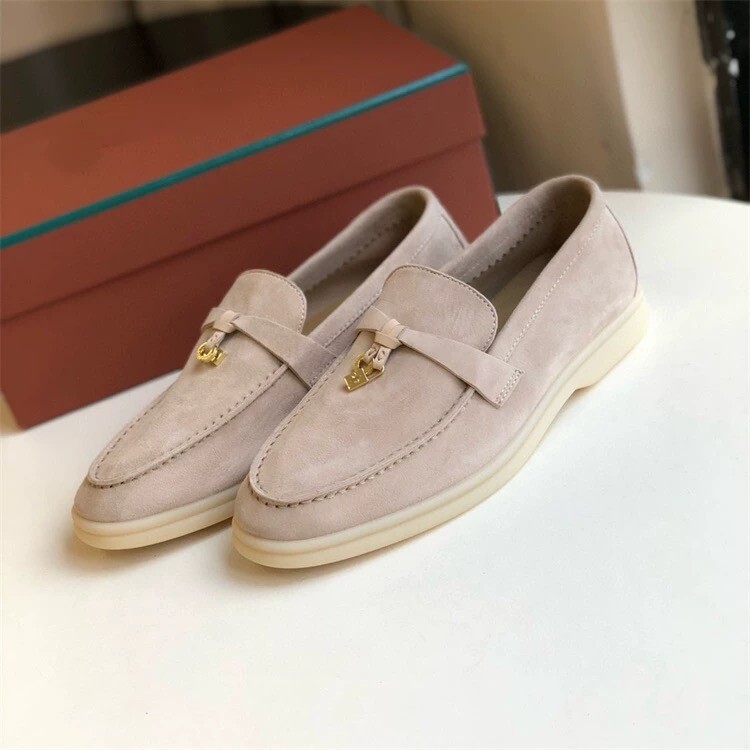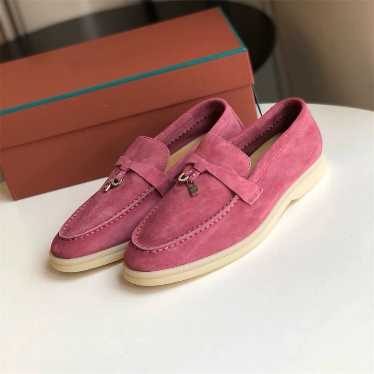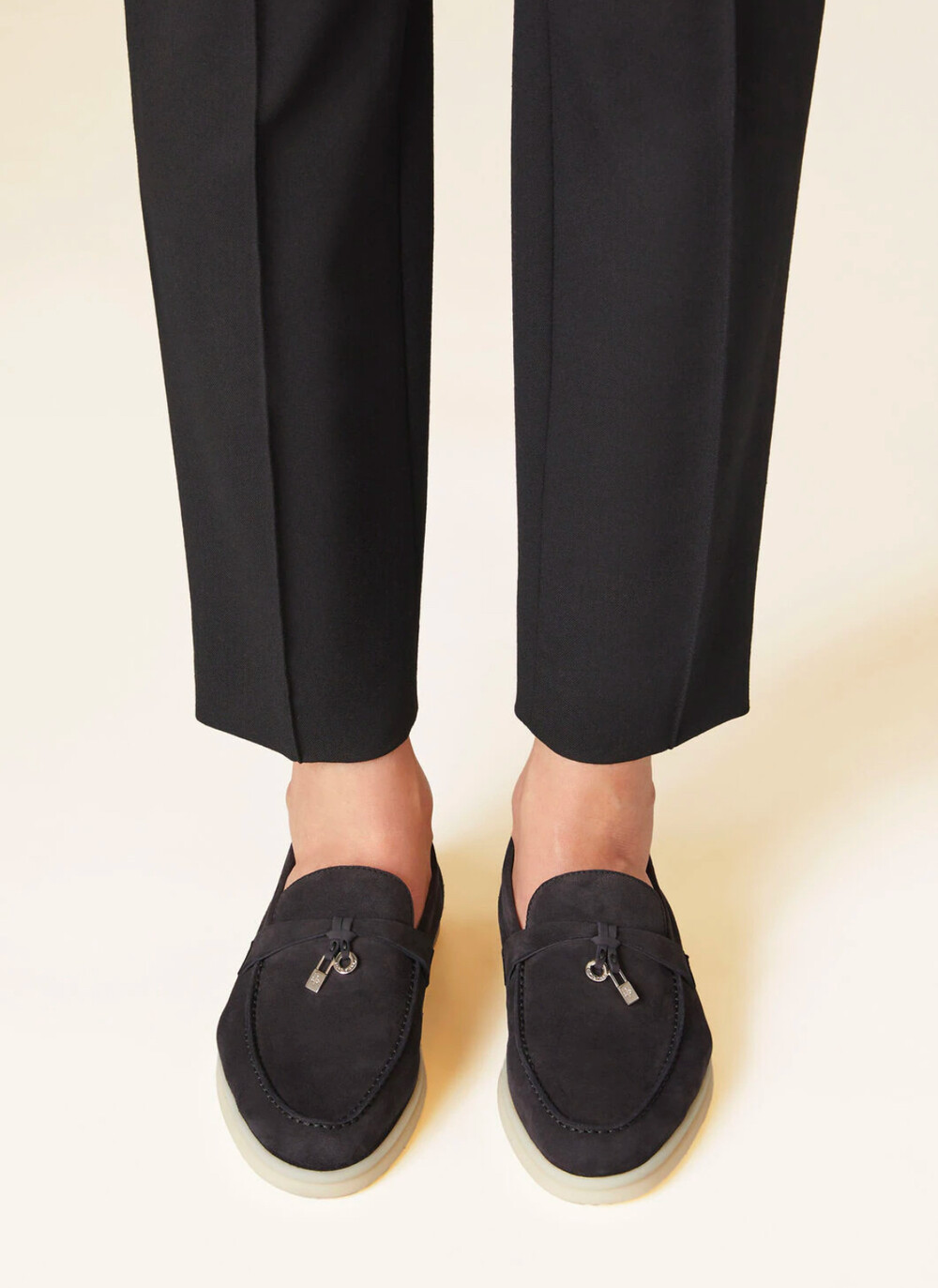 부드러운 스웨이드 소재의 편안하고 스포티한 로퍼. 모든 로로피아나 스포츠웨어 슈즈의 공통된 특징인 고무 밑창을 갖춘 디자인. 미니어처 마이 참이 장식된 앞면 밴드. 도시나 바닷가에서 보내는 여름 혹은 세일링에 적합한 슈즈.