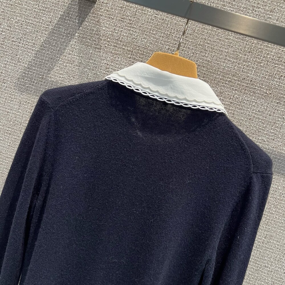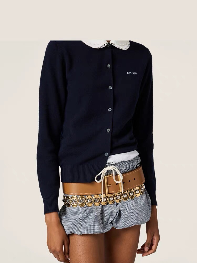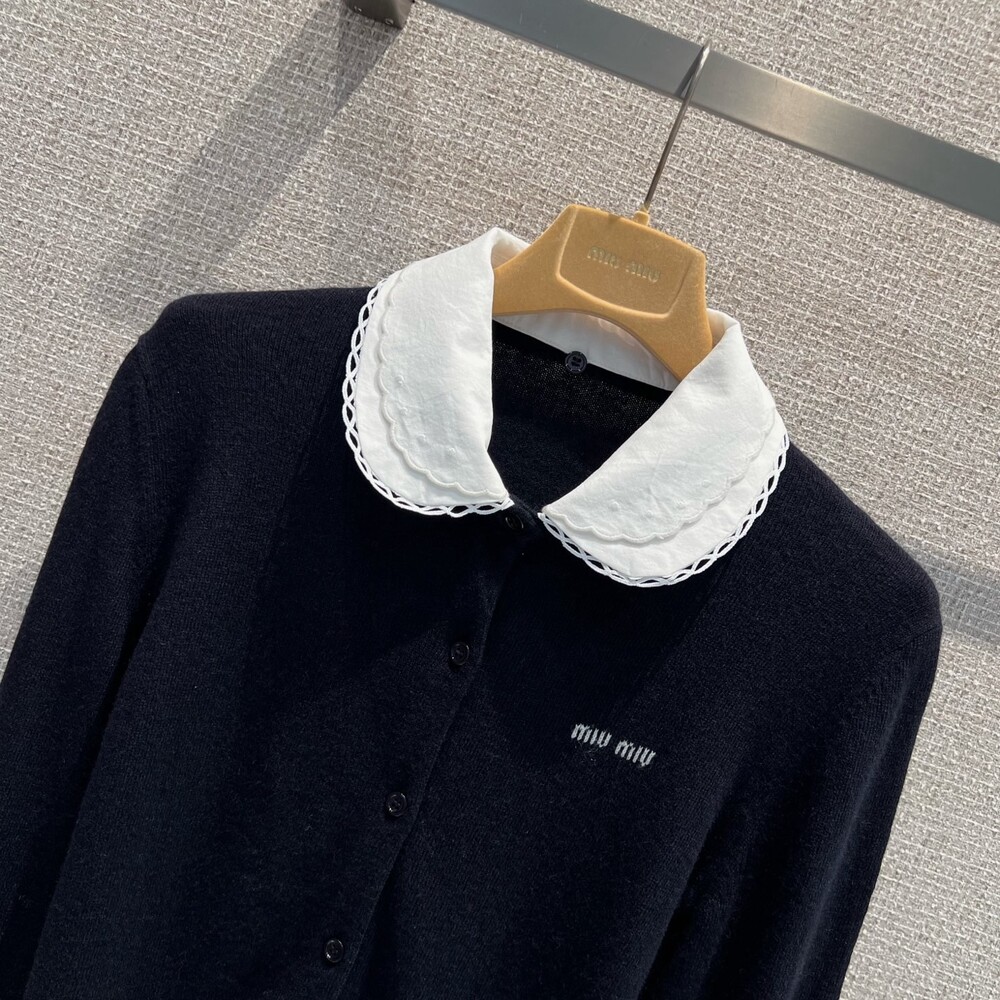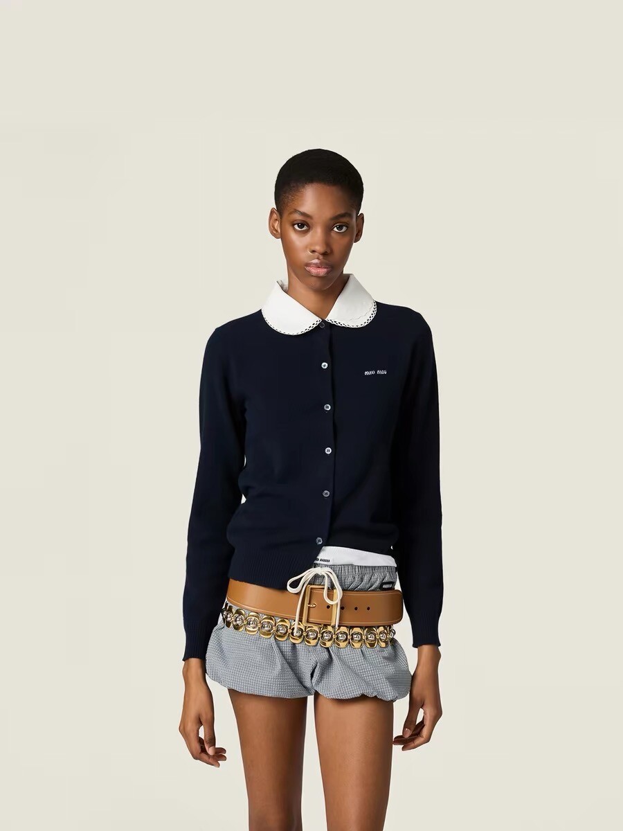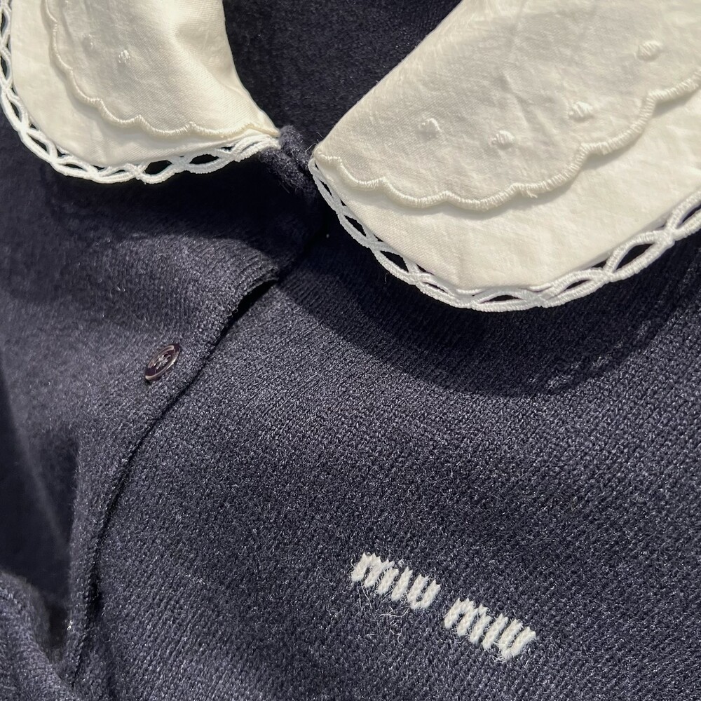 미우미우 자수 포플린 칼라 캐시미어 카디건