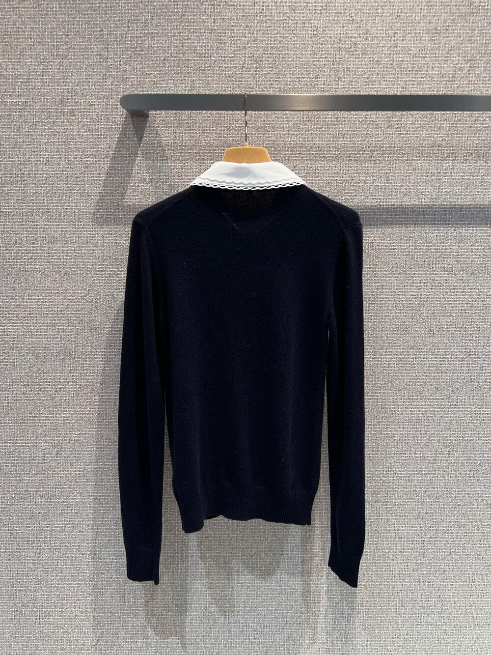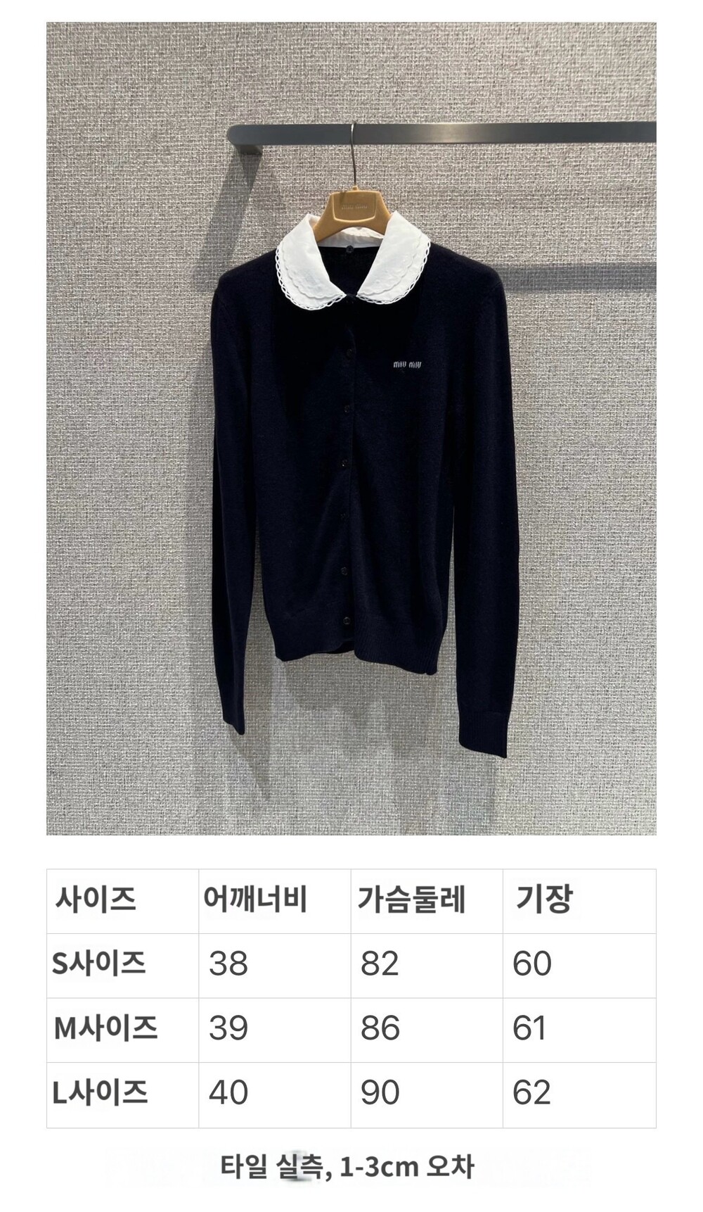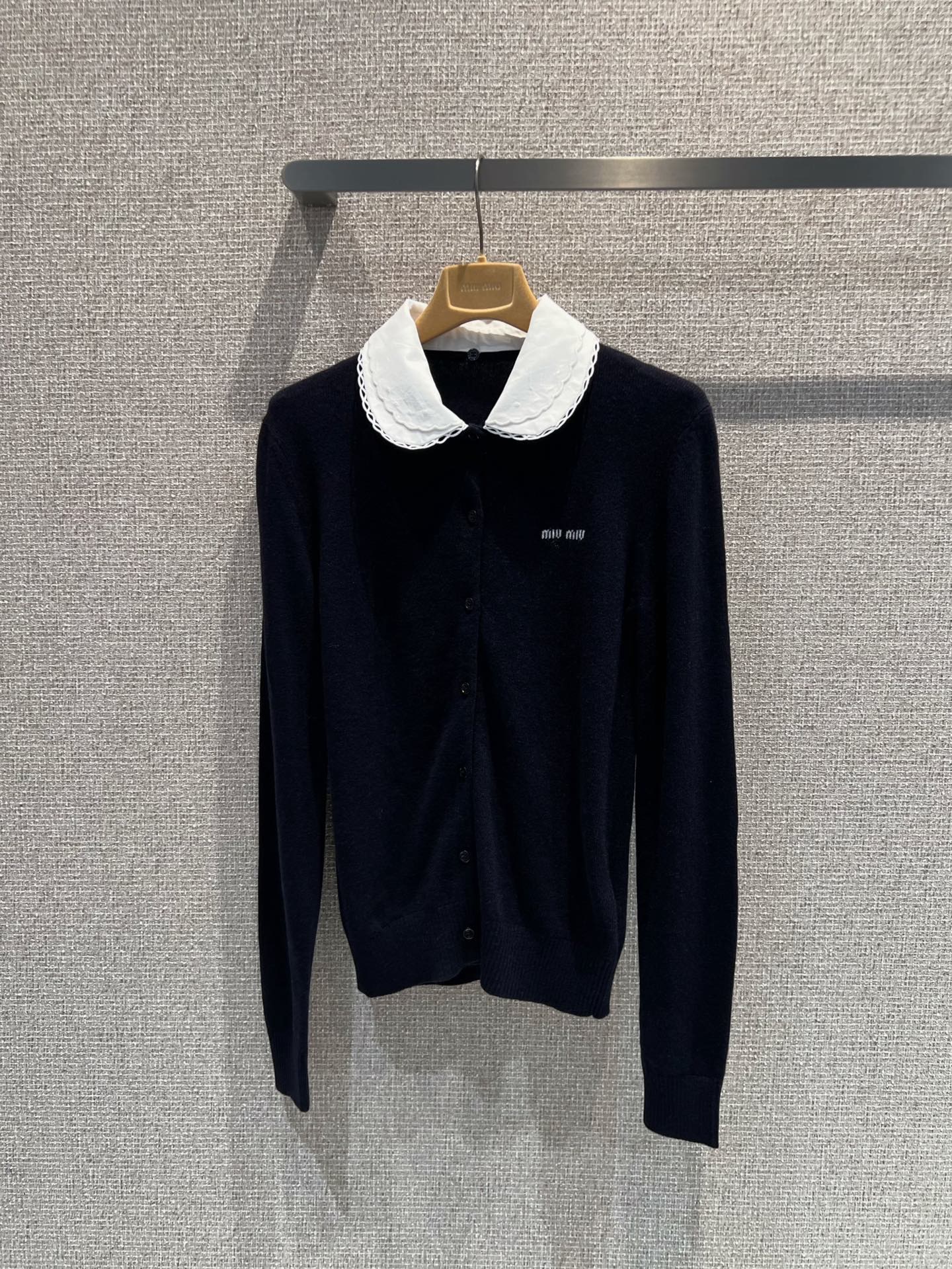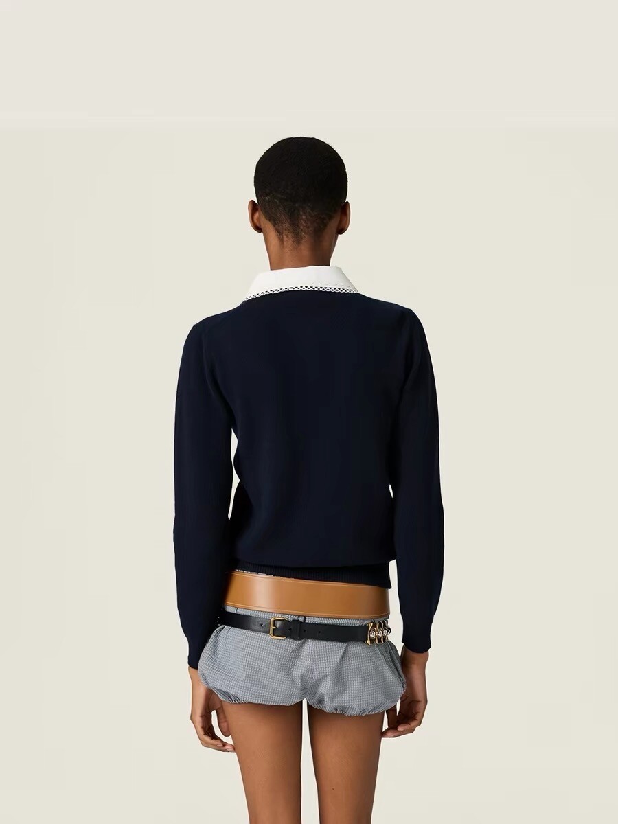 미우미우 자수 포플린 칼라 캐시미어 카디건