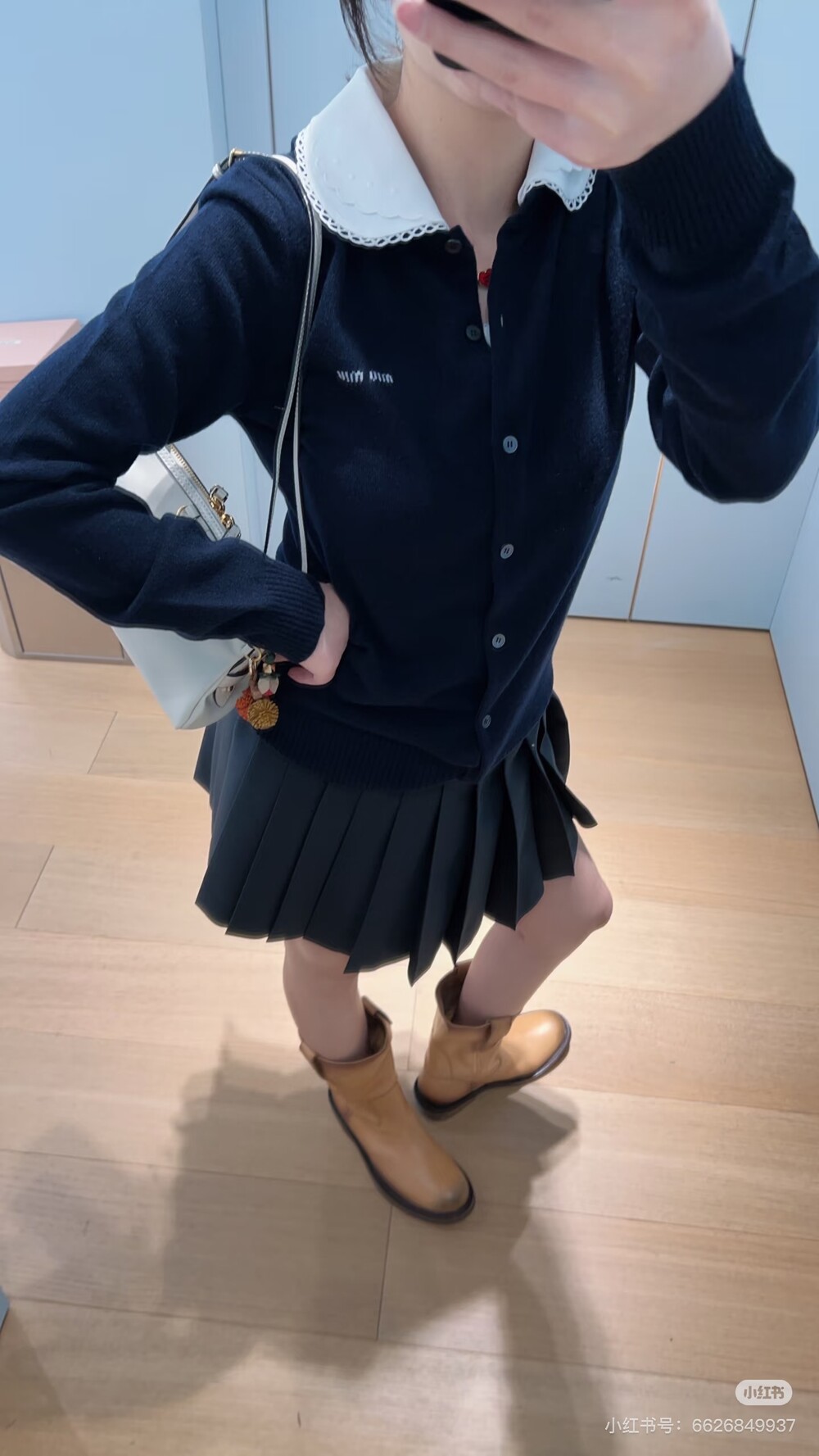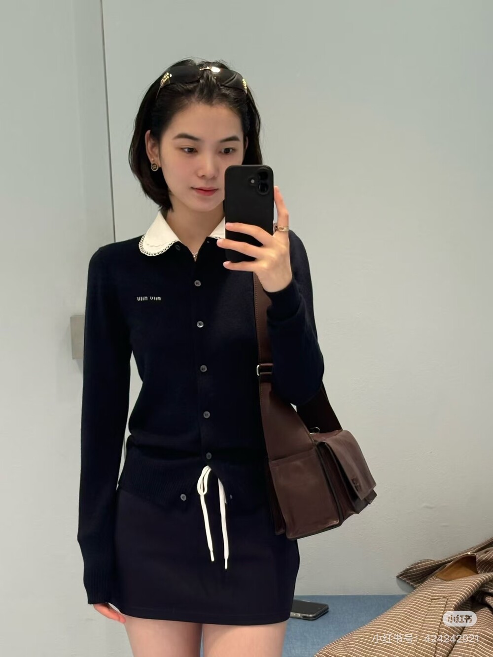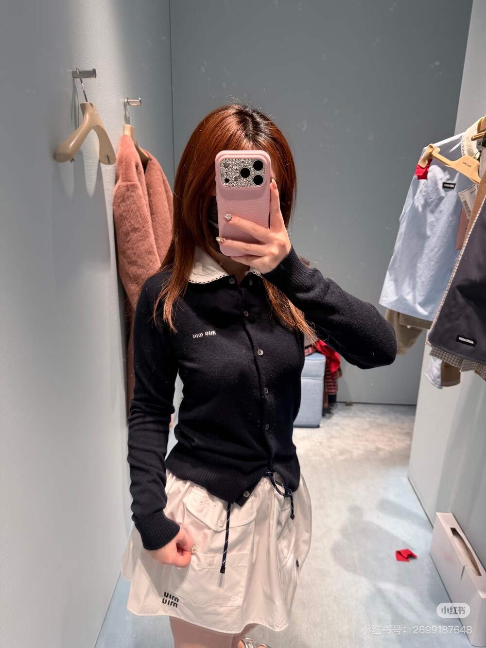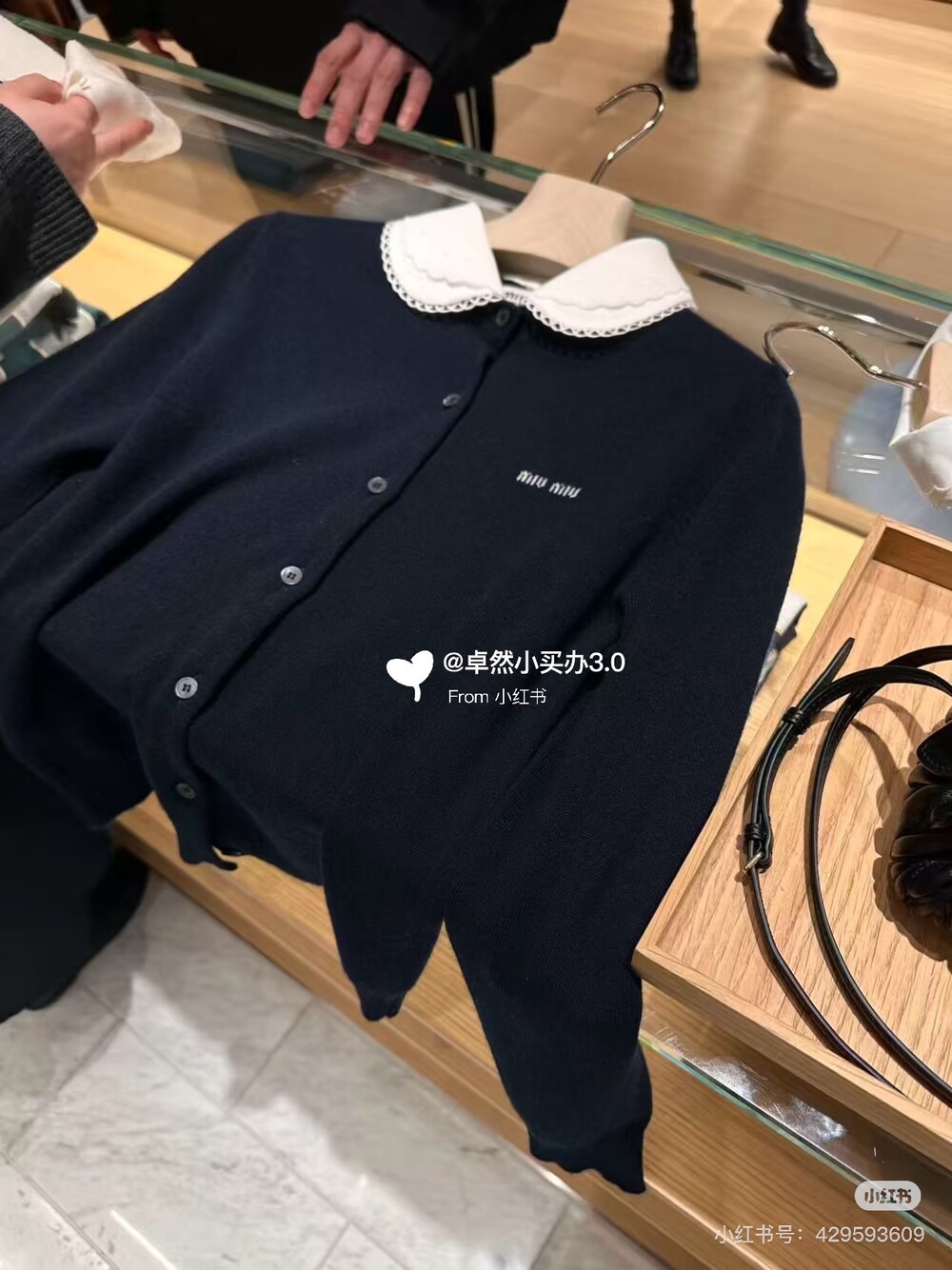 미우미우 자수 포플린 칼라 캐시미어 카디건