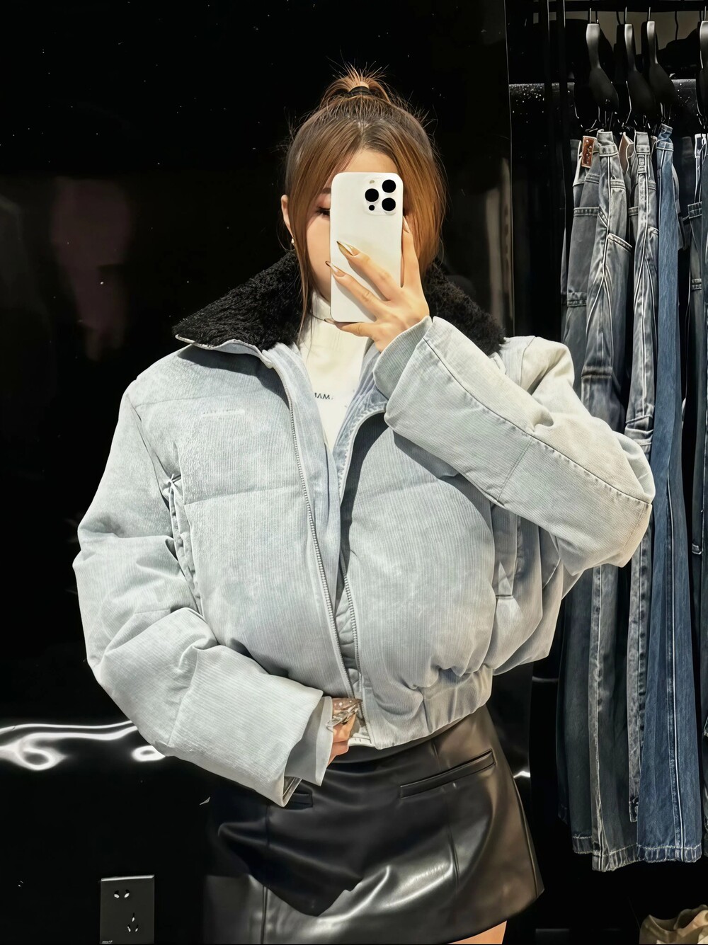 블루 데님 다운 재킷