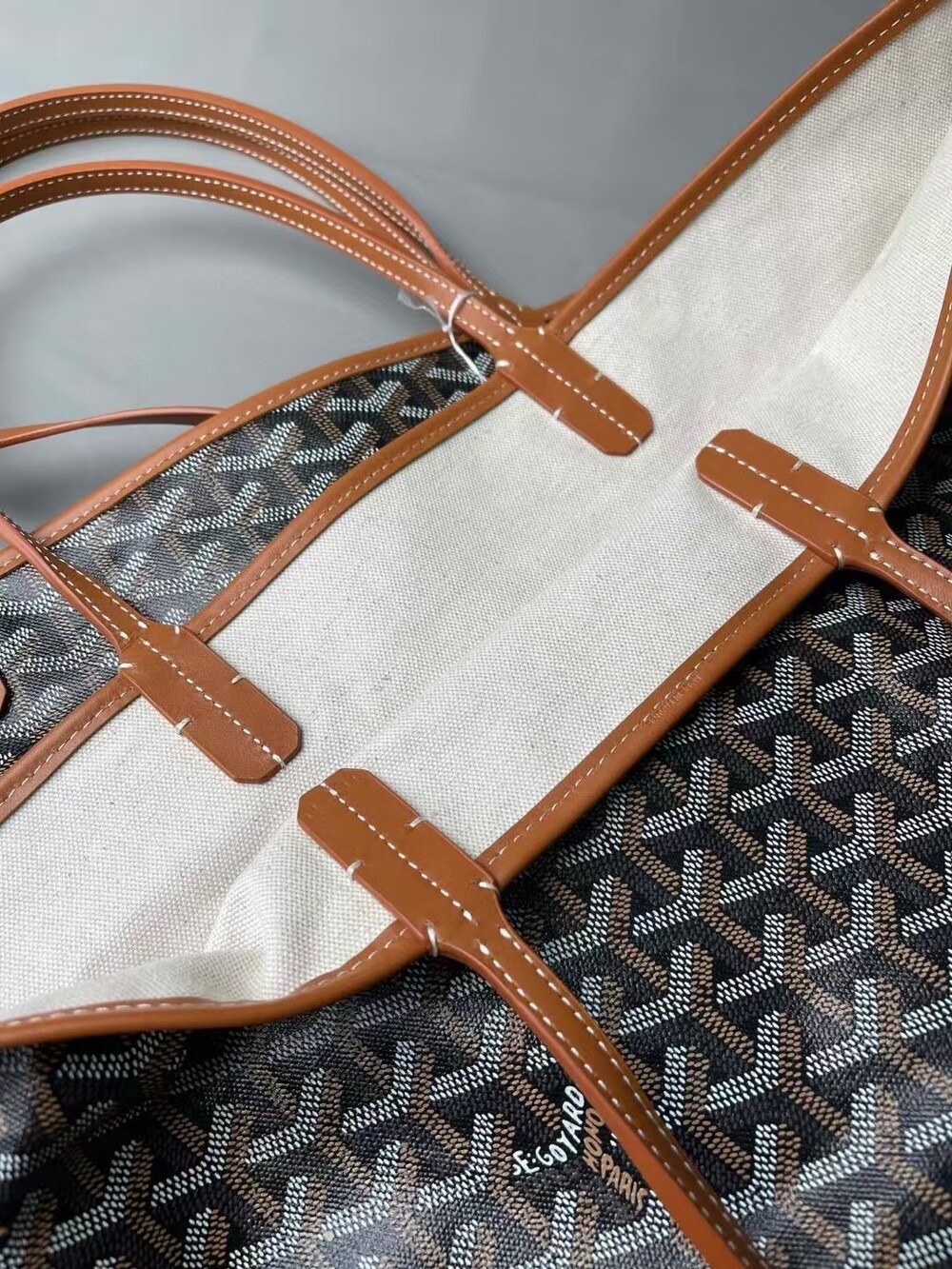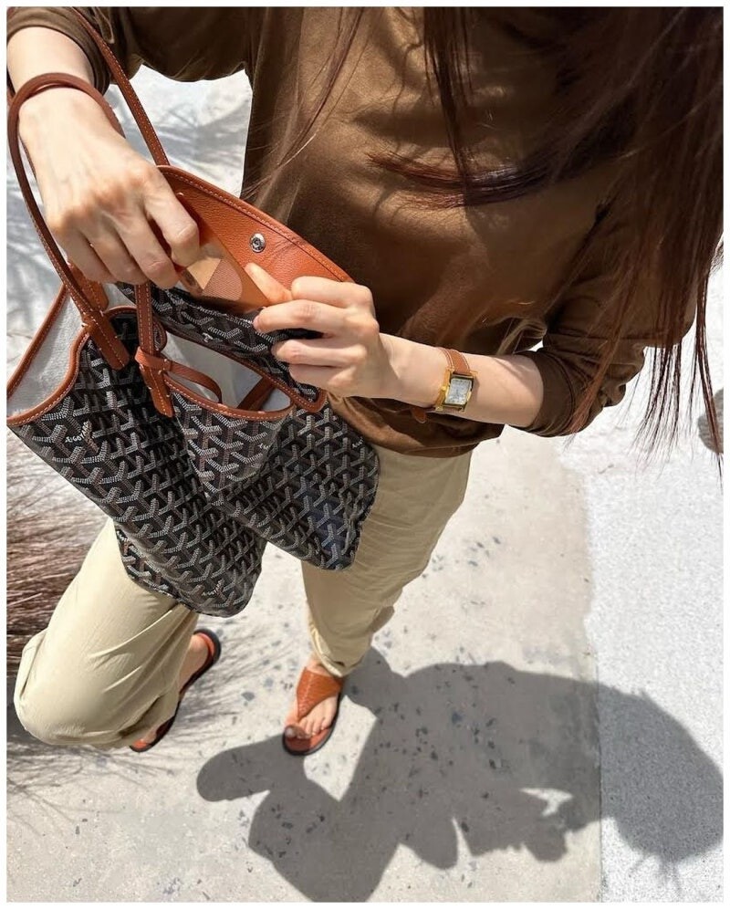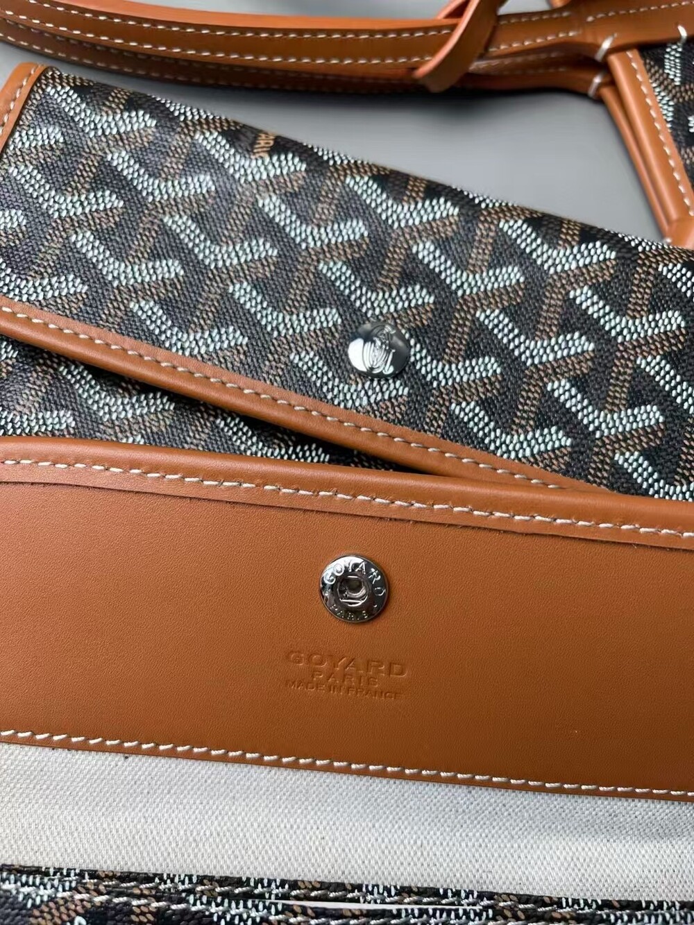 생루이 백은 고야딘 캔버스로 제작된 별도의 라이닝이 없는 매우 가벼운 리버서블 제품으로, 고야딘 캔버스가 밖을 향하도록 연출하거나 내부와 외부를 뒤집어 리넨과 코튼 소재의 직물이 드러나도록 사용하실 수 있습니다. 가느다란 두 개의 가죽 핸들이 있어, 다양한 방식으로 연출할 수 있습니다. 내부에는 핸들에 클립으로 고정할 수 있는 탈착 가능한 클러치가 있어 쉽고 빠르게 클러치에 접근할 수 있습니다.