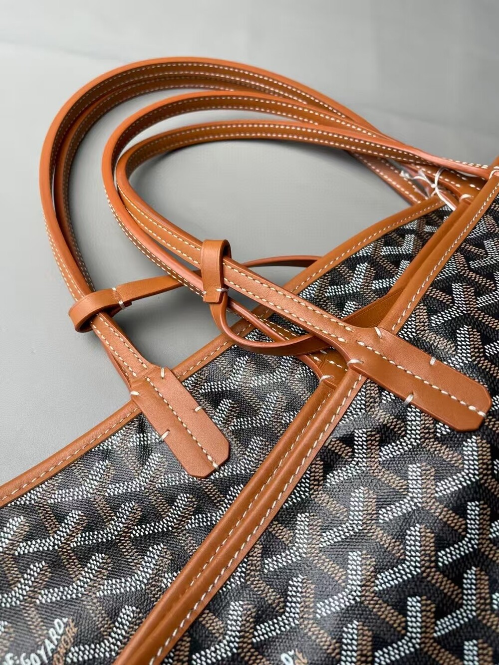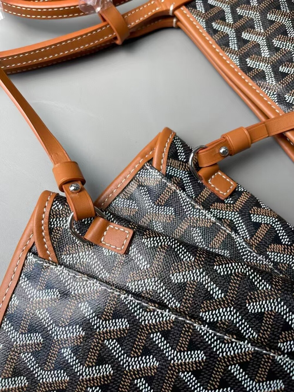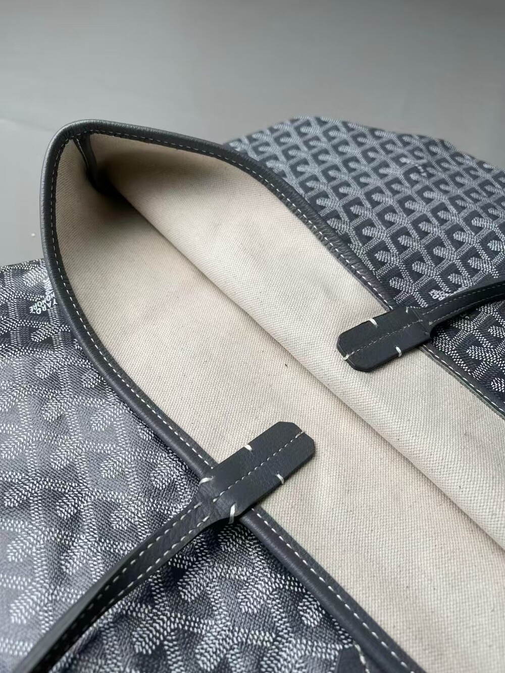 생루이 백은 고야딘 캔버스로 제작된 별도의 라이닝이 없는 매우 가벼운 리버서블 제품으로, 고야딘 캔버스가 밖을 향하도록 연출하거나 내부와 외부를 뒤집어 리넨과 코튼 소재의 직물이 드러나도록 사용하실 수 있습니다. 가느다란 두 개의 가죽 핸들이 있어, 다양한 방식으로 연출할 수 있습니다. 내부에는 핸들에 클립으로 고정할 수 있는 탈착 가능한 클러치가 있어 쉽고 빠르게 클러치에 접근할 수 있습니다.