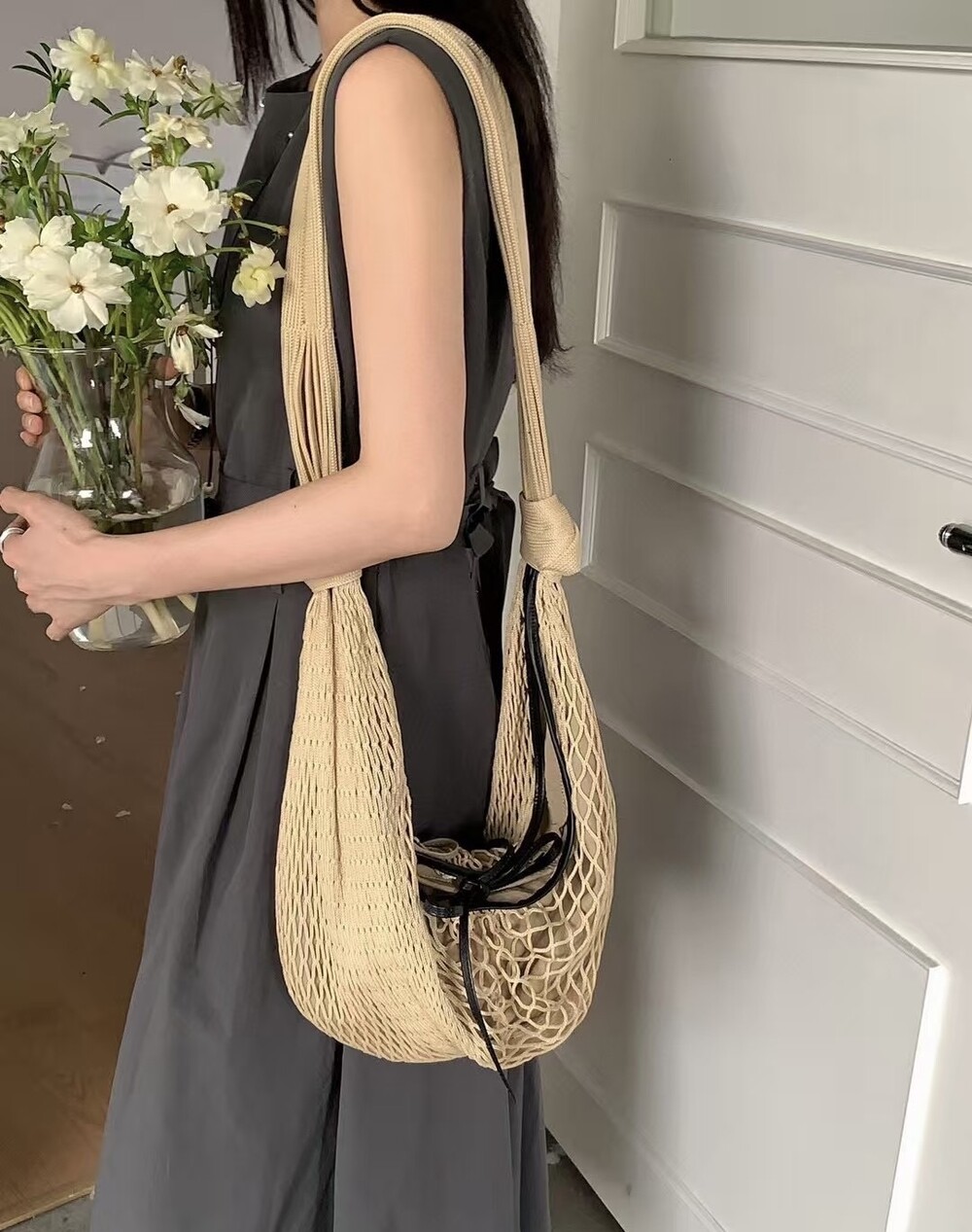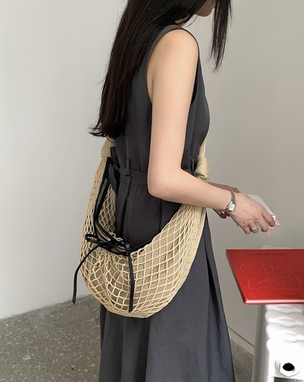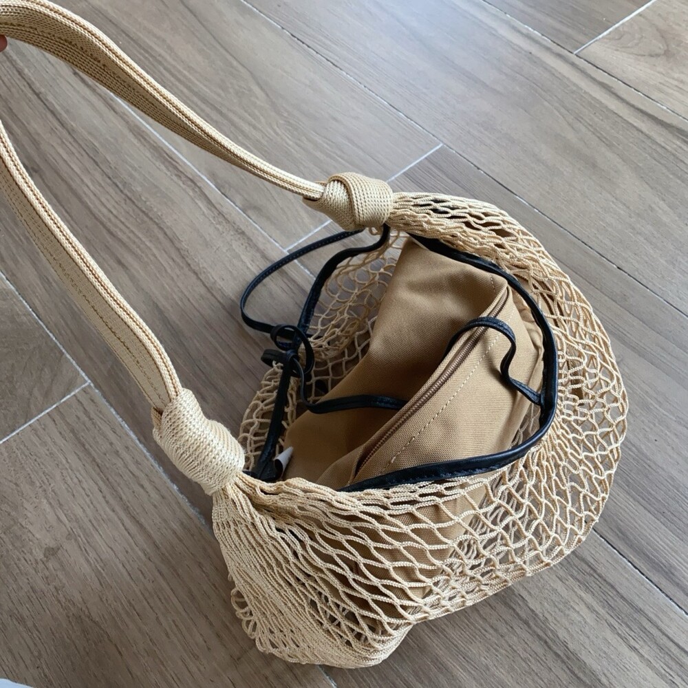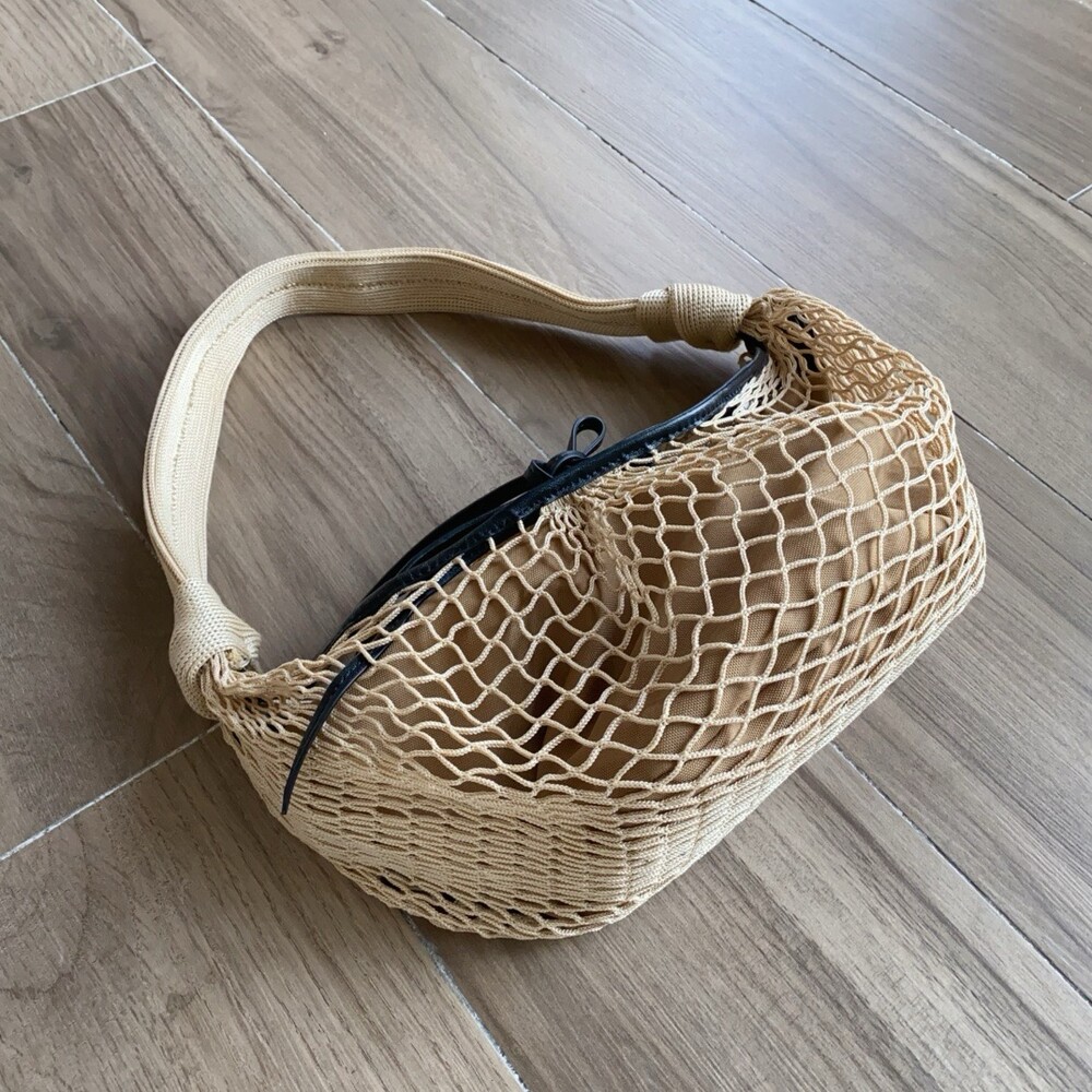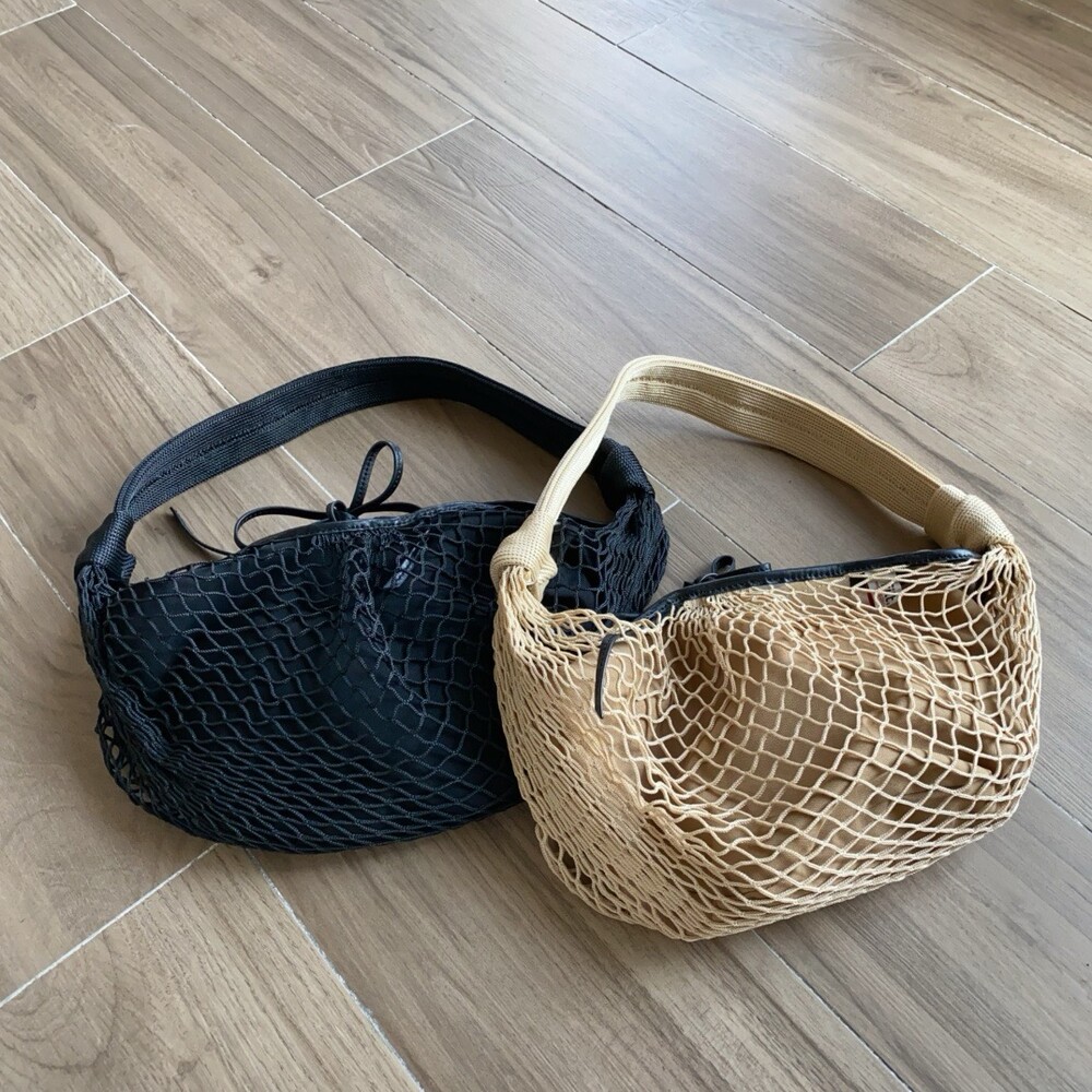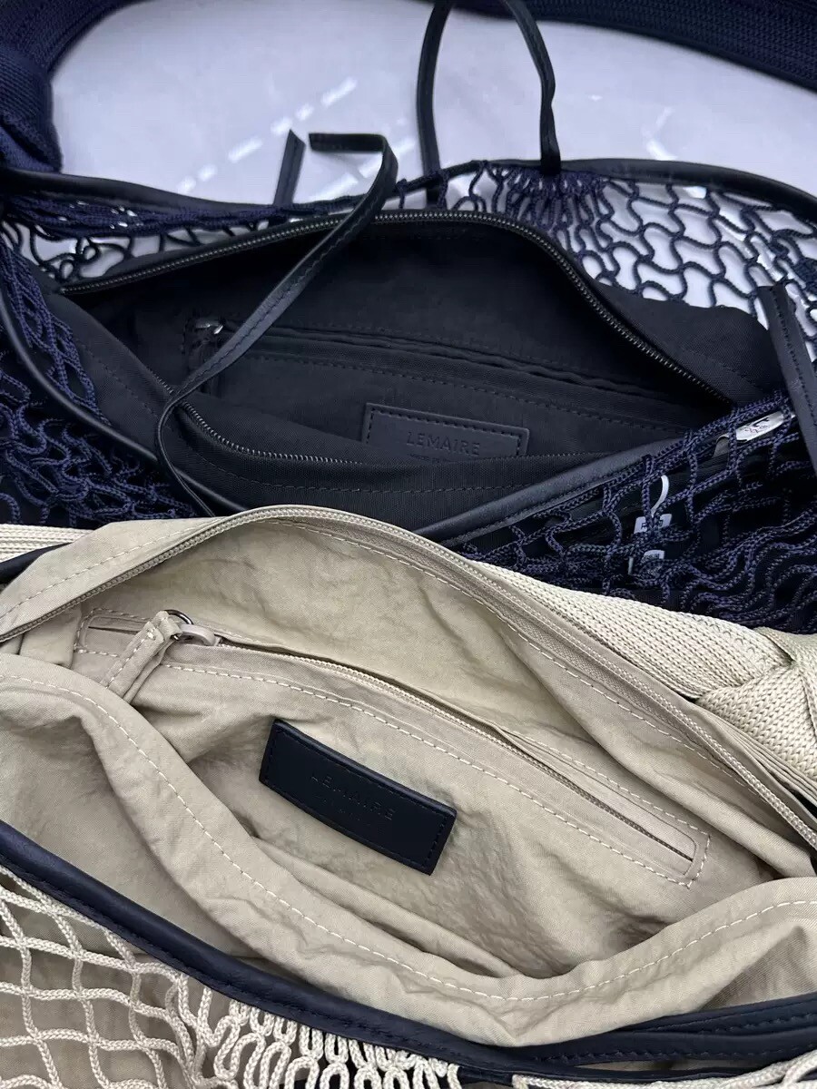 르메르와 프랑스에서 가장 오래된 넷 쇼핑백 제조업체인 필트(1860년 설립)의 협업으로 탄생한 이 가방은 상징적인 크루아상 라인과 일상적인 오브제에서 영감을 받았습니다. 이 작품은 나일론 네트와 탈착식 내부 가방을 결합하여 2-in-1로 해석한 것입니다.