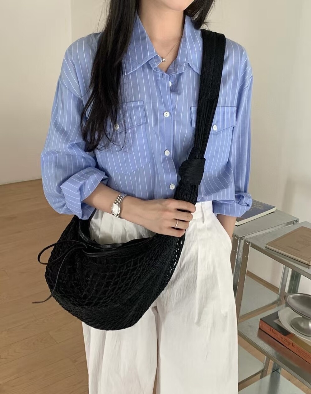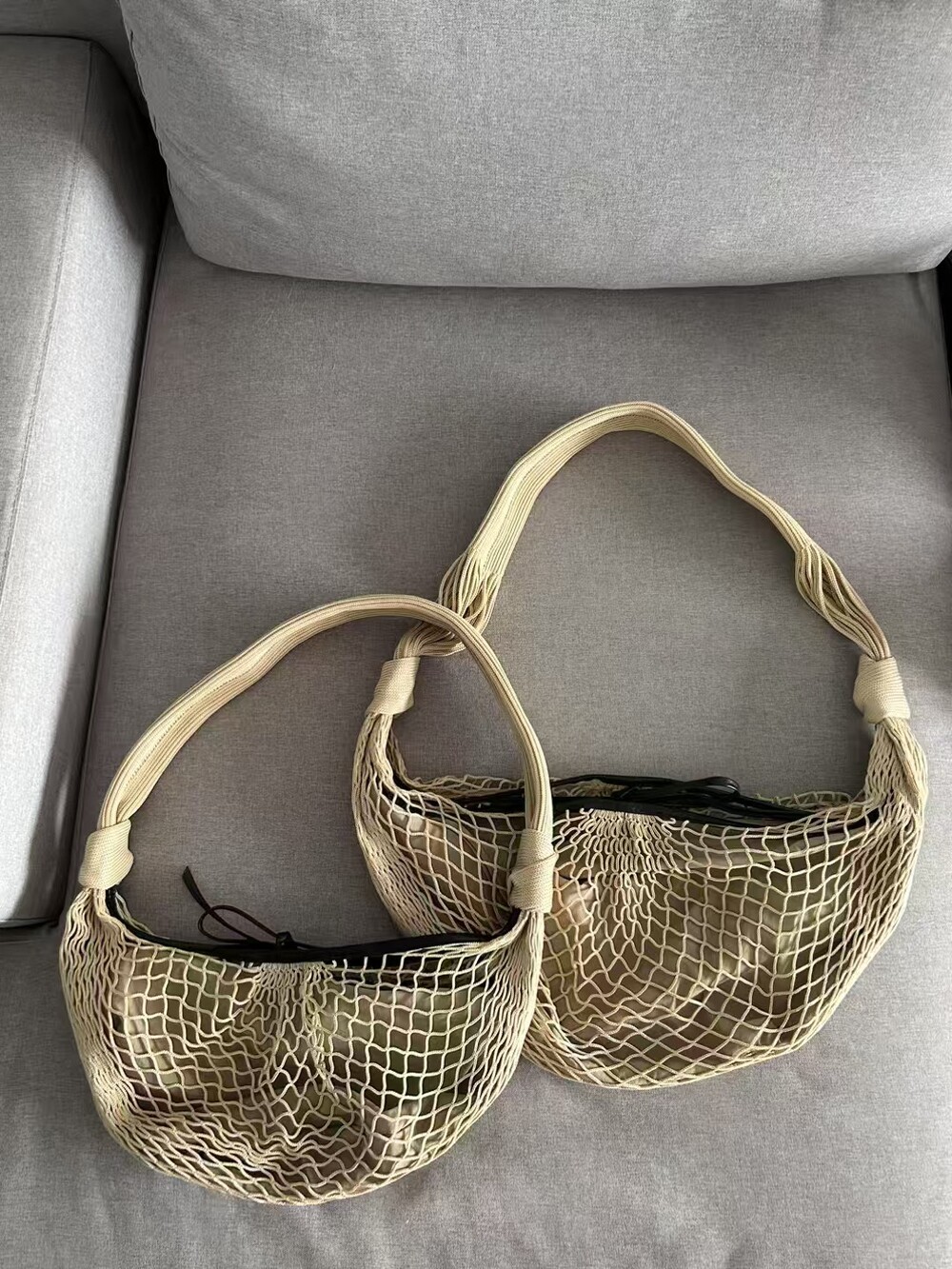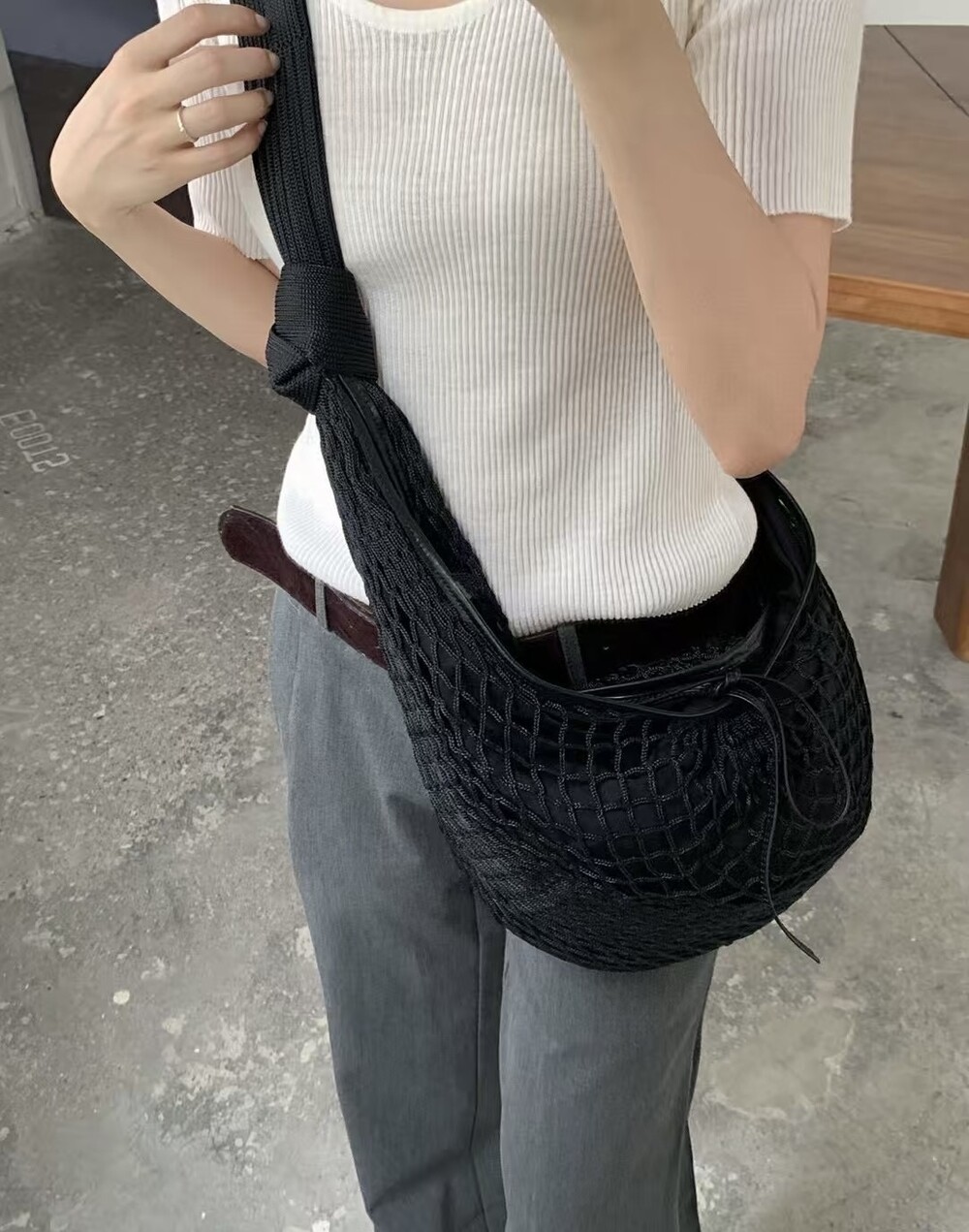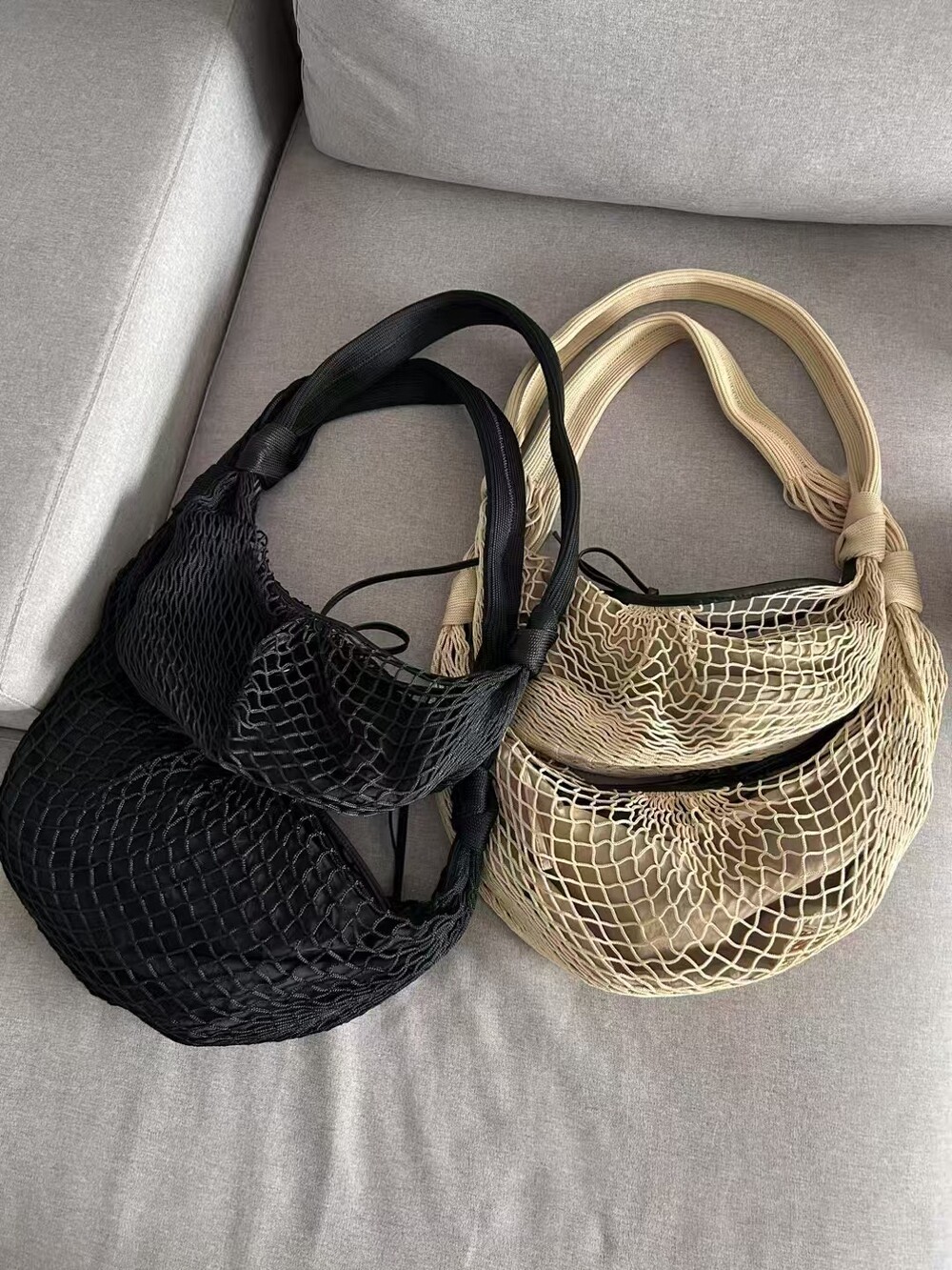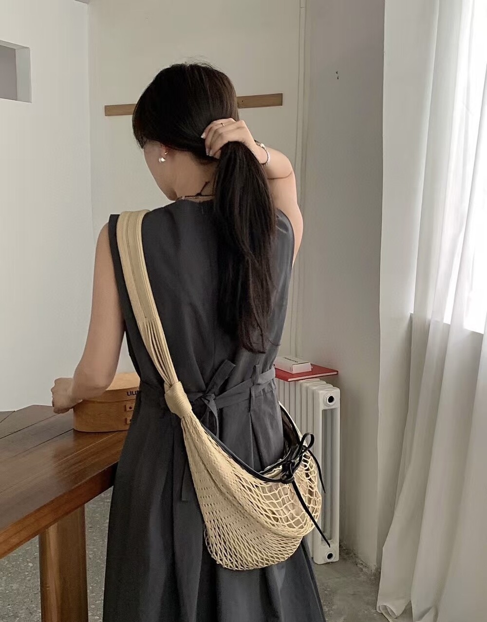 르메르와 프랑스에서 가장 오래된 넷 쇼핑백 제조업체인 필트(1860년 설립)의 협업으로 탄생한 이 가방은 상징적인 크루아상 라인과 일상적인 오브제에서 영감을 받았습니다. 이 작품은 나일론 네트와 탈착식 내부 가방을 결합하여 2-in-1로 해석한 것입니다.