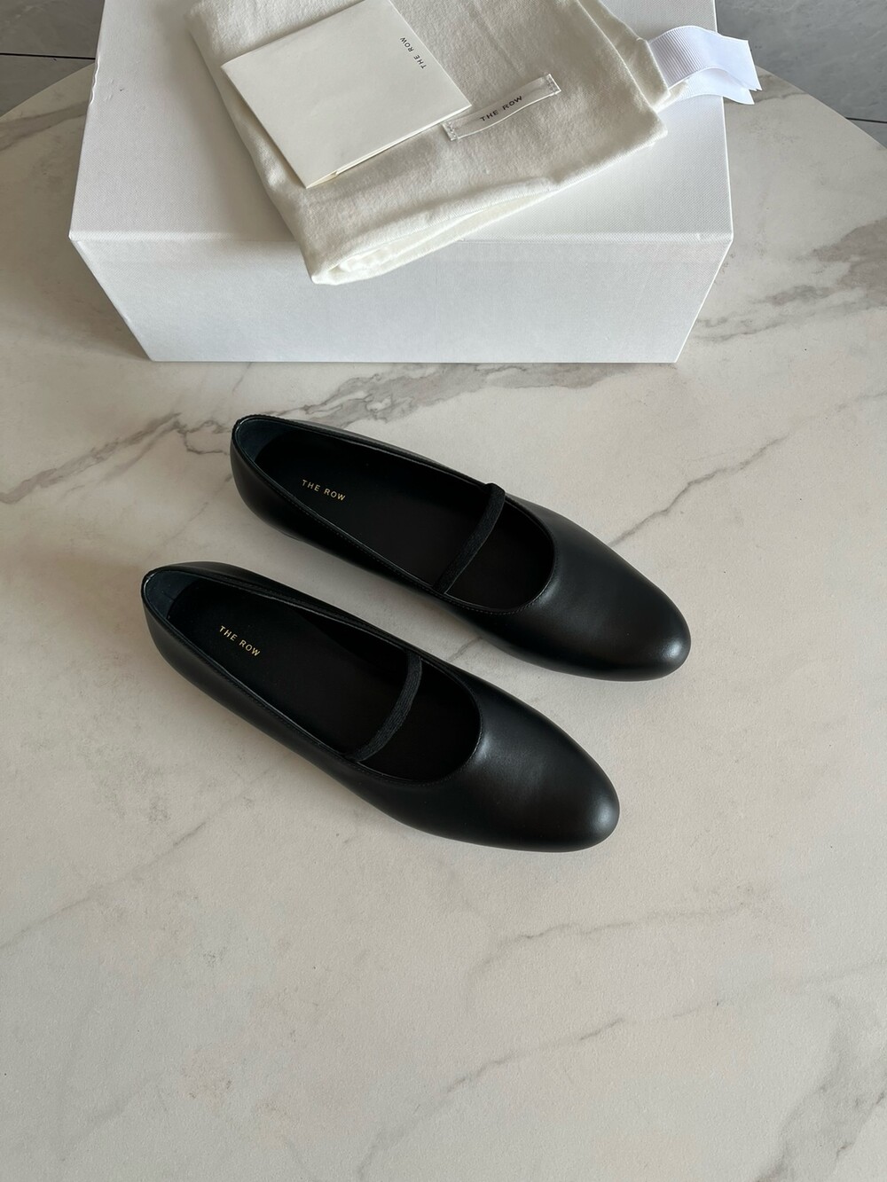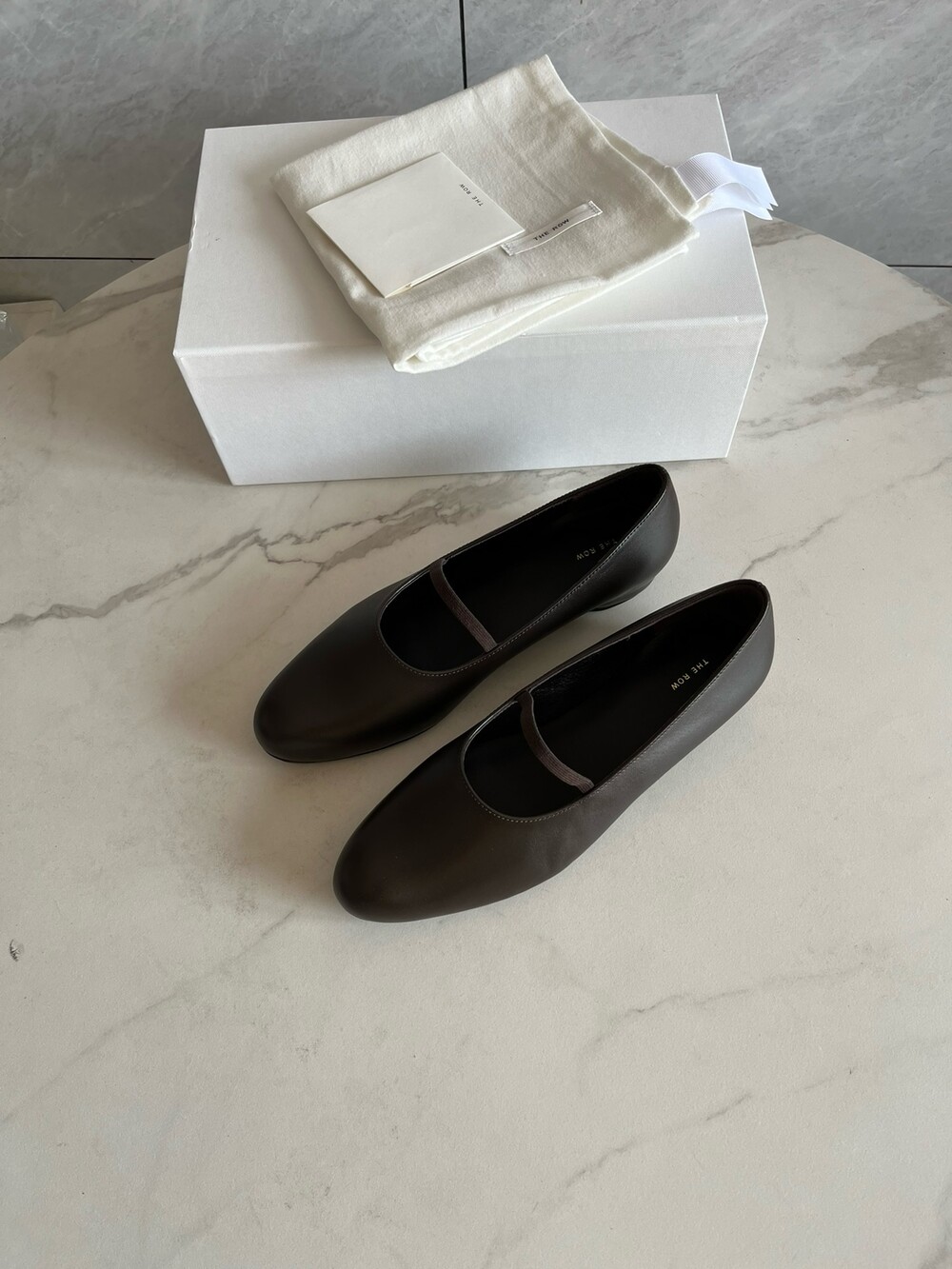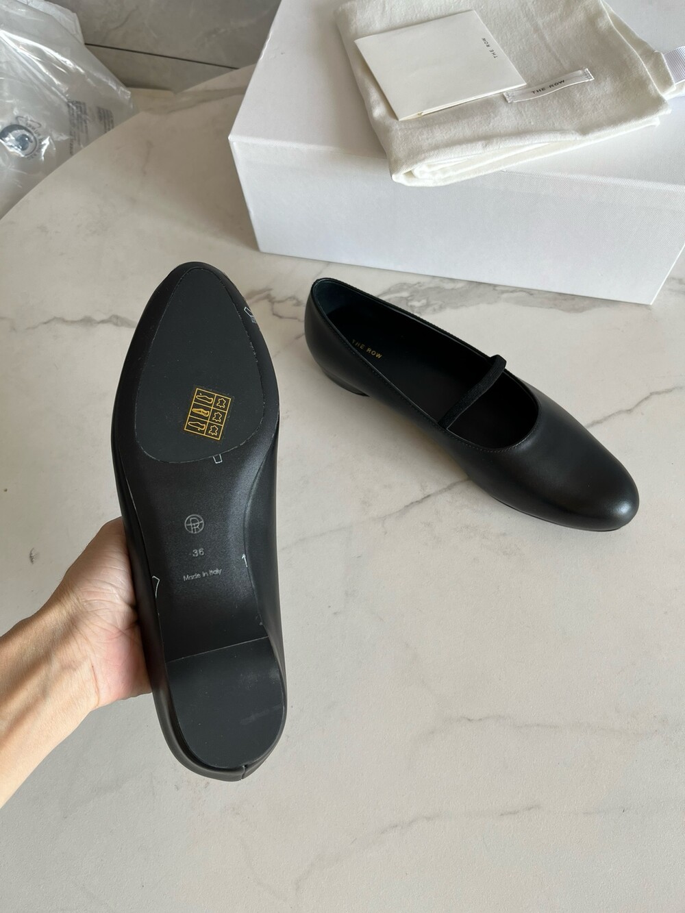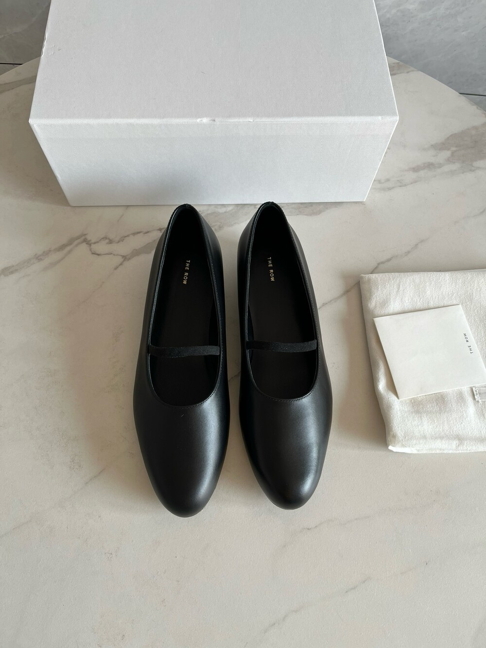 스무드 카프스킨 가죽 소재의 업데이티드 메리제인. 신축성 있는 스트랩 및 길쭉한 미니 웨지 힐.