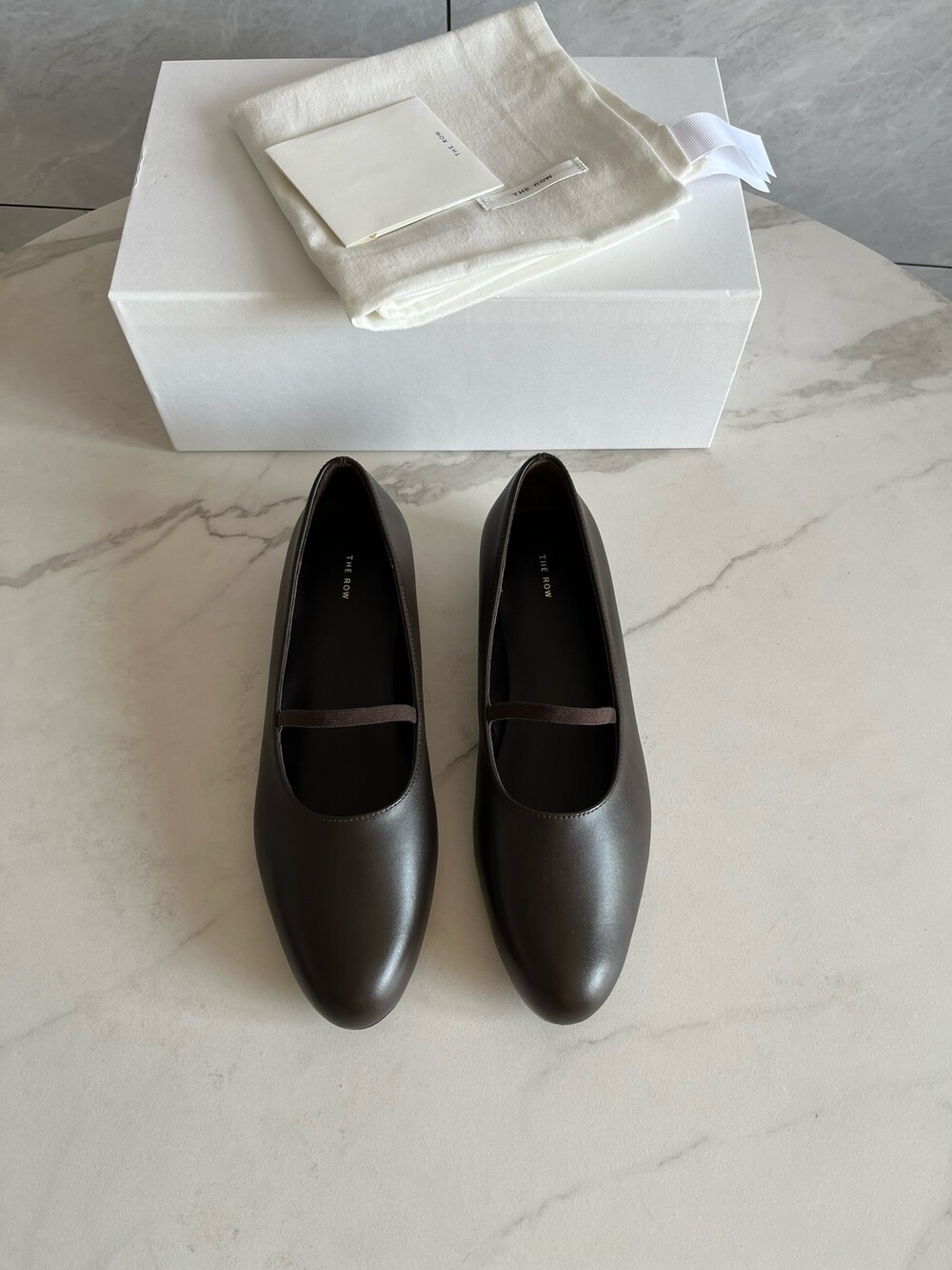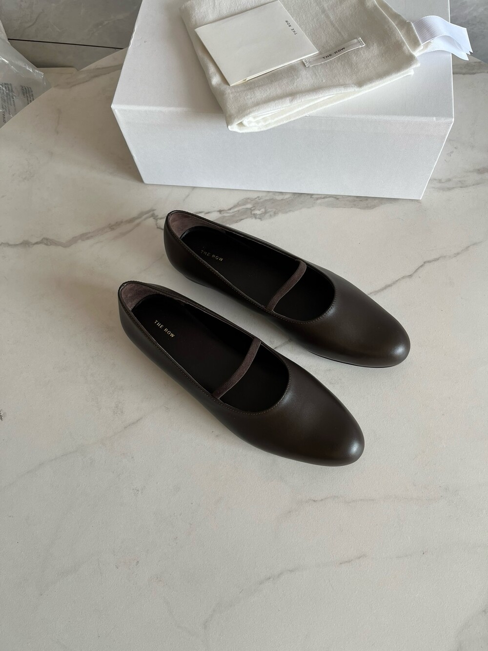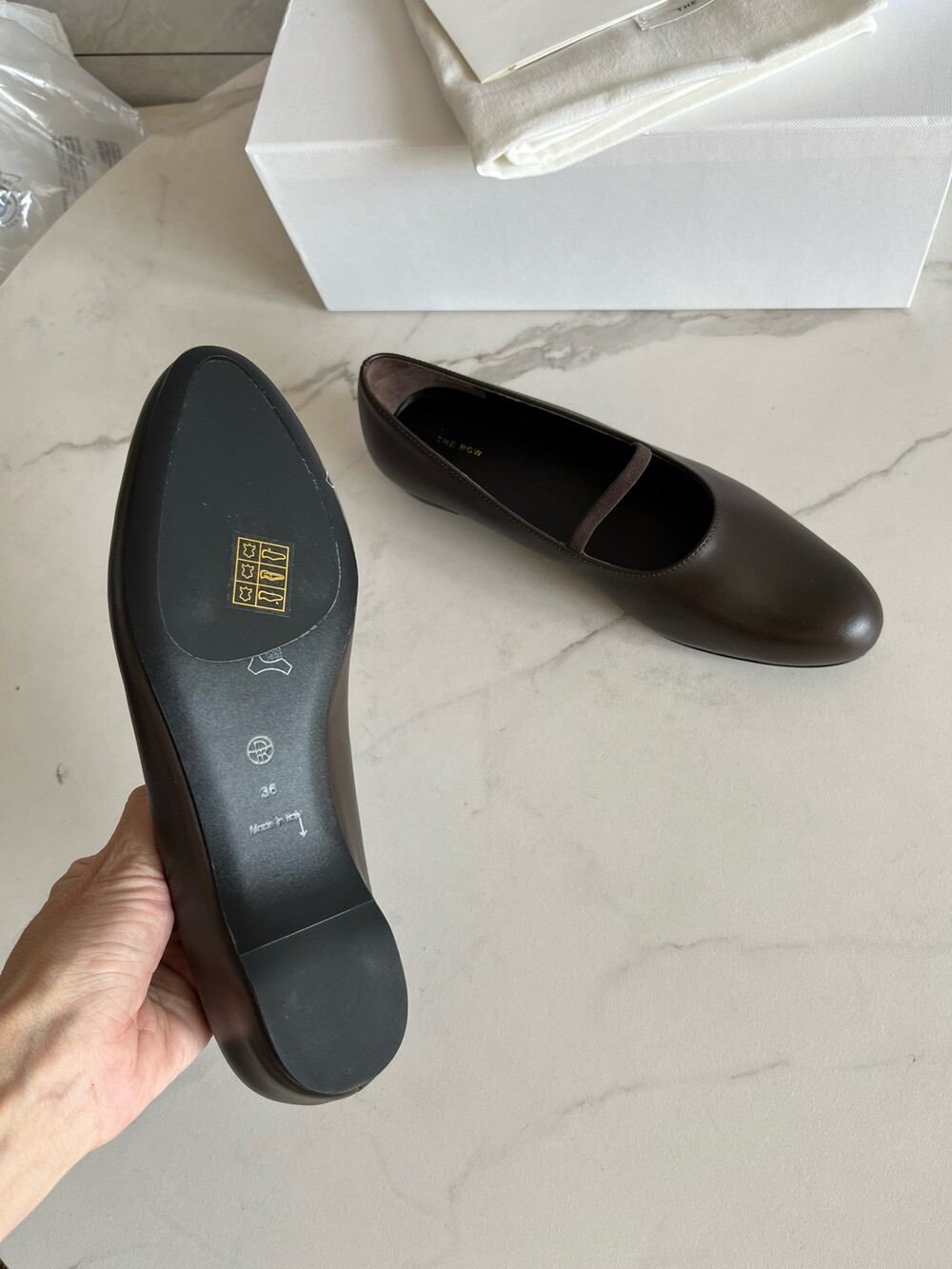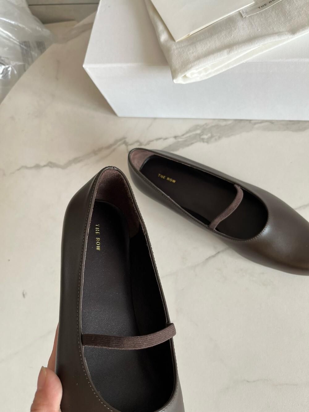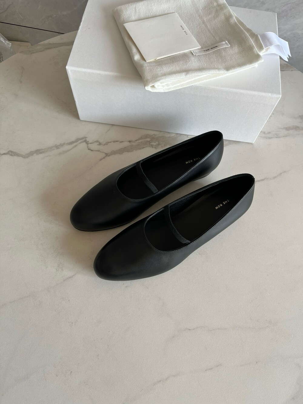 스무드 카프스킨 가죽 소재의 업데이티드 메리제인. 신축성 있는 스트랩 및 길쭉한 미니 웨지 힐.