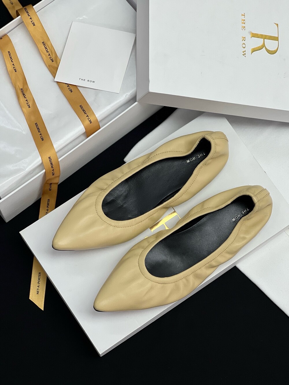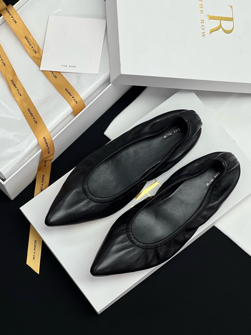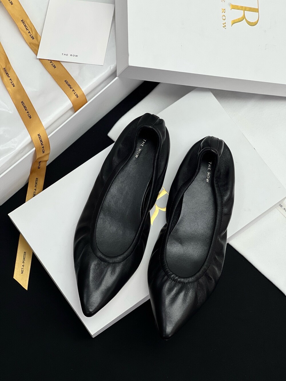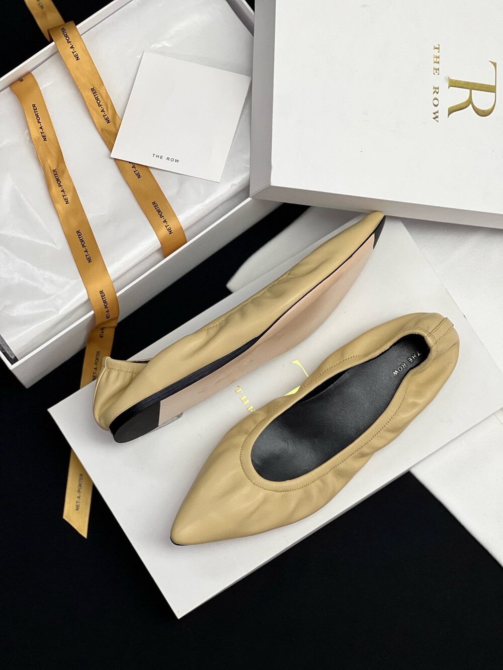 부드러운 램스킨 가죽 소재의 미니멀 플랫 슈즈. 포인티드 토, 신축성 있는 부드러운 트리밍, 가죽 밑창.