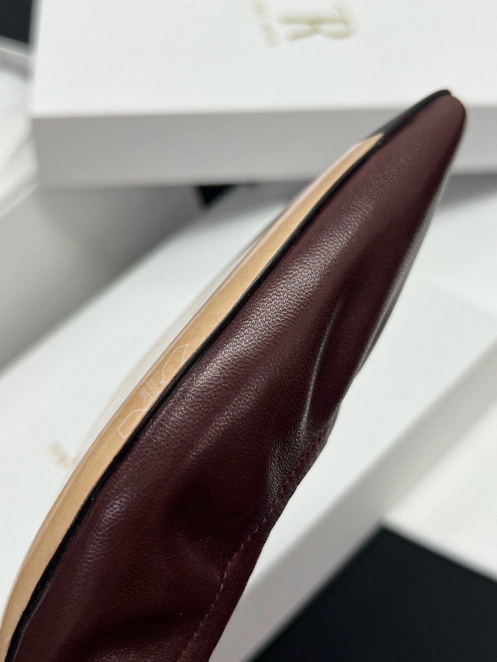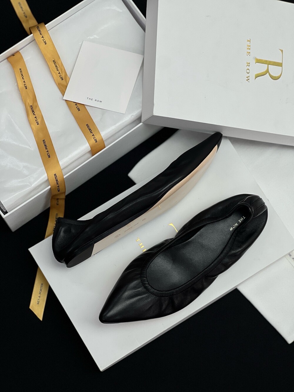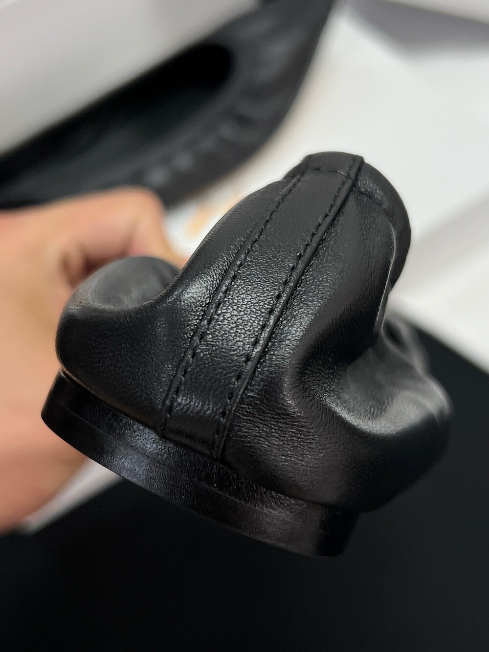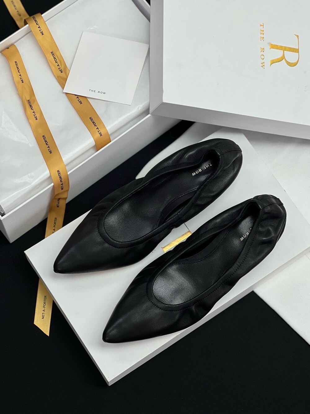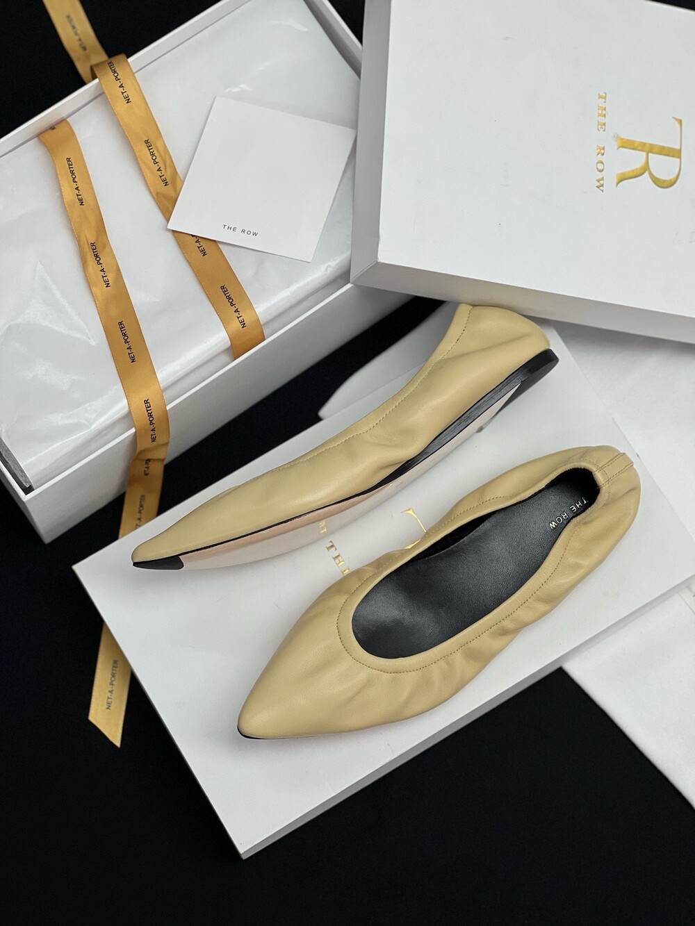 부드러운 램스킨 가죽 소재의 미니멀 플랫 슈즈. 포인티드 토, 신축성 있는 부드러운 트리밍, 가죽 밑창.
