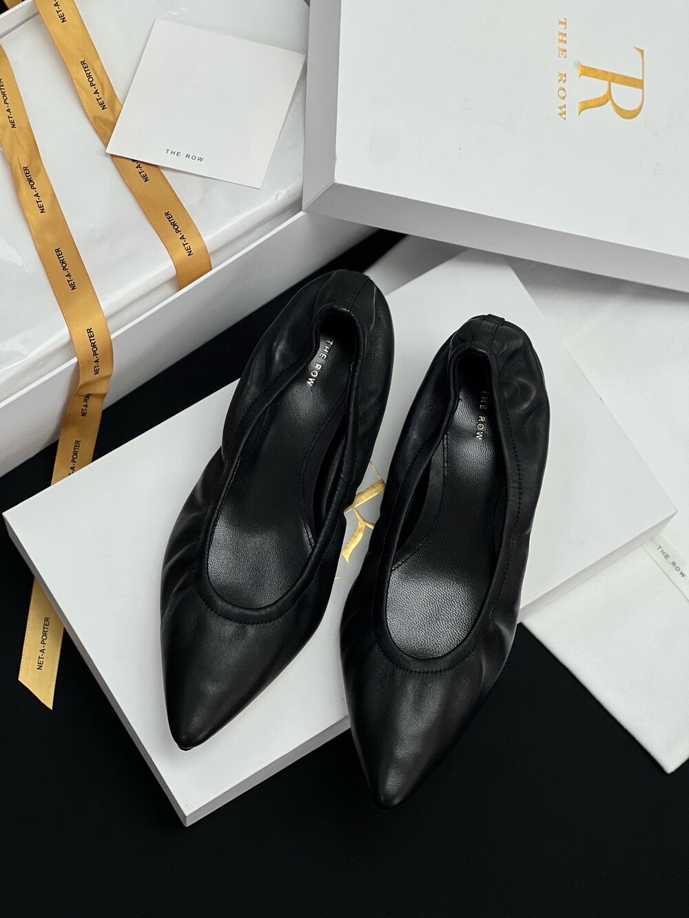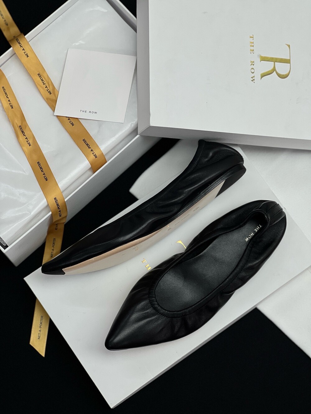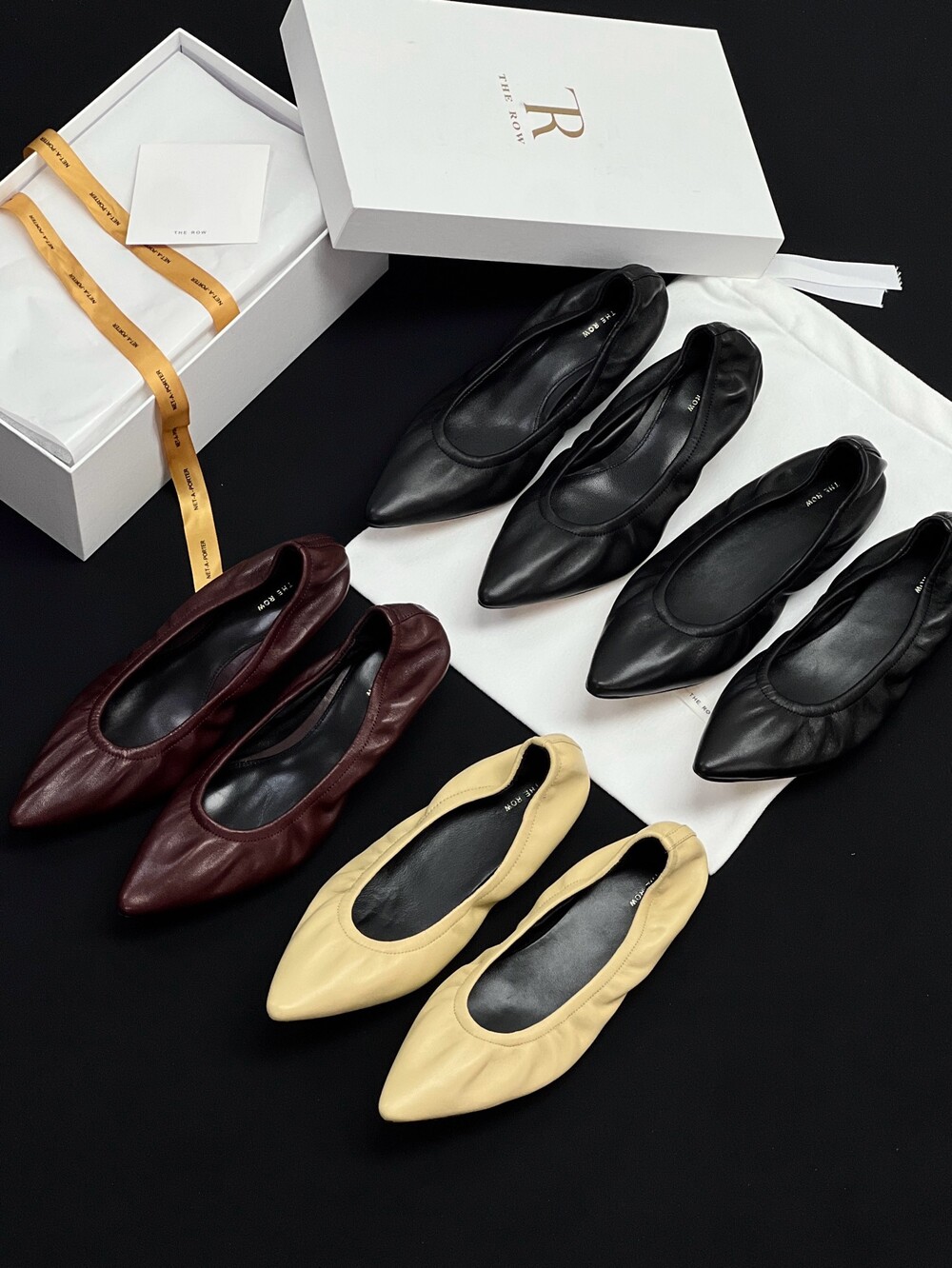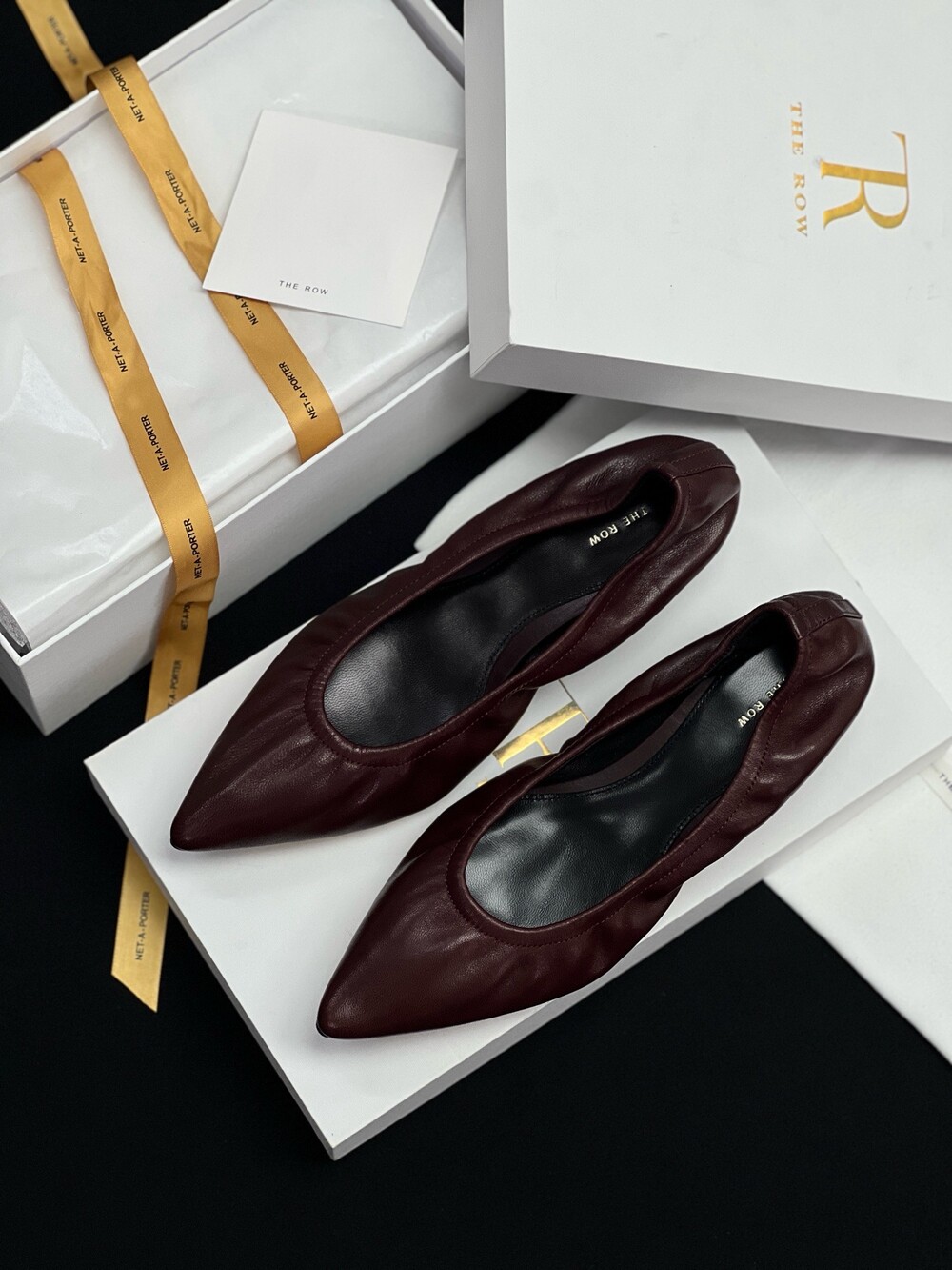 부드러운 램스킨 가죽 소재의 미니멀 플랫 슈즈. 포인티드 토, 신축성 있는 부드러운 트리밍, 가죽 밑창.