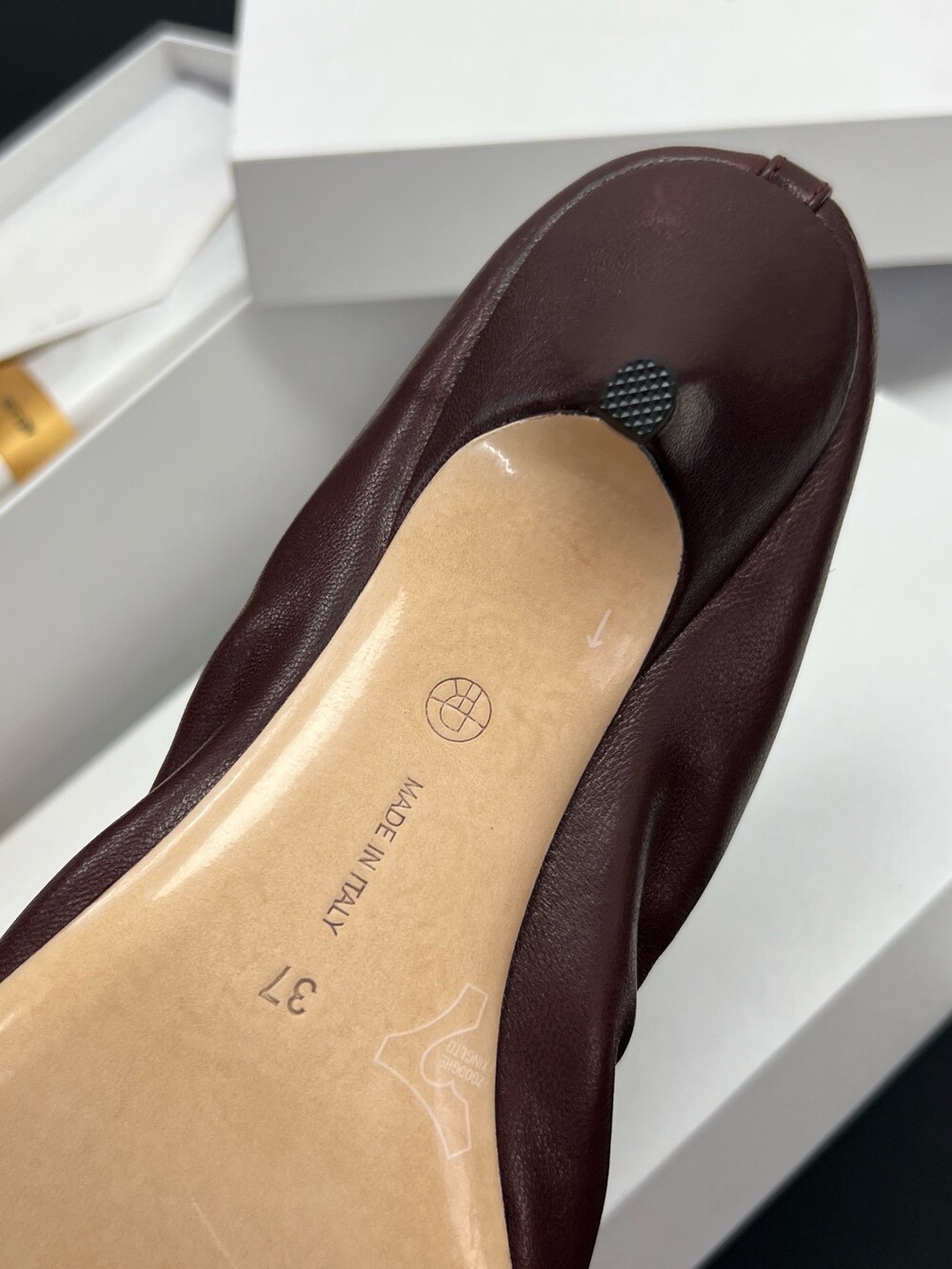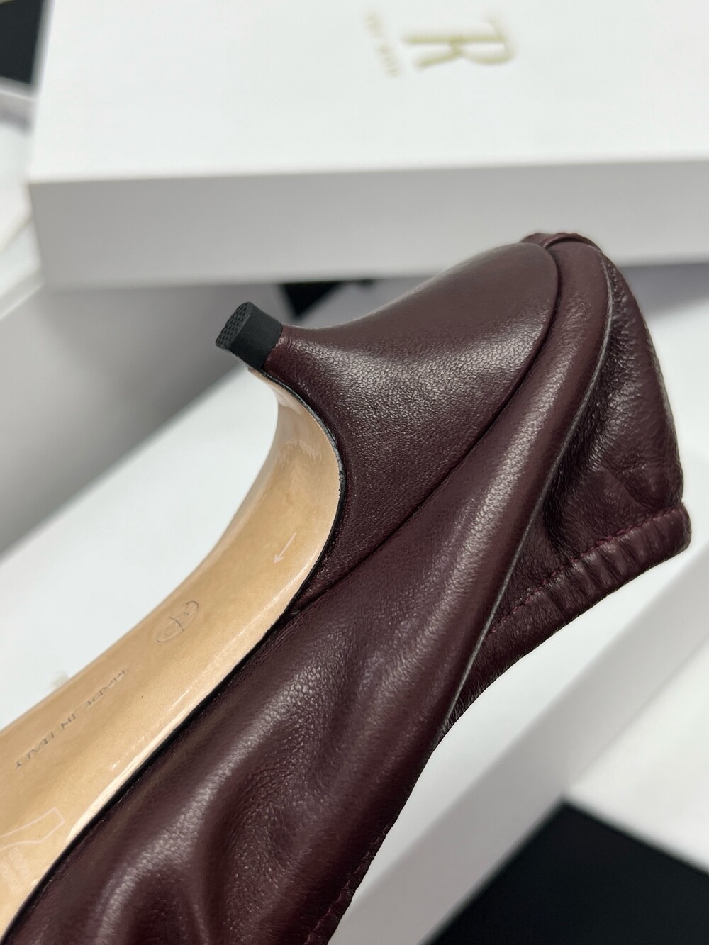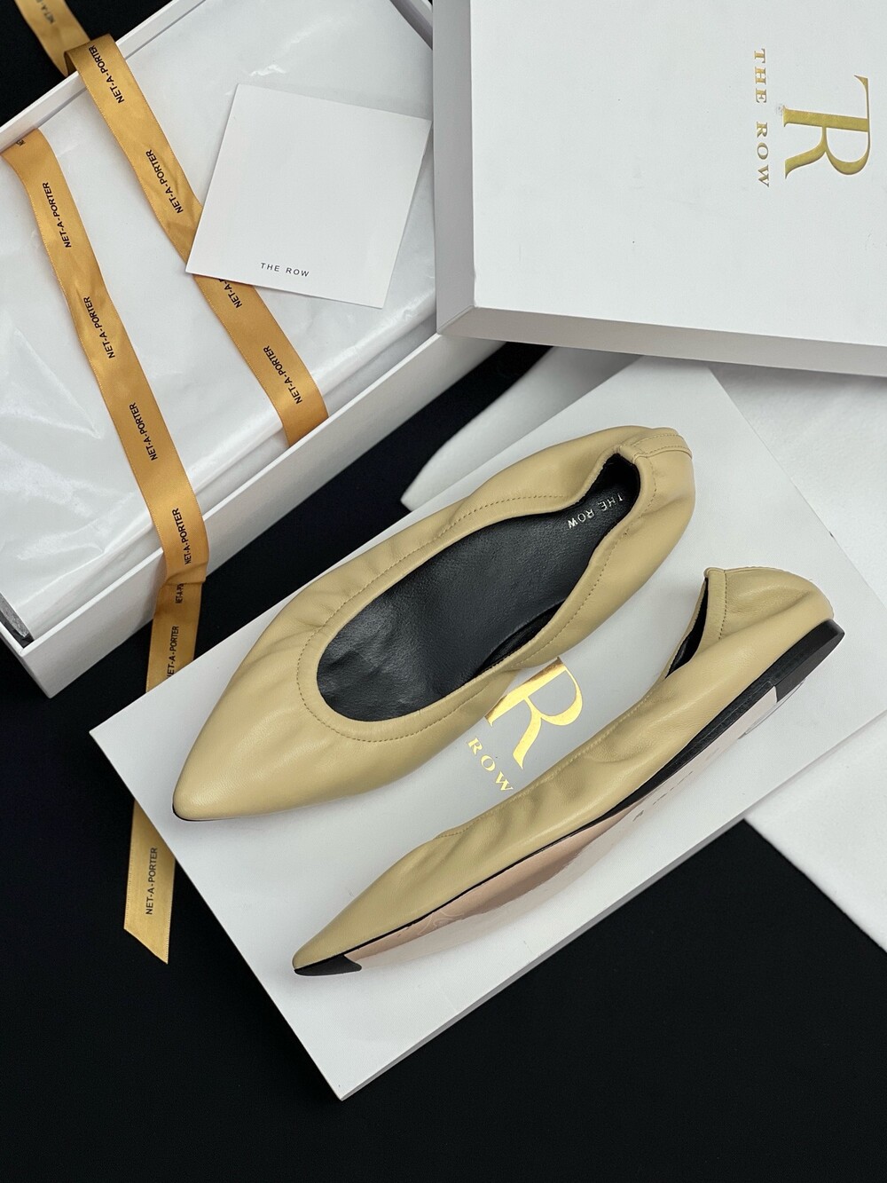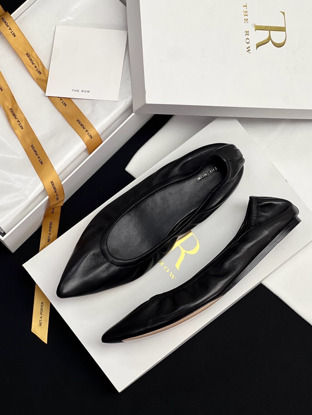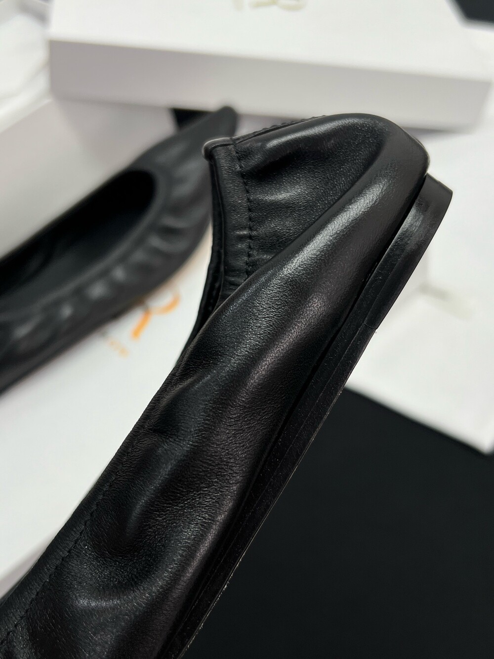 부드러운 램스킨 가죽 소재의 미니멀 플랫 슈즈. 포인티드 토, 신축성 있는 부드러운 트리밍, 가죽 밑창.