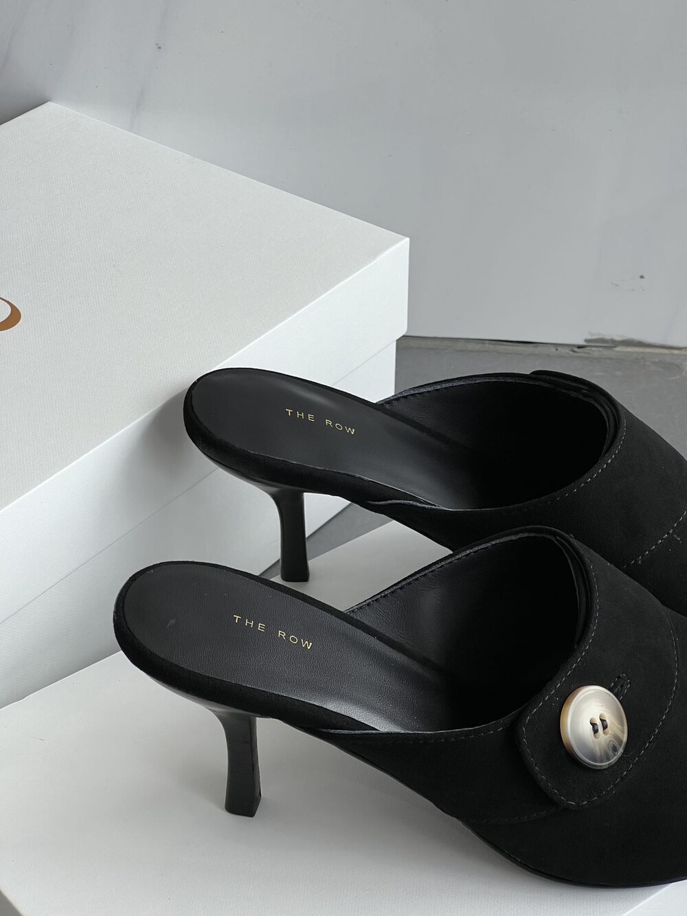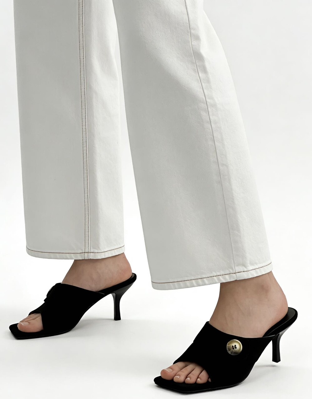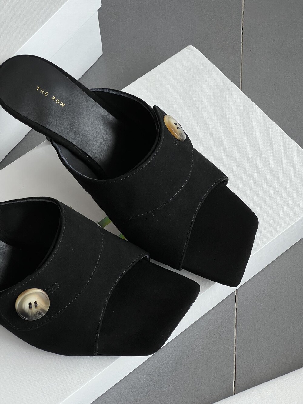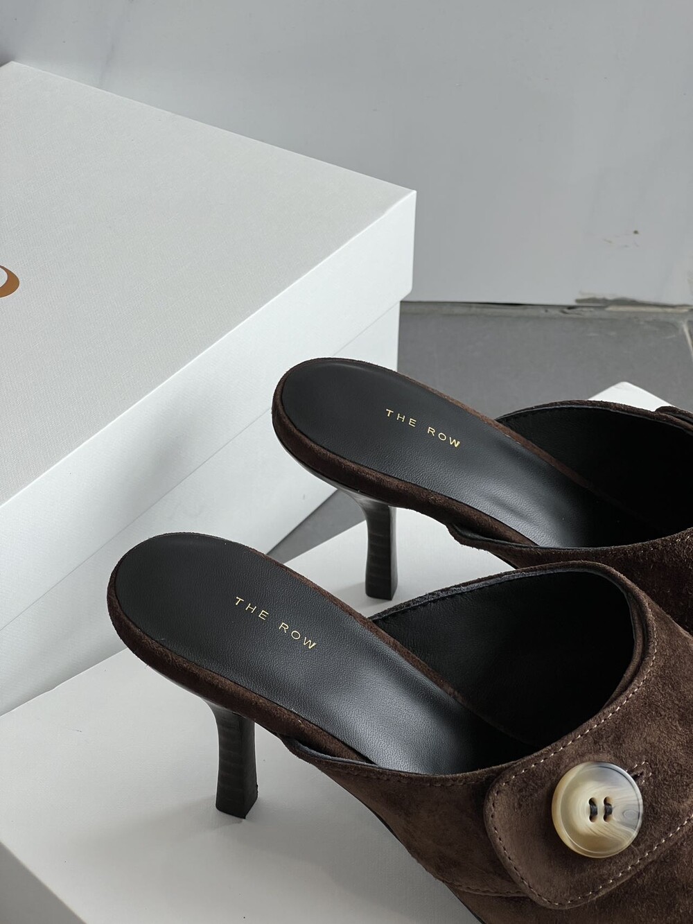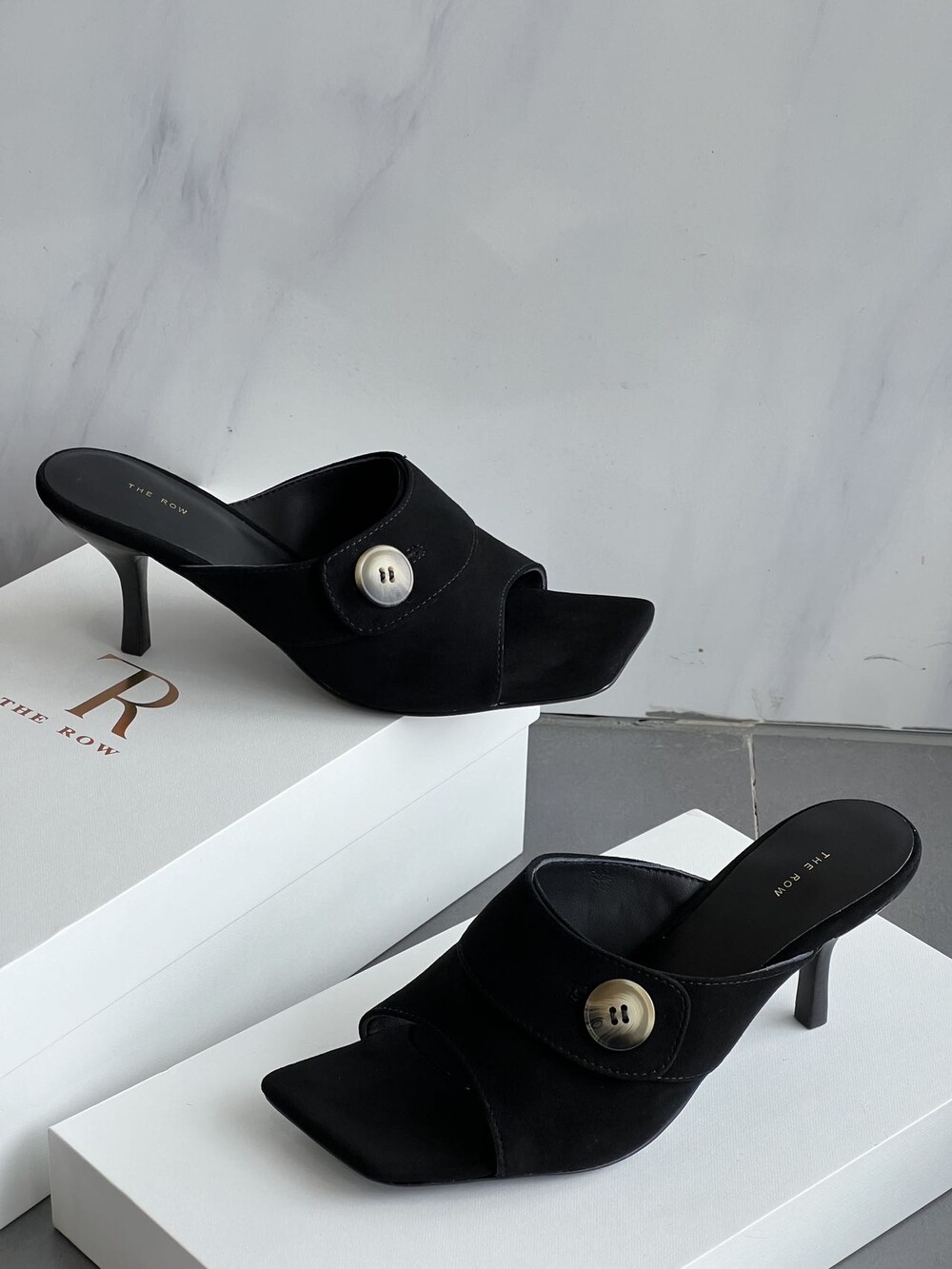커스텀 레진 버튼: 슈즈 상단의 버튼은 수입 커스텀 레진 소재를 사용해 은은한 포인트가 되어줍니다. 작은 디테일 하나가 전체적인 무드를 완성합니다.