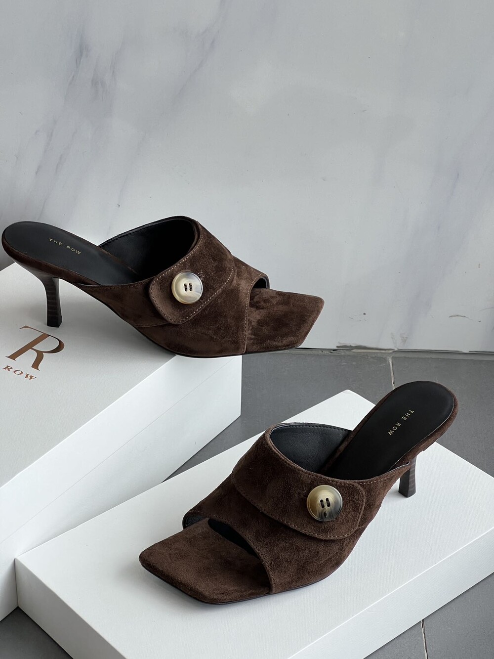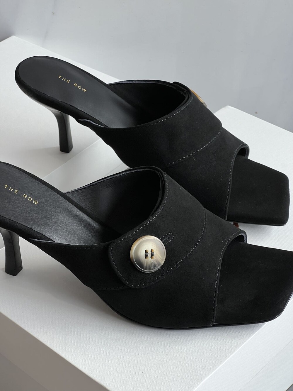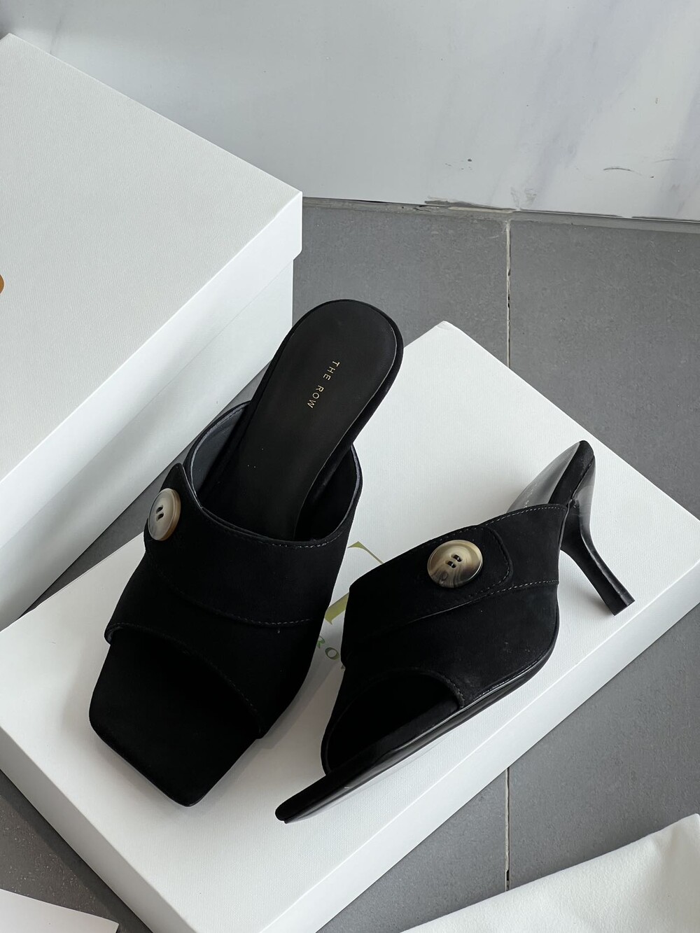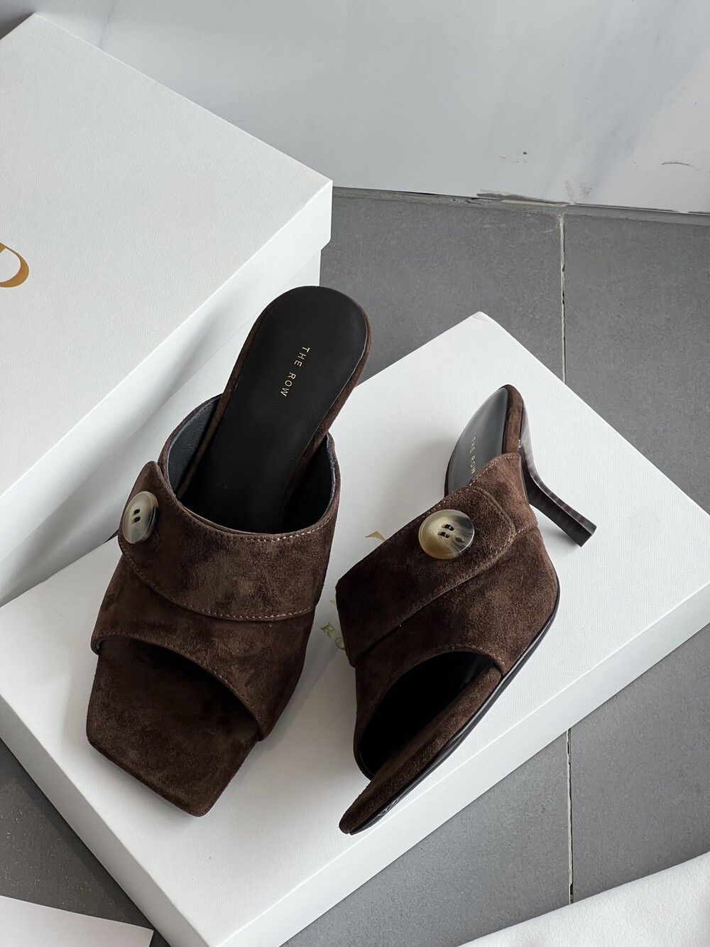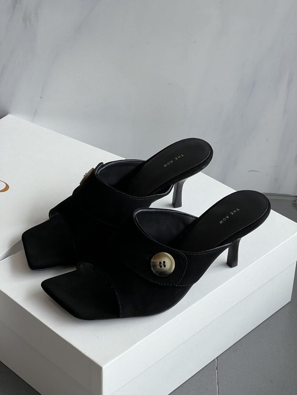 커스텀 레진 버튼: 슈즈 상단의 버튼은 수입 커스텀 레진 소재를 사용해 은은한 포인트가 되어줍니다. 작은 디테일 하나가 전체적인 무드를 완성합니다.