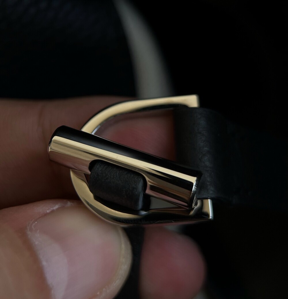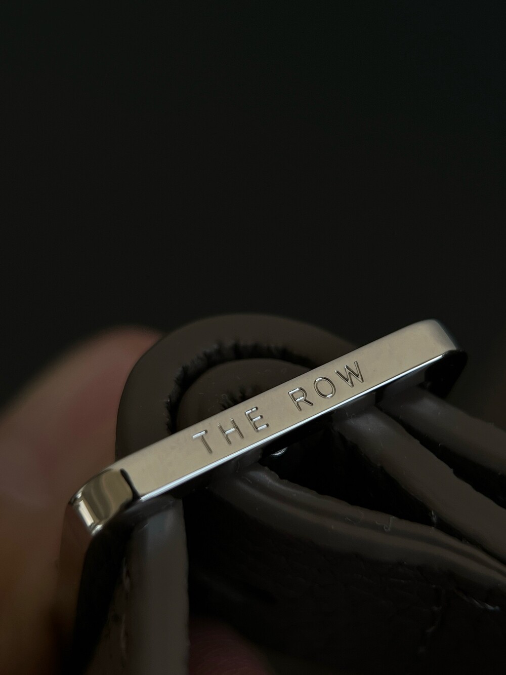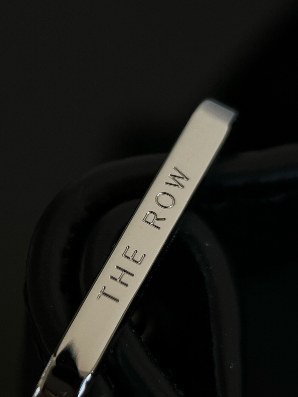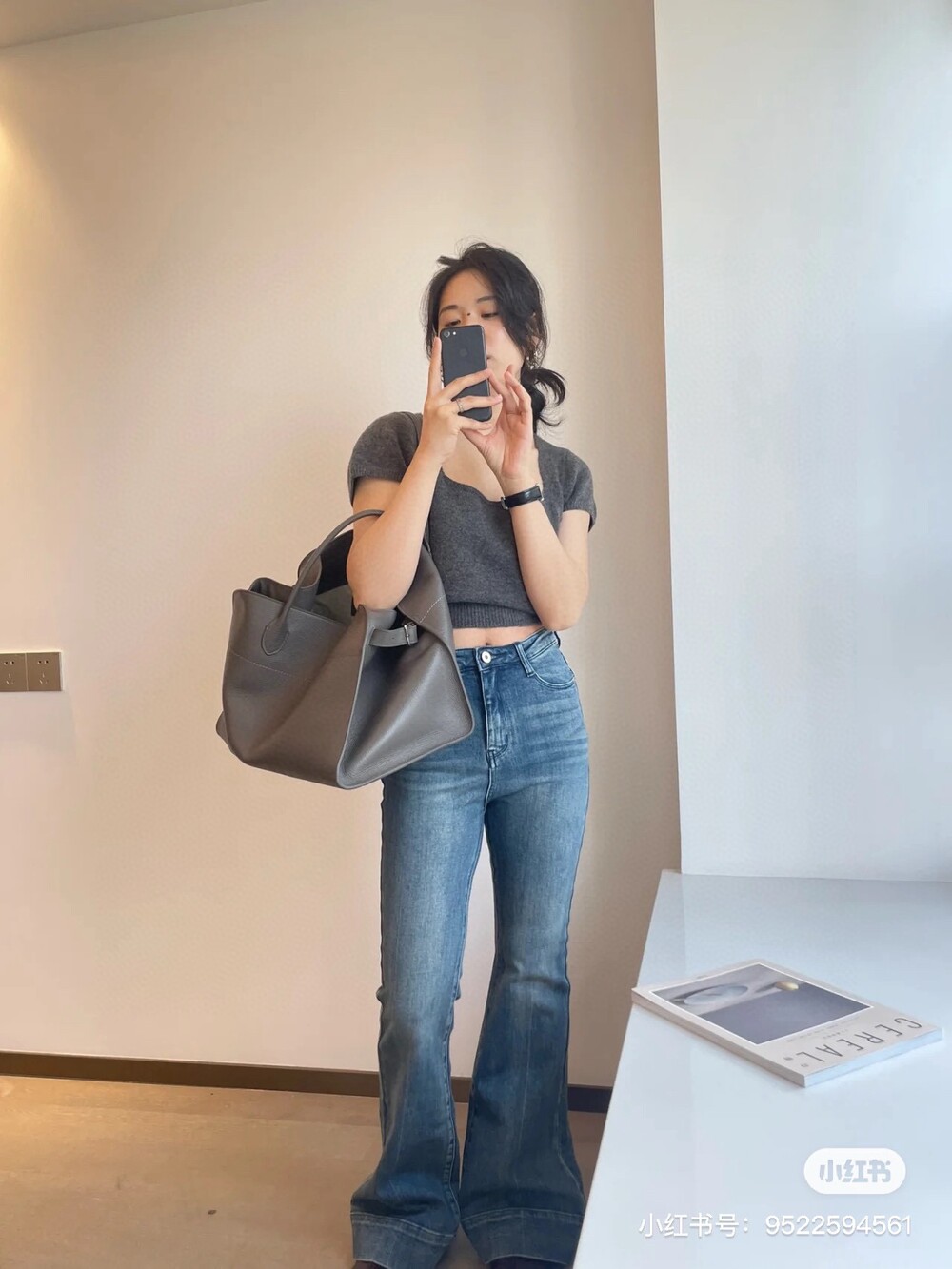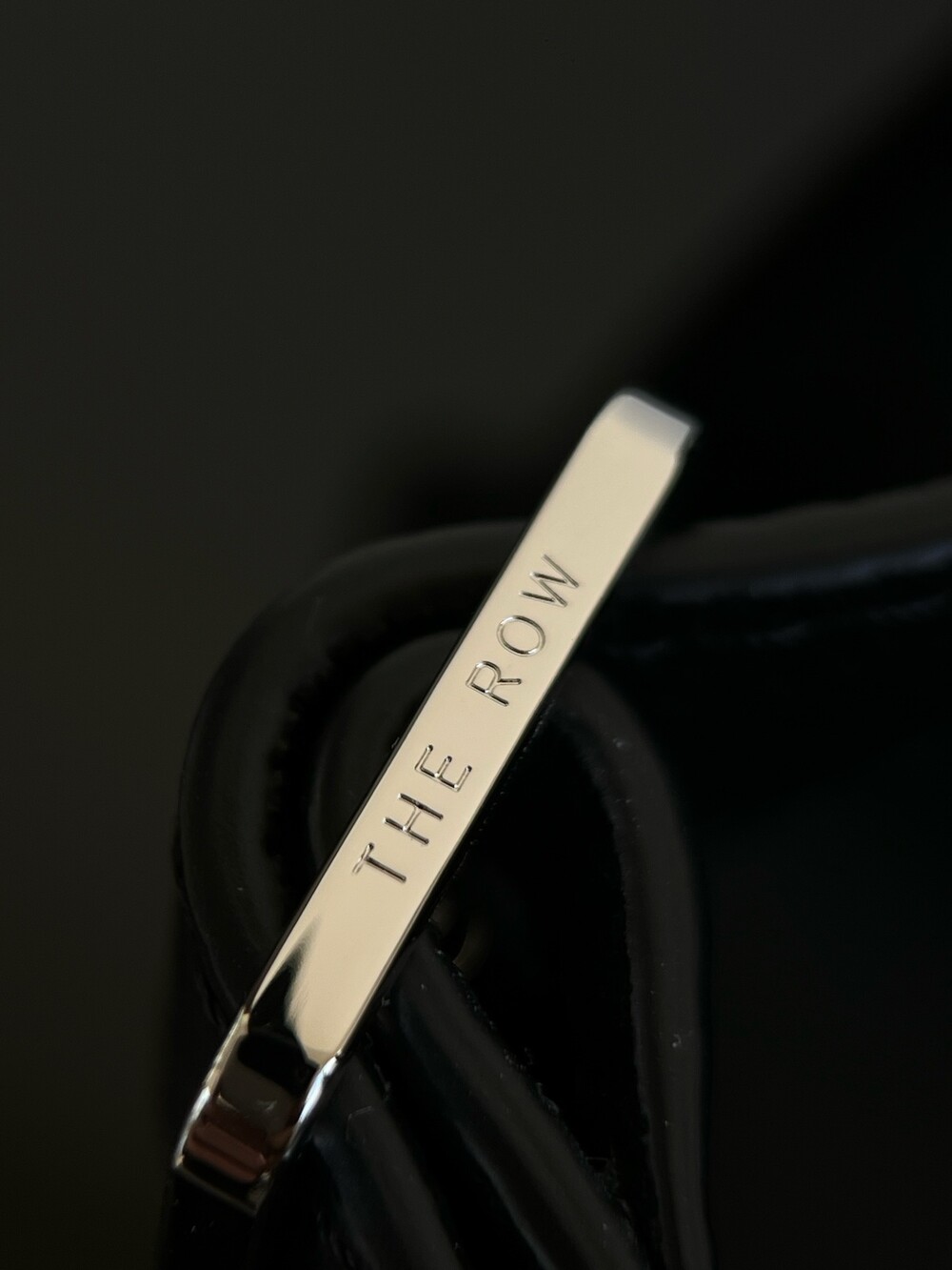 매트 그레인 카프스킨 가죽 소재의 소프트 스트럭처 탑 핸들 백. 벨트가 장식된 사이드 거싯 패널 및 내부 토글 클로저.