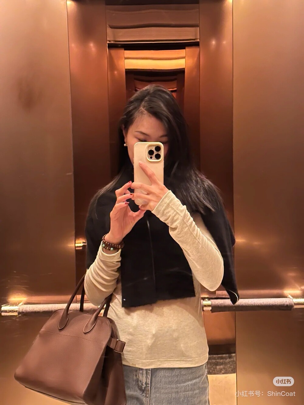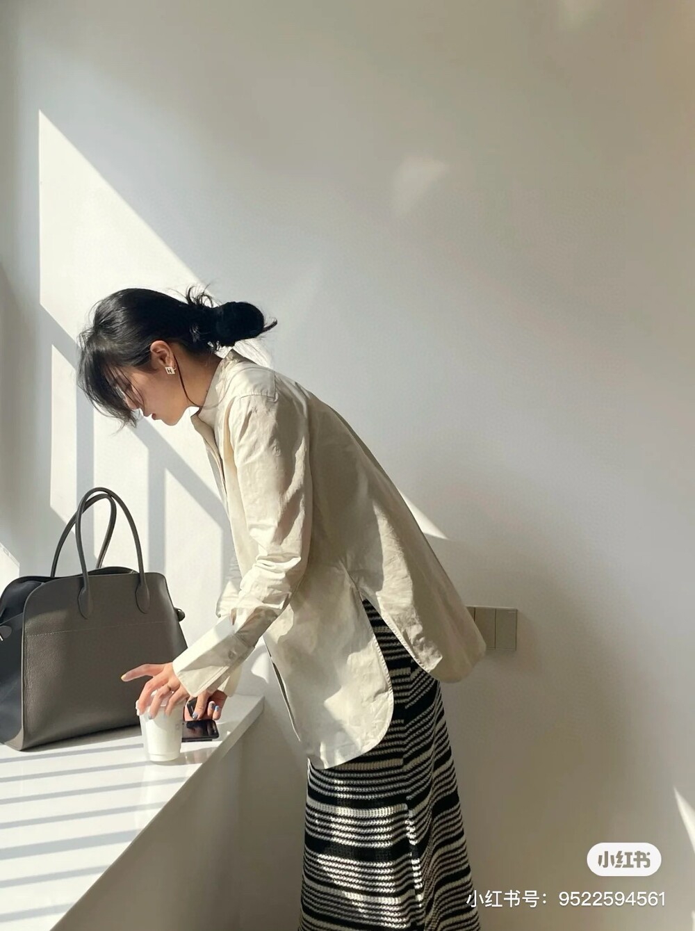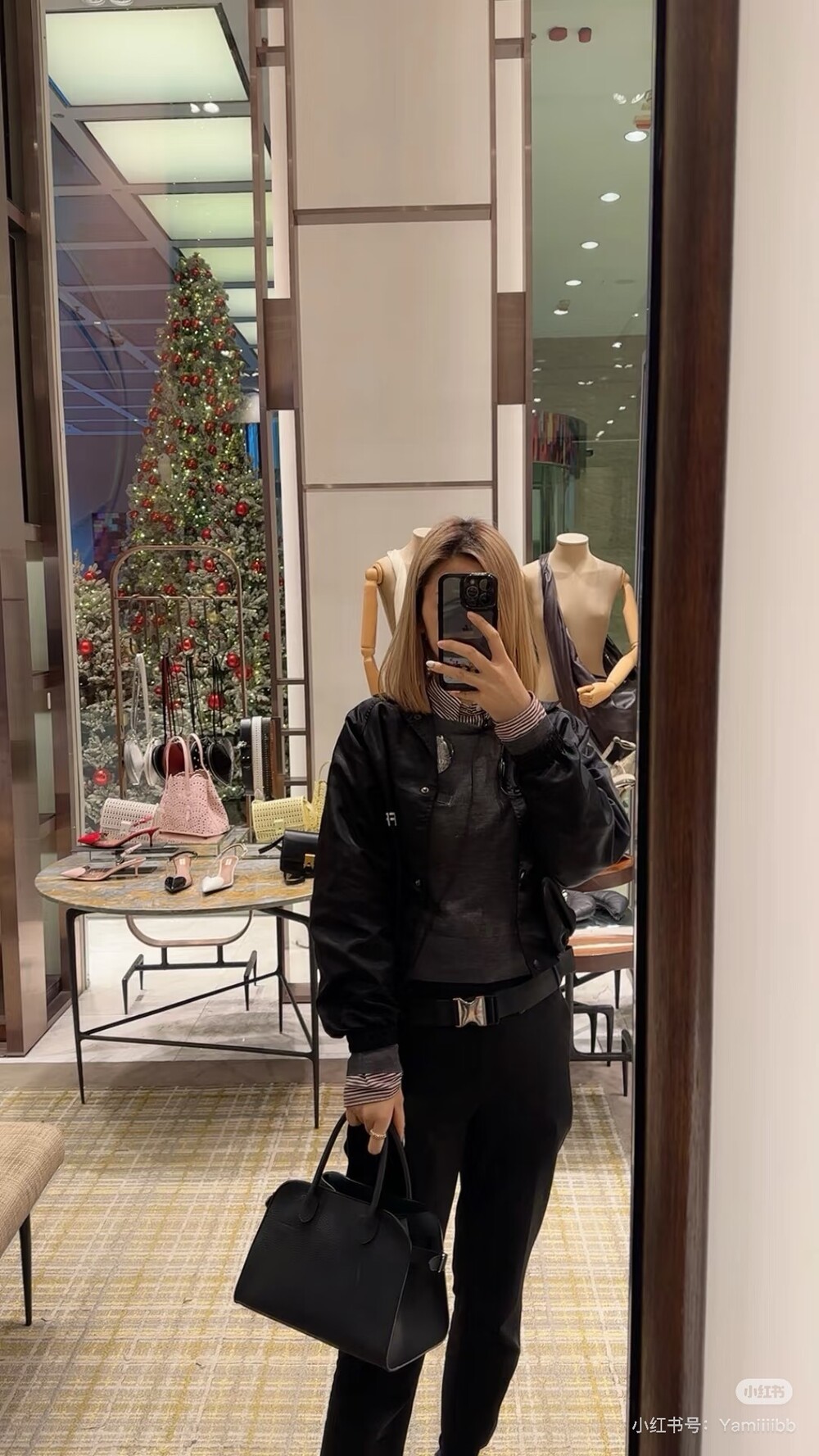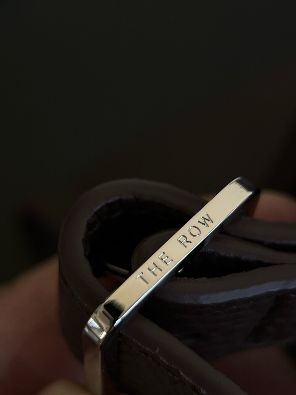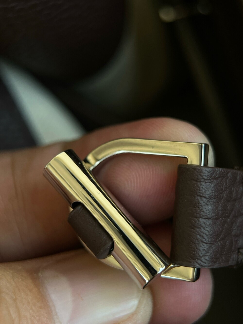 매트 그레인 카프스킨 가죽 소재의 소프트 스트럭처 탑 핸들 백. 벨트가 장식된 사이드 거싯 패널 및 내부 토글 클로저.