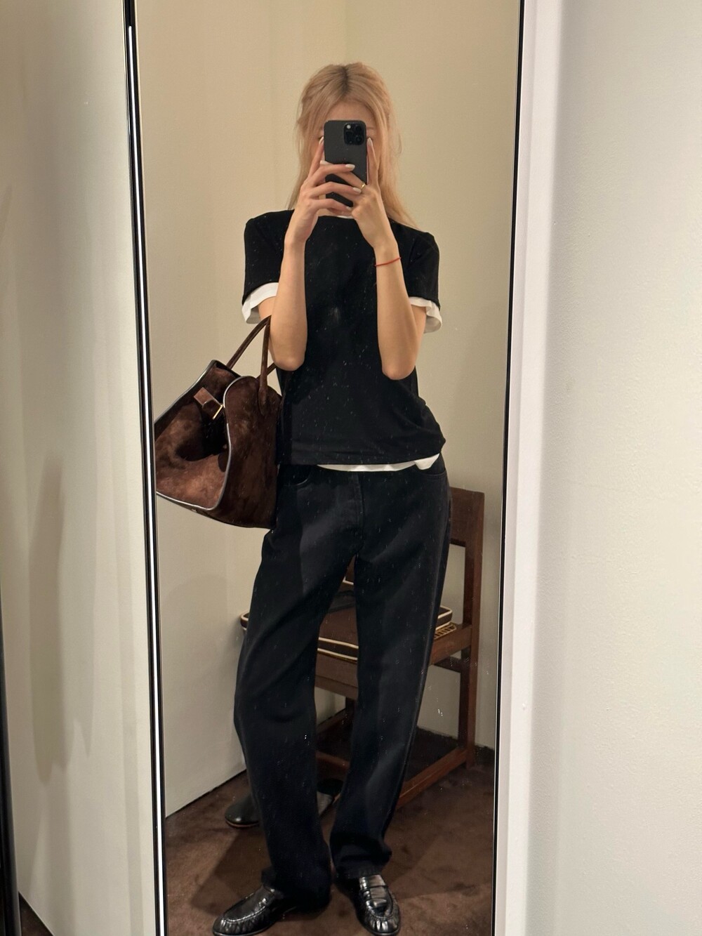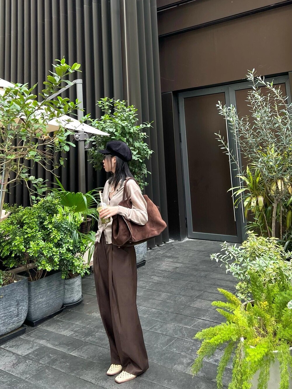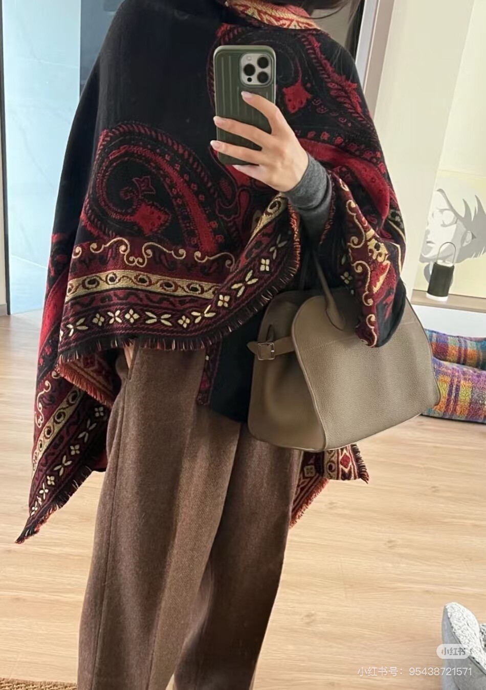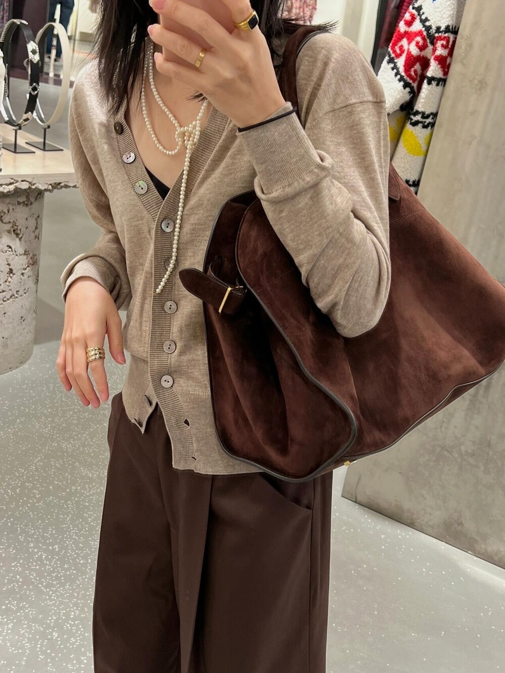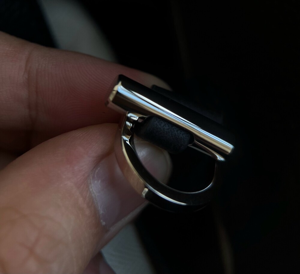 매트 그레인 카프스킨 가죽 소재의 소프트 스트럭처 탑 핸들 백. 벨트가 장식된 사이드 거싯 패널 및 내부 토글 클로저.