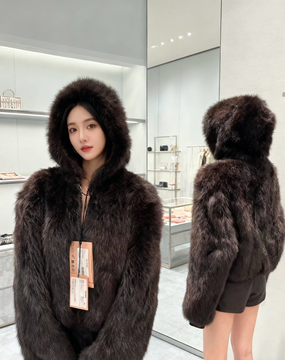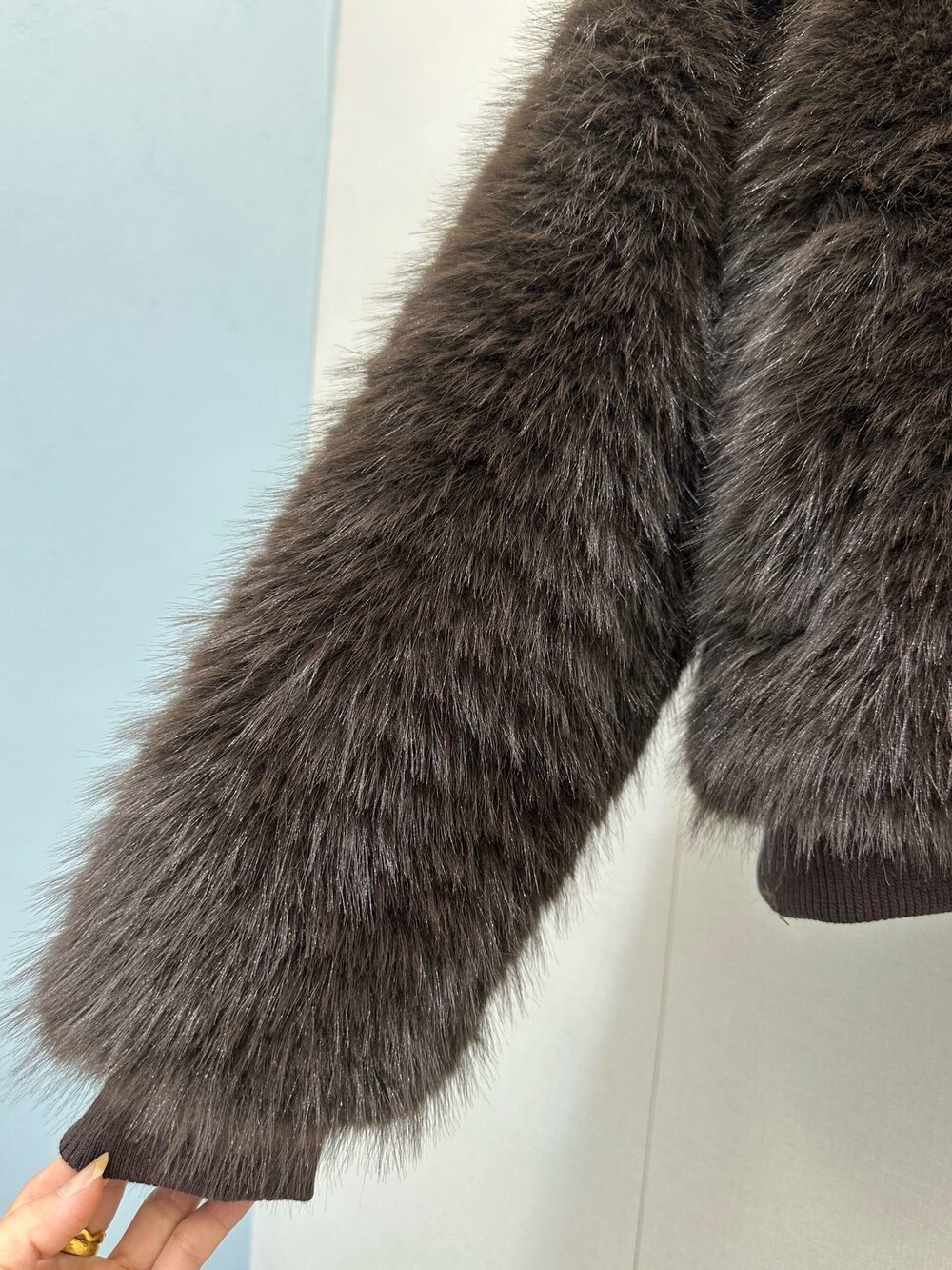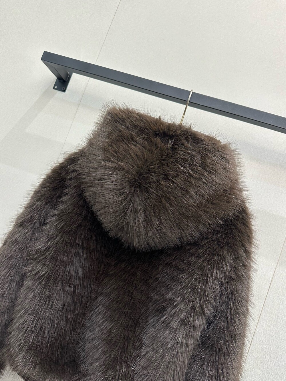이 고급스러운 시어링 재킷은 약간 짧은 실루엣으로 긴 털이 볼륨을 더하고 세련미를 강조합니다. 포근하고 부드러운 스타일로 클래식한 여성복을 현대적으로 재해석했습니다.