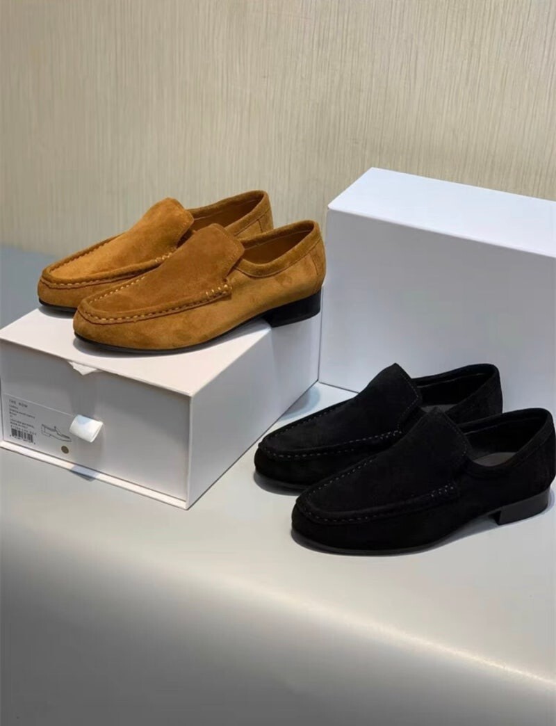 심플한 디자인이 돋보이는 부드러운 스웨이드 소재의 클래식 로퍼. 핸드 스티칭 디테일 및 가죽 밑창.