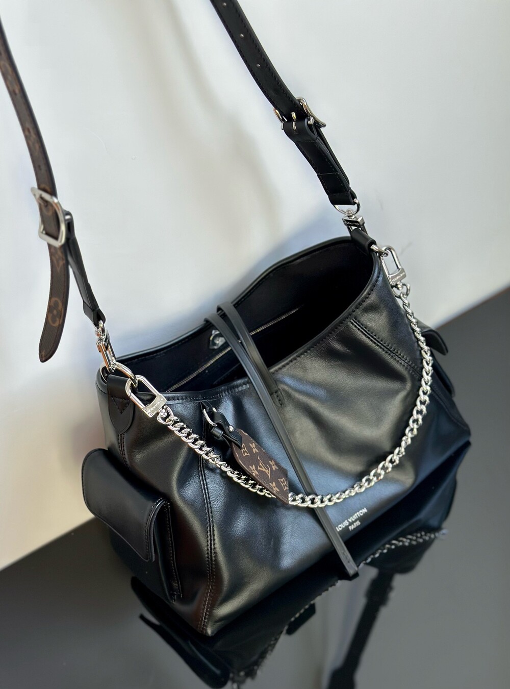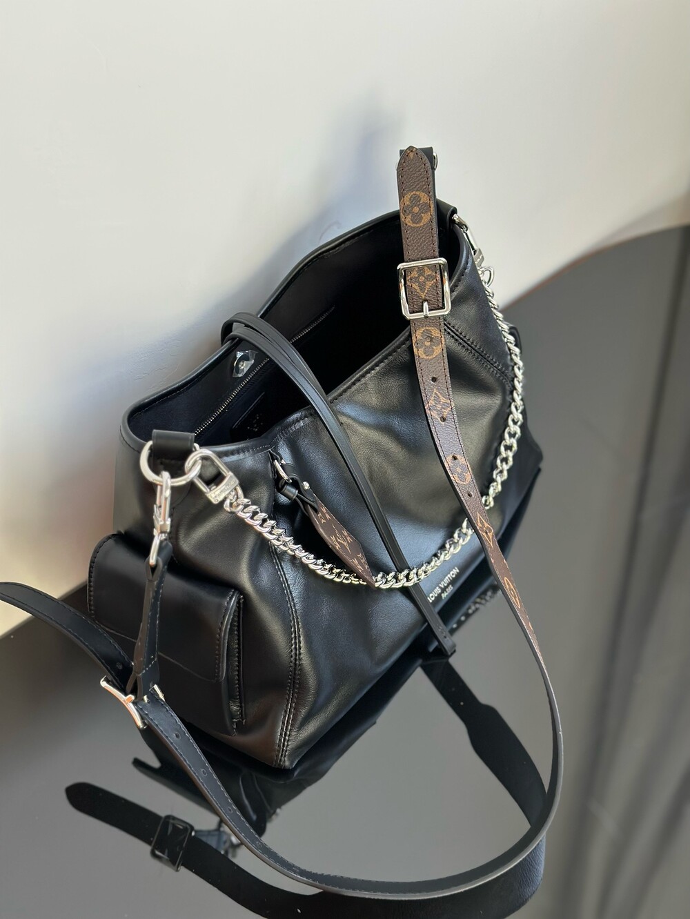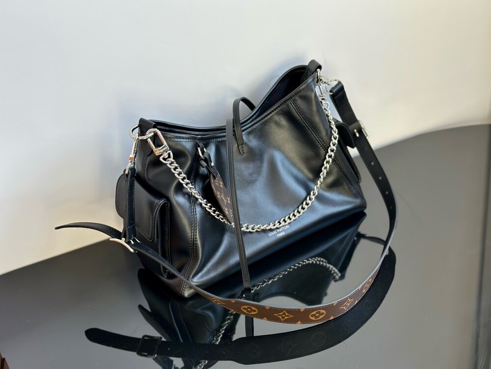 다양한 방식으로 연출할 수 있는 세련되고 상징적인 캐리올 바이브(CarryAll Vibe).데일리 룩과 이브닝 룩에 꾸미지 않은 듯 자연스러운 매력을 선사하는 넉넉한 실루엣의 아이템. 모노그램 플라워 디테일을 더한 실버 색상 체인과 조화를 이루는 클래식한 램스킨 소재. 대조적인 모노그램 캔버스 소재의 네임 택과 더불어 카드 및 작은 필수품을 손쉽게 넣고 꺼낼 수 있는 지퍼형 플랫 포켓을 내부에 구성한 활용도 높은 디자인.