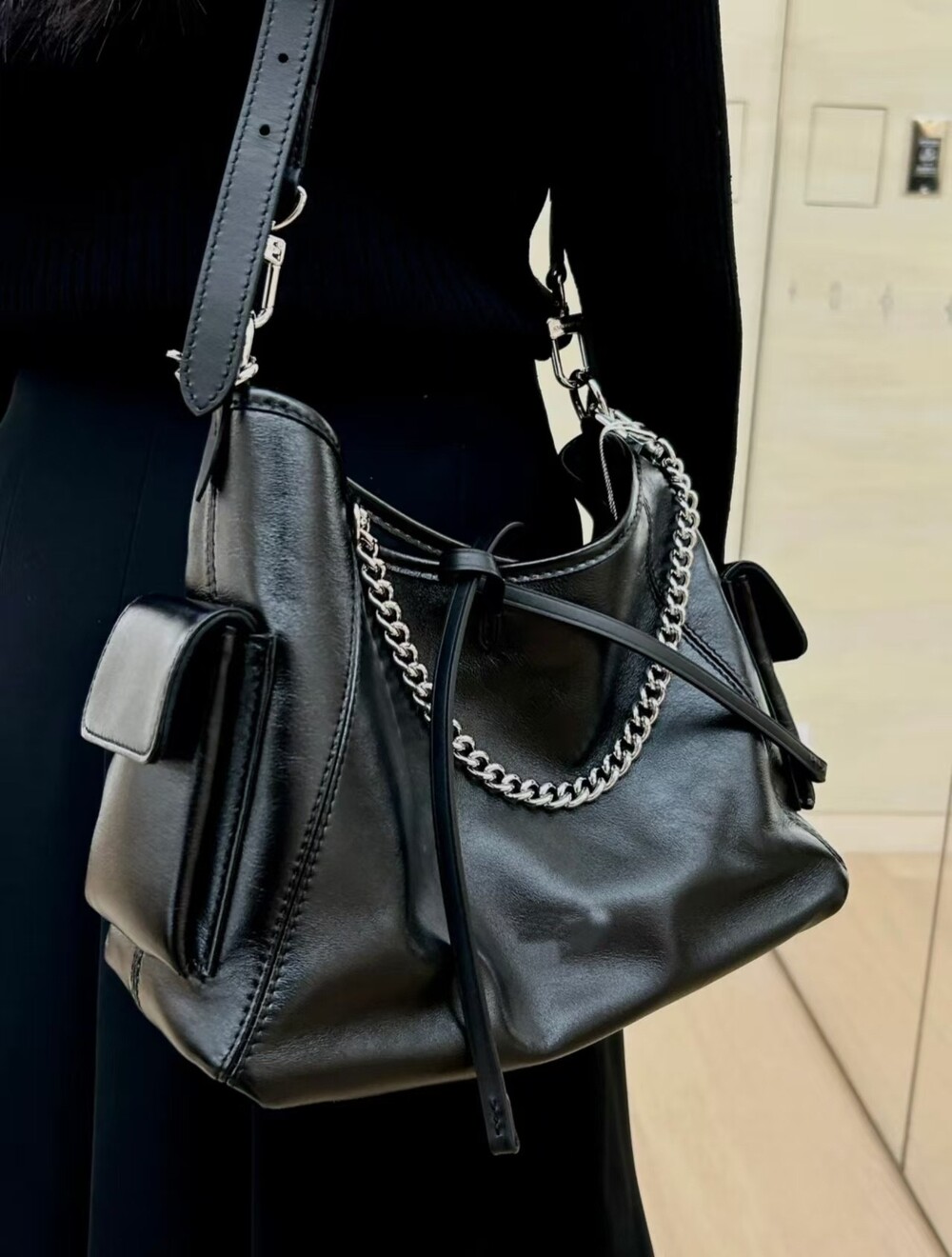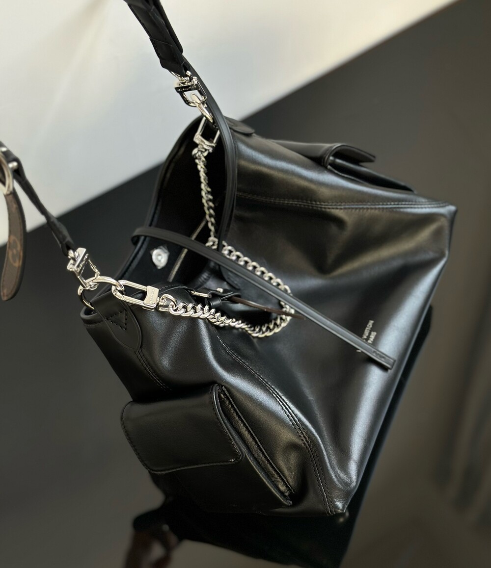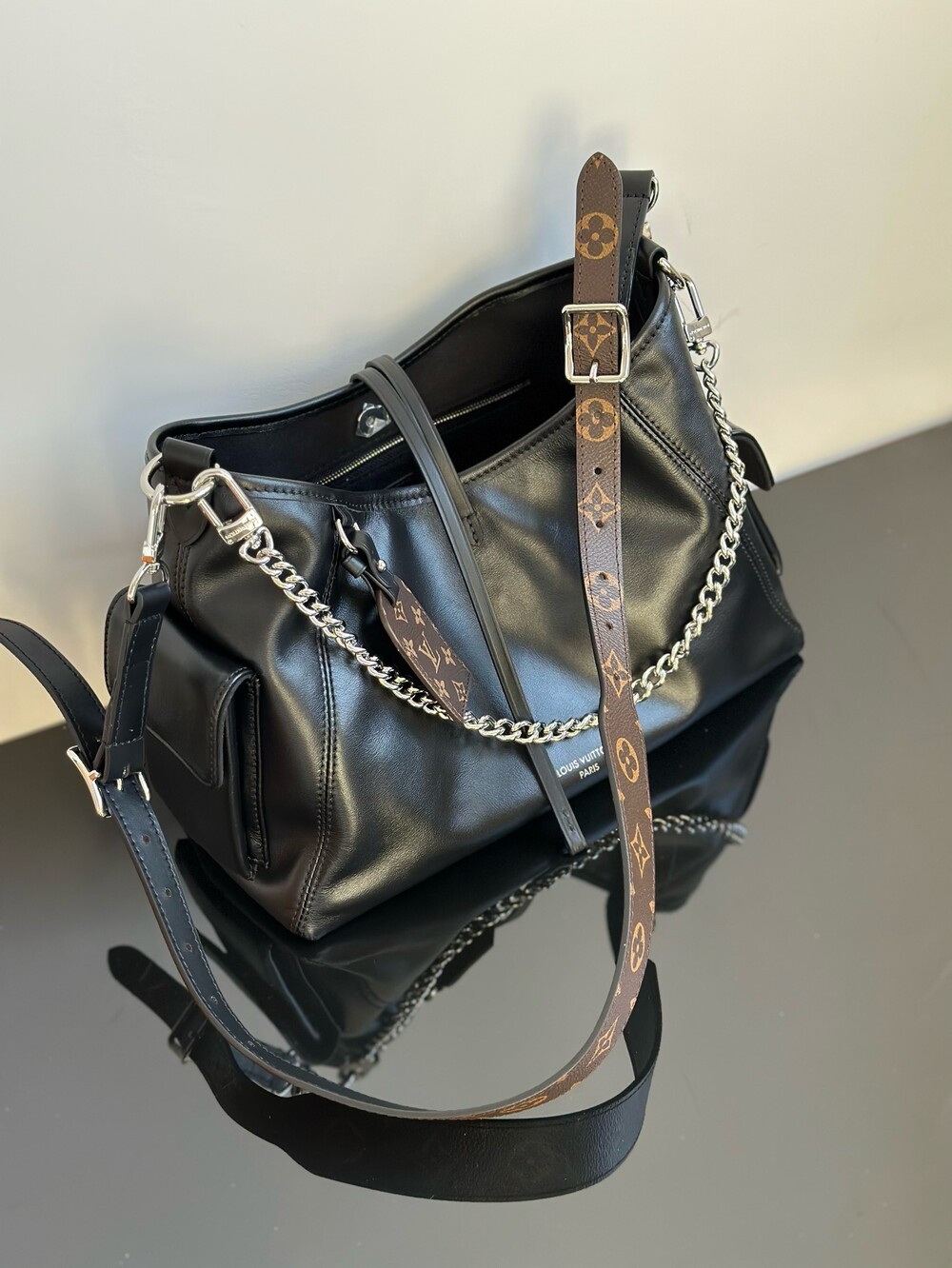 다양한 방식으로 연출할 수 있는 세련되고 상징적인 캐리올 바이브(CarryAll Vibe).데일리 룩과 이브닝 룩에 꾸미지 않은 듯 자연스러운 매력을 선사하는 넉넉한 실루엣의 아이템. 모노그램 플라워 디테일을 더한 실버 색상 체인과 조화를 이루는 클래식한 램스킨 소재. 대조적인 모노그램 캔버스 소재의 네임 택과 더불어 카드 및 작은 필수품을 손쉽게 넣고 꺼낼 수 있는 지퍼형 플랫 포켓을 내부에 구성한 활용도 높은 디자인.