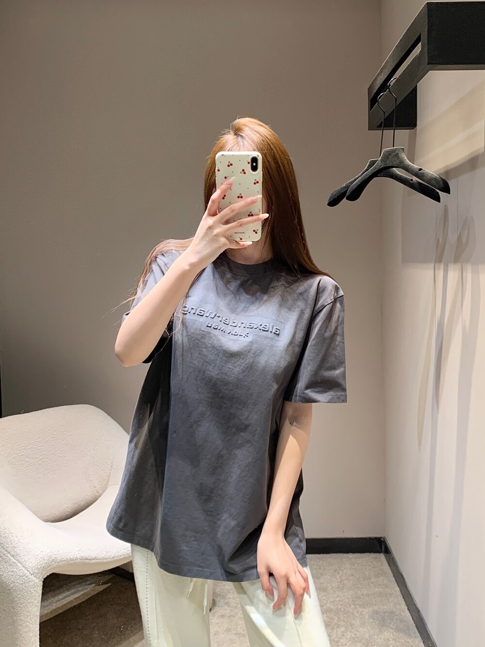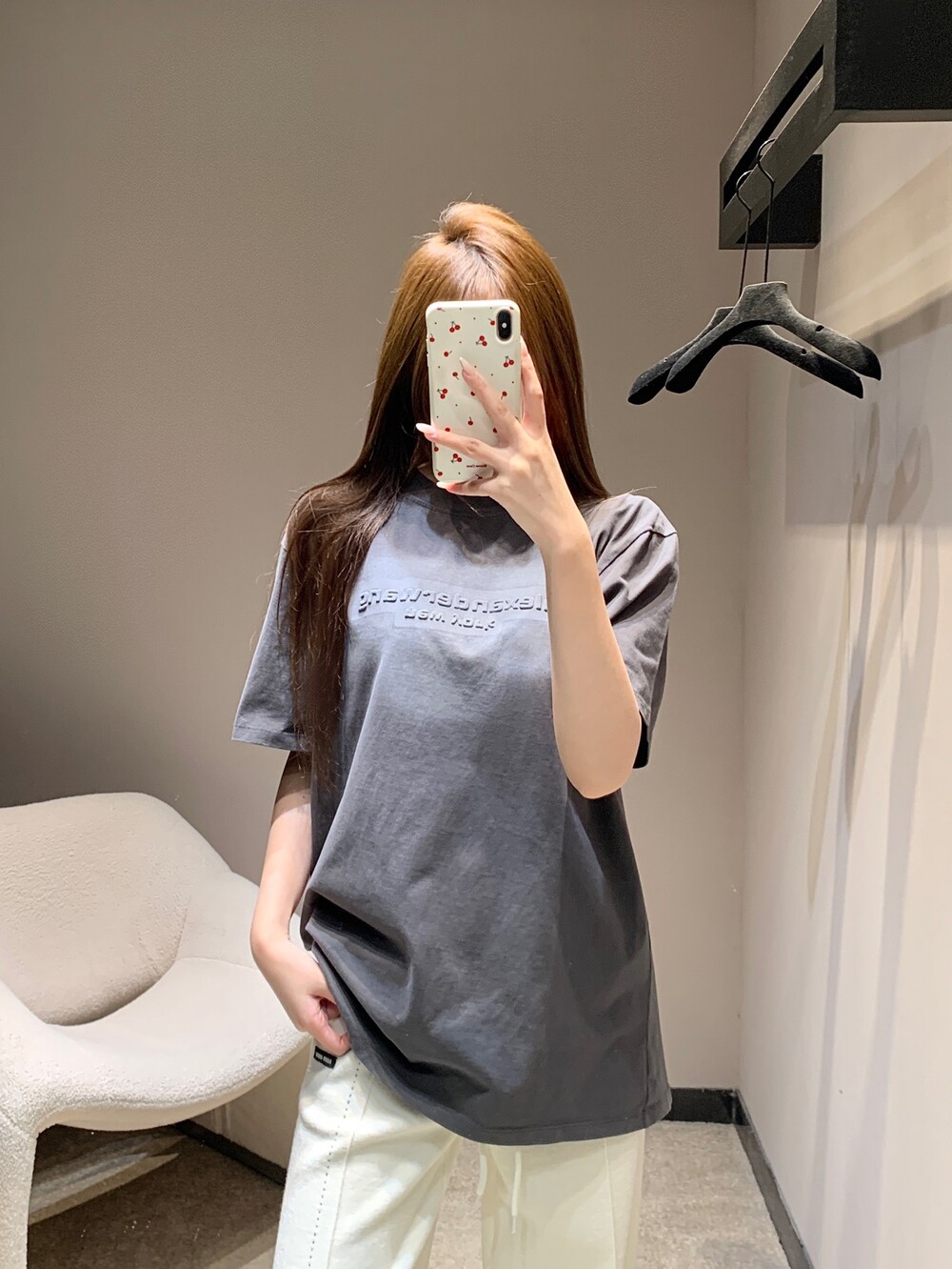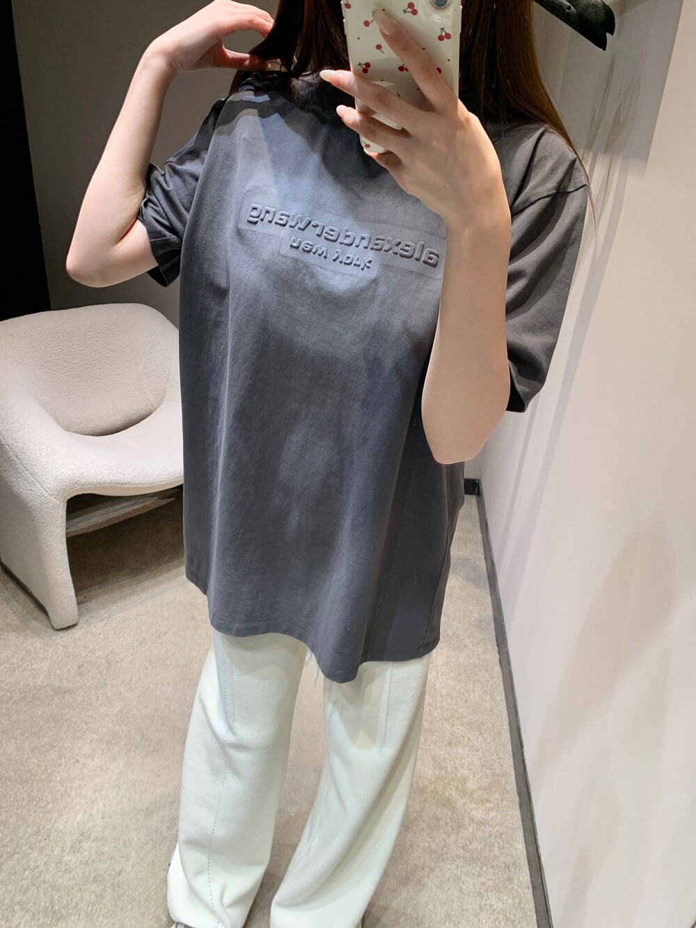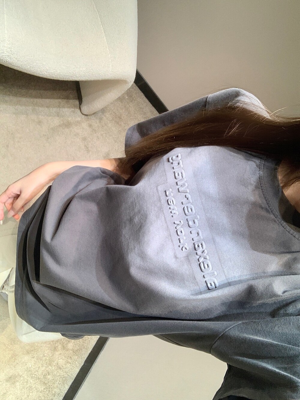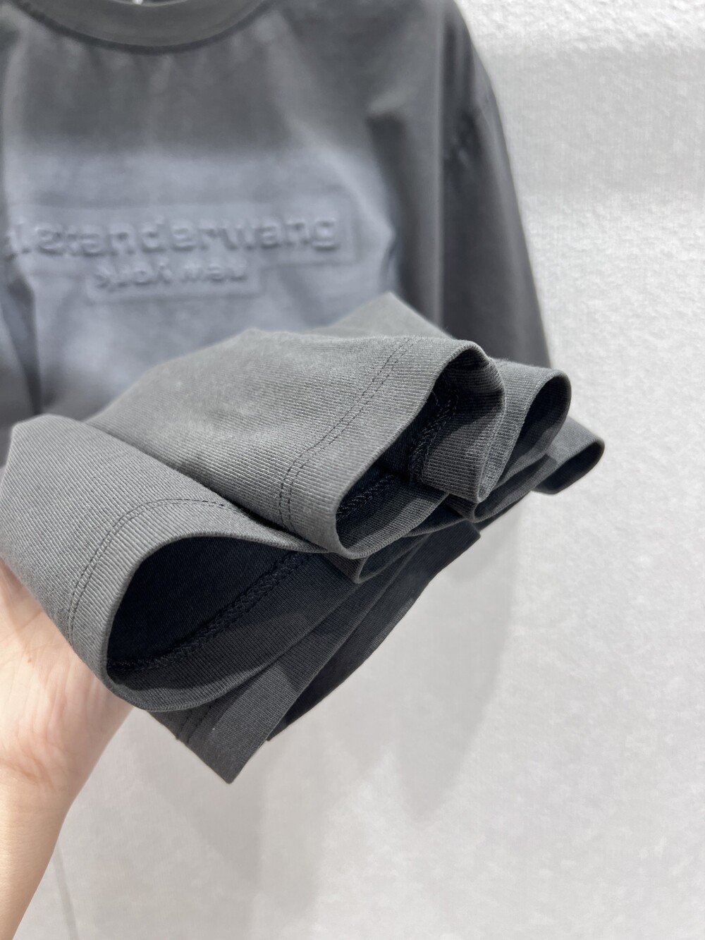 알렉산더왕 남녀공용 반팔 엠보싱 헤일로 티셔츠 (저지 소재, 오버사이즈)