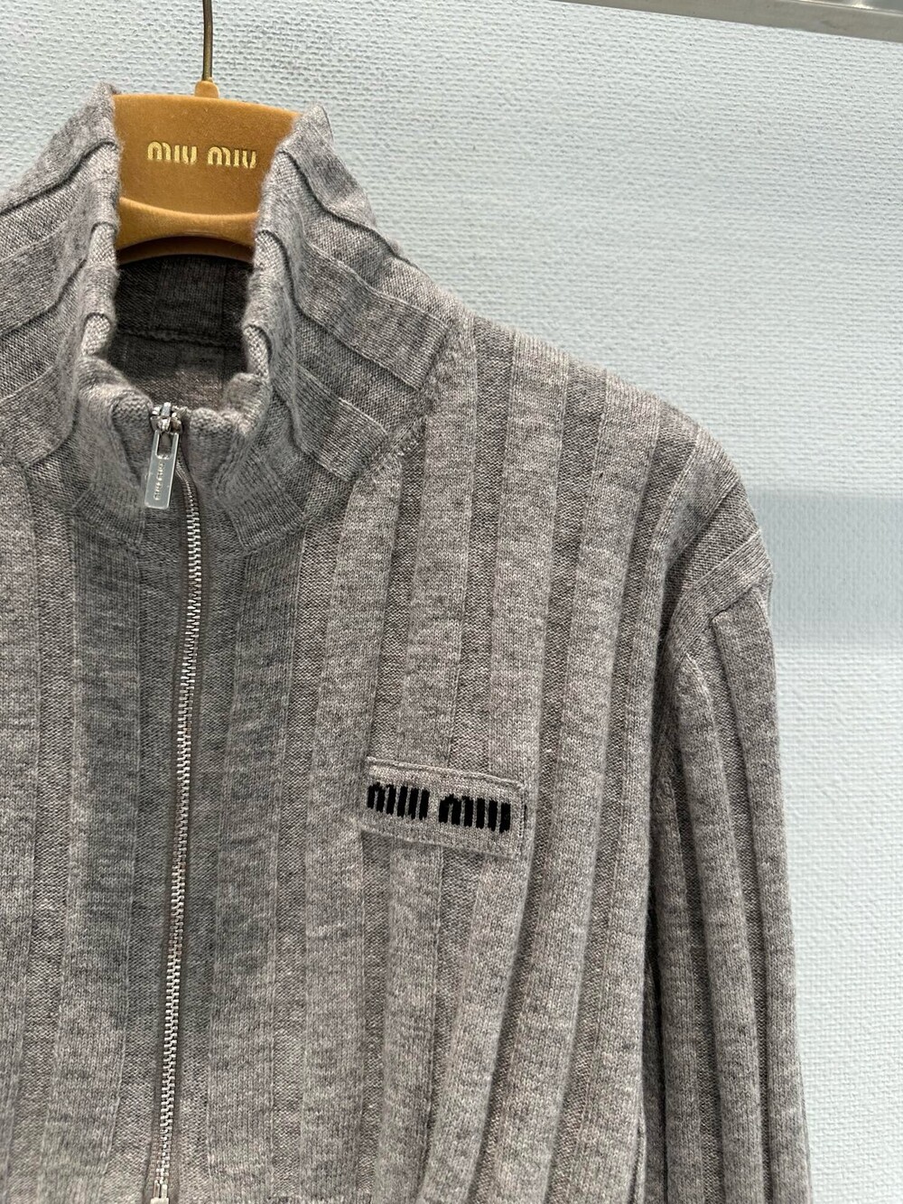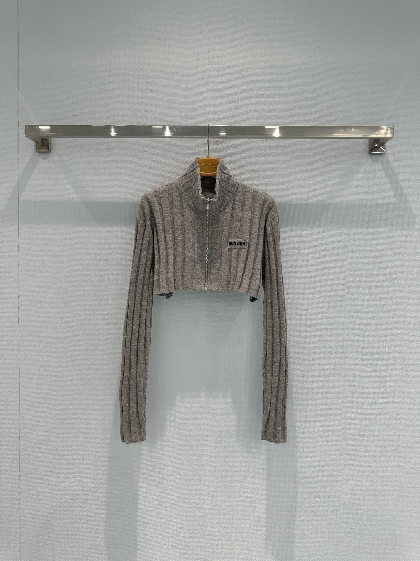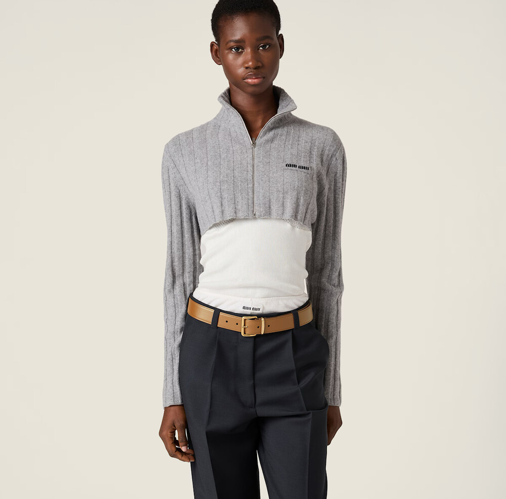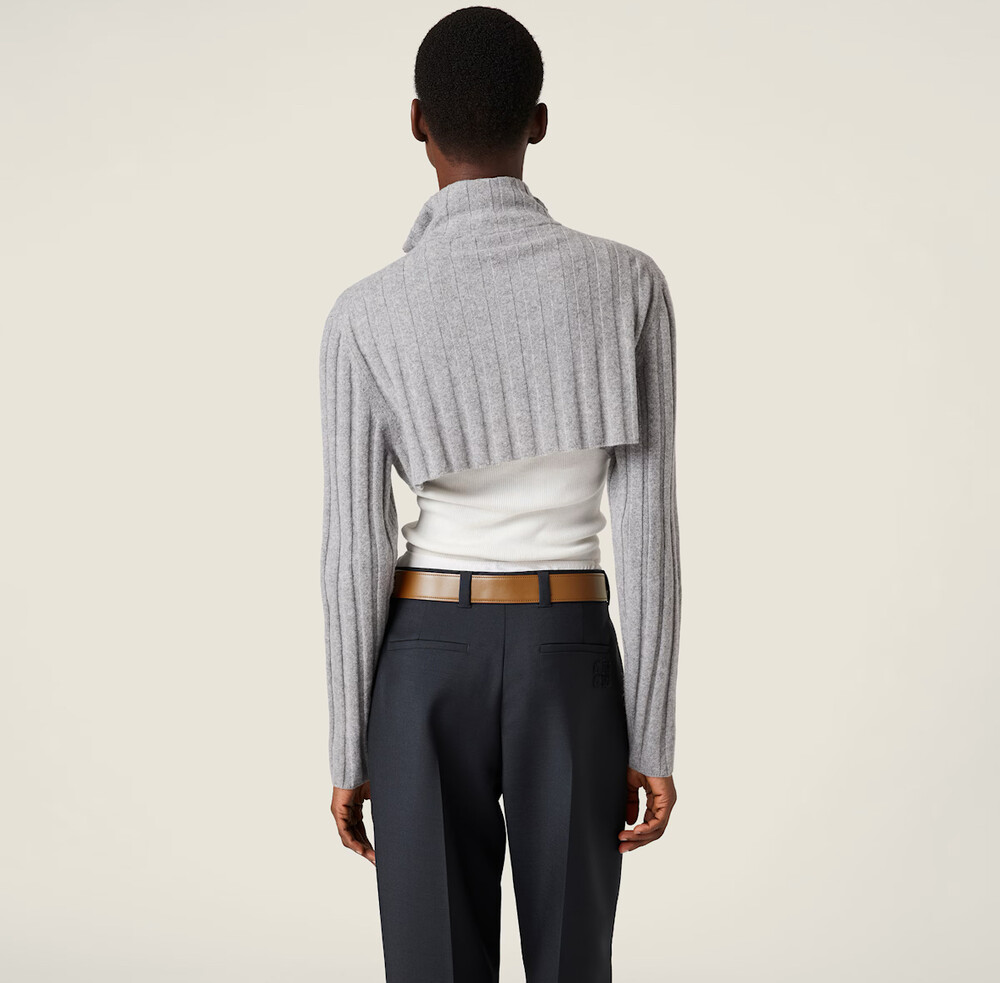 미우미우 아카이브 실루엣을 재해석하여, 부드러운 재생 울과 캐시미어 원사로 제작된 이 크롭 리브드 니트 가디건에 시원하고 미니멀한 본질을 담았습니다. 이 의류는 과거의 코드와 장인 정신의 혁신을 결합합니다.