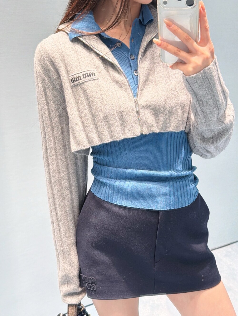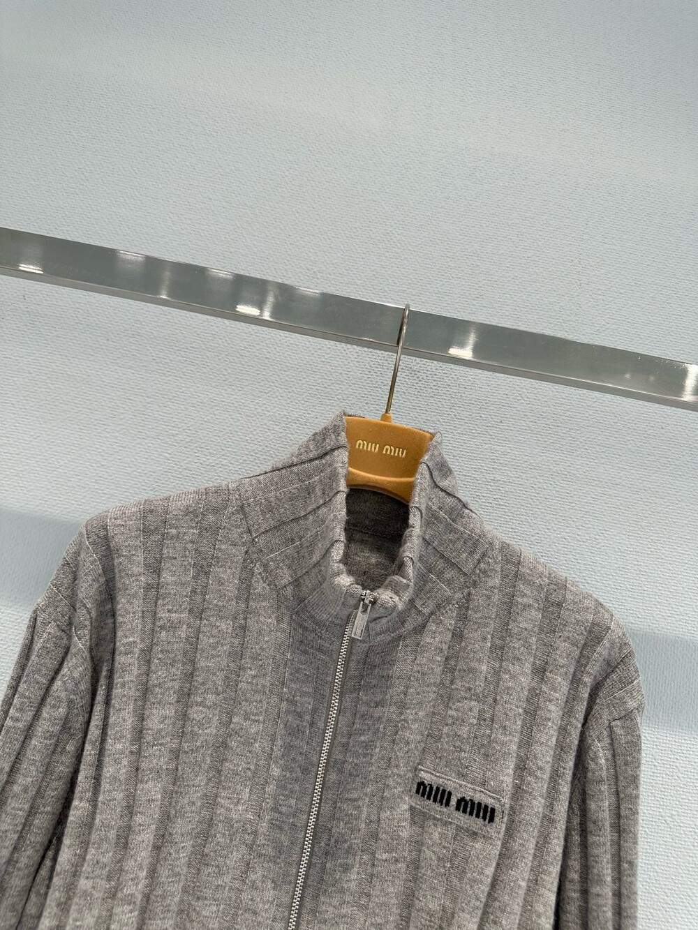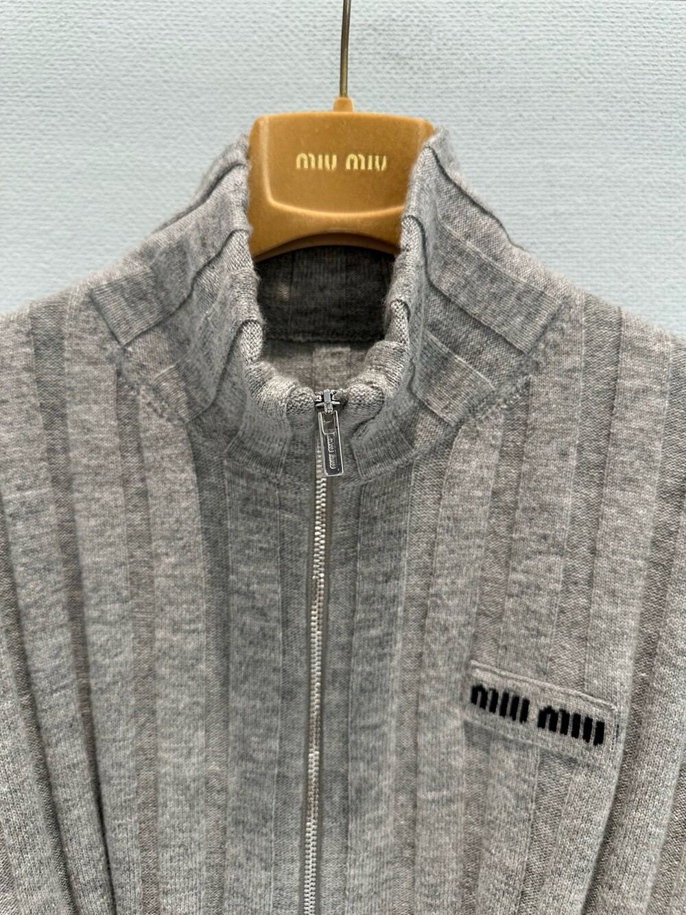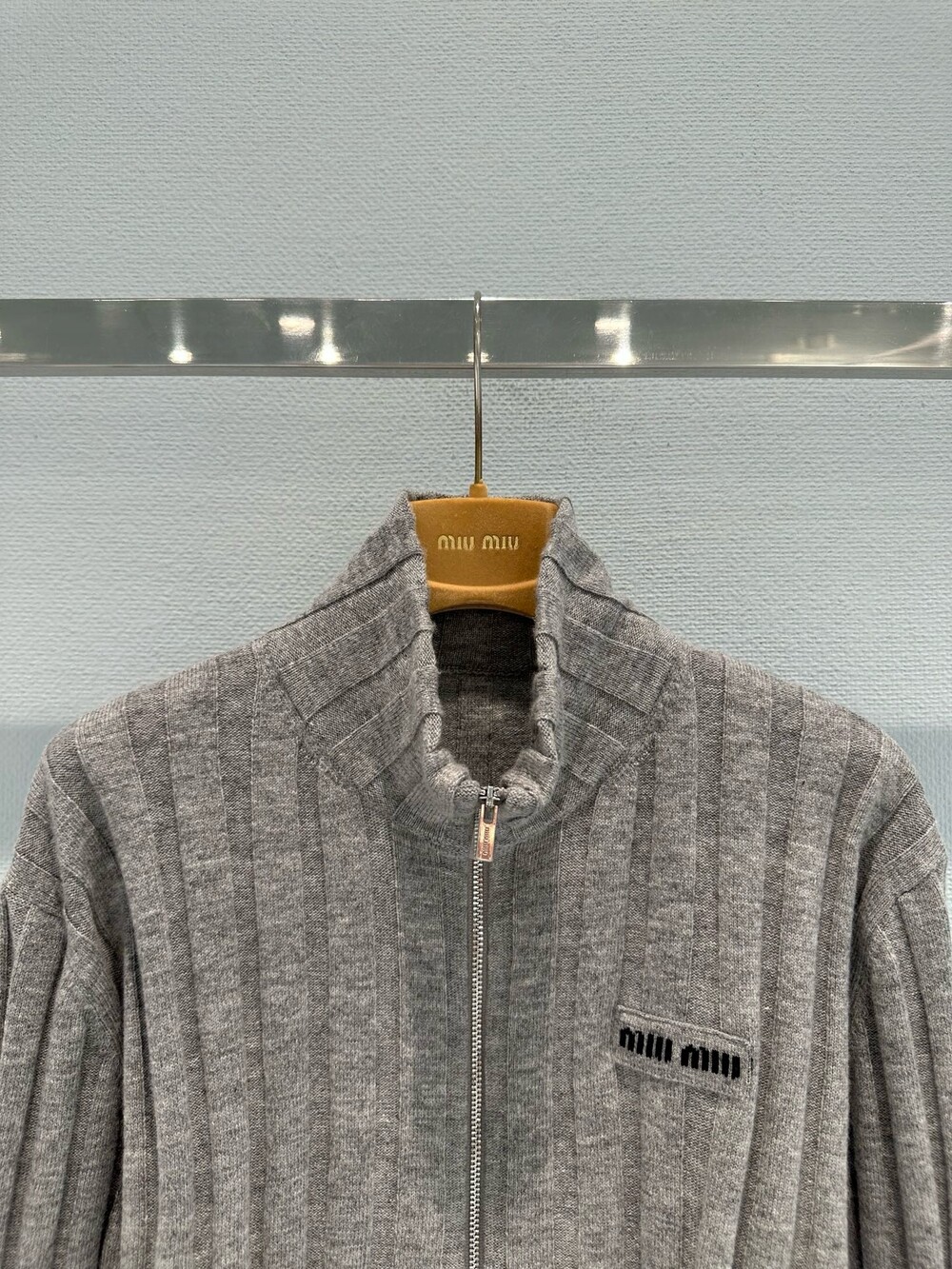 미우미우 아카이브 실루엣을 재해석하여, 부드러운 재생 울과 캐시미어 원사로 제작된 이 크롭 리브드 니트 가디건에 시원하고 미니멀한 본질을 담았습니다. 이 의류는 과거의 코드와 장인 정신의 혁신을 결합합니다.