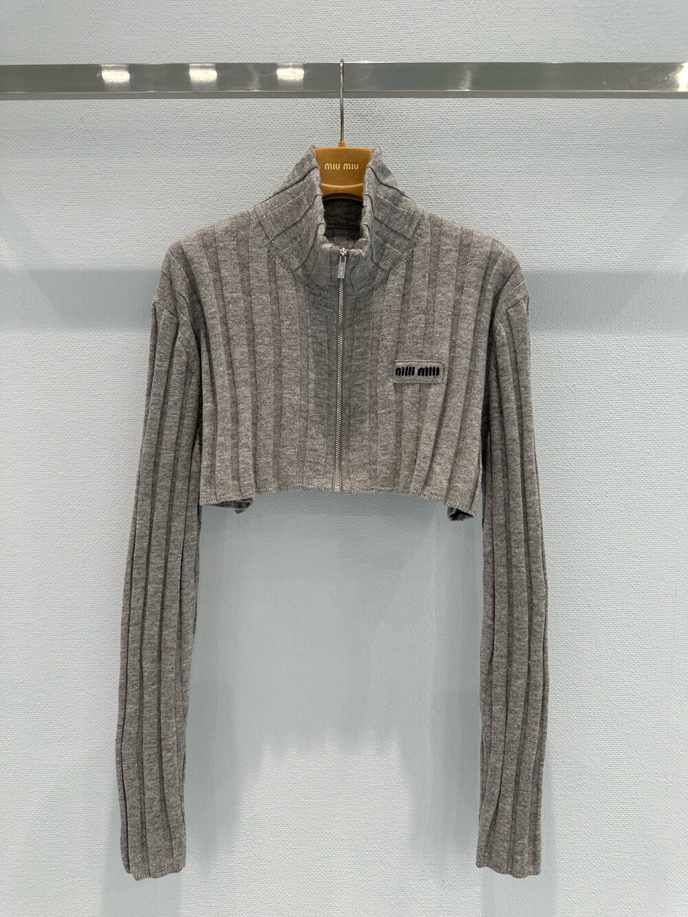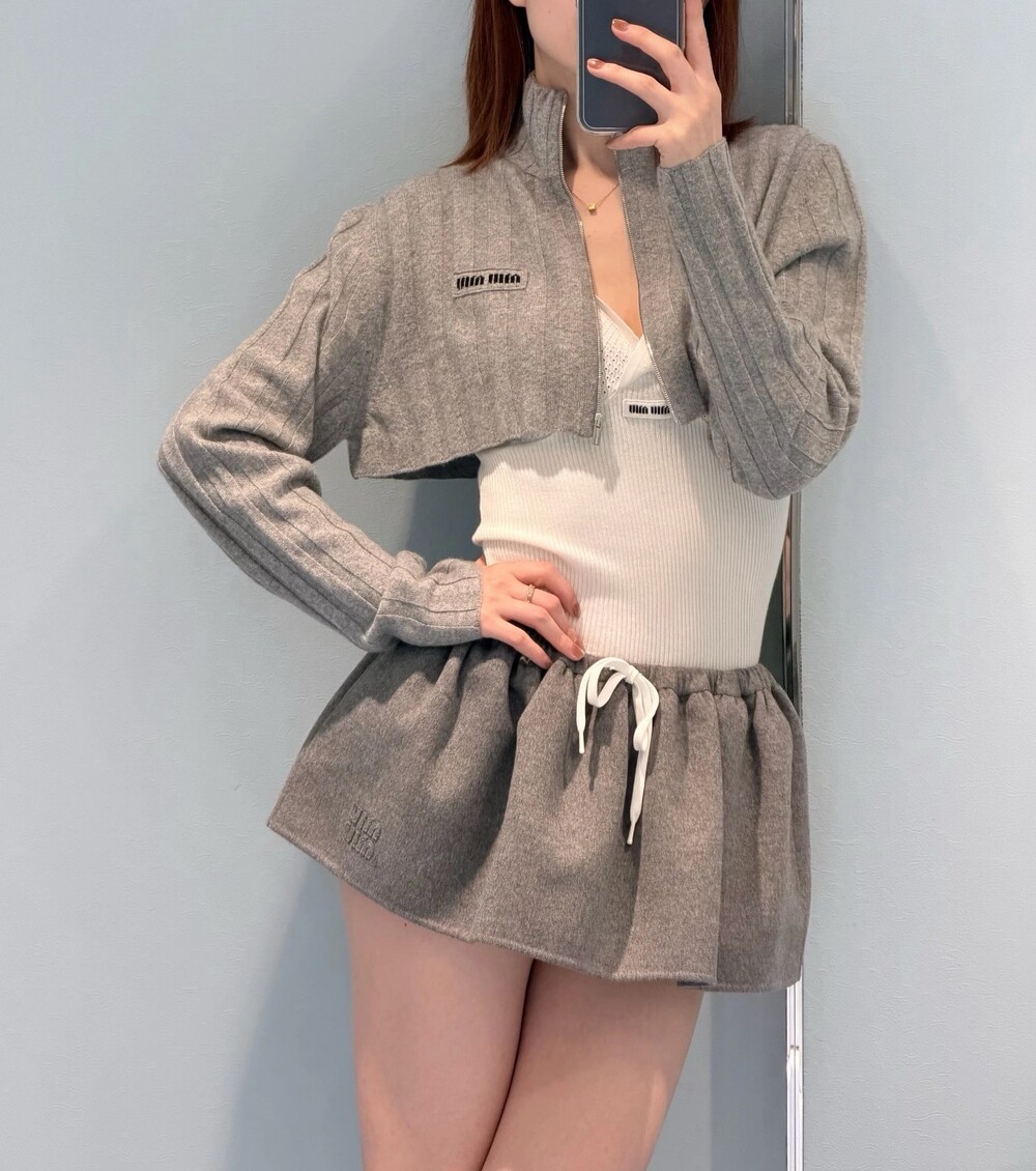 미우미우 울 및 캐시미어 크롭 가디건