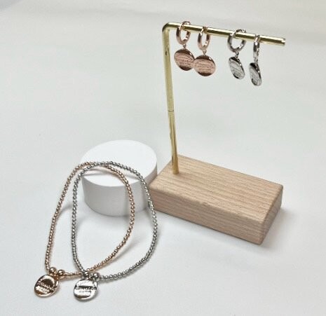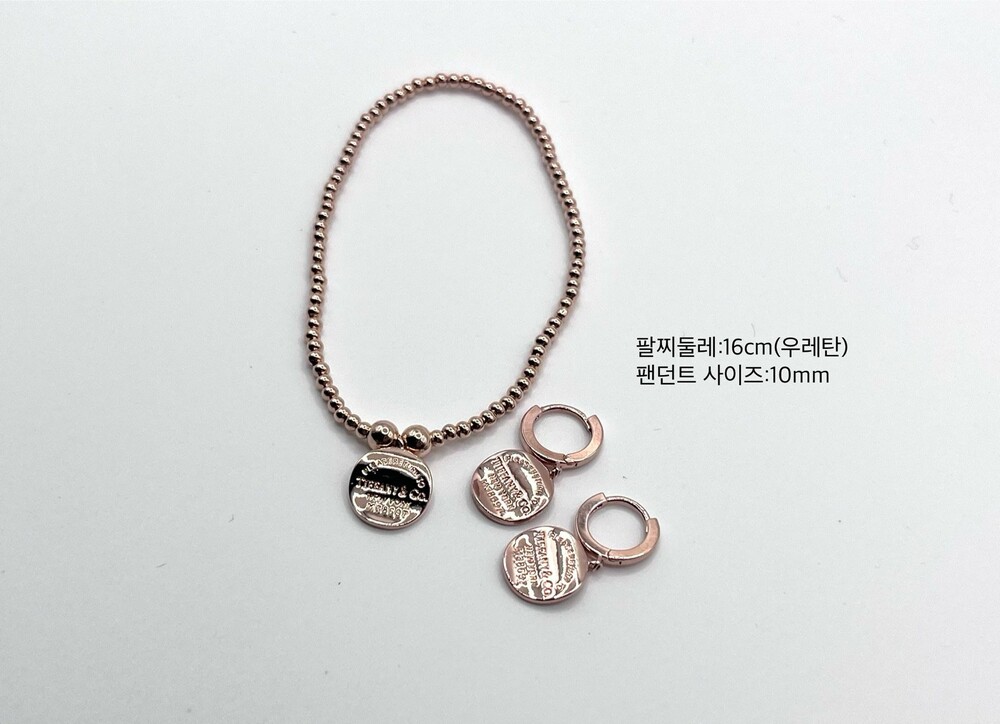 하트 태그 실버 비드 브레이슬릿과 후프 이어링