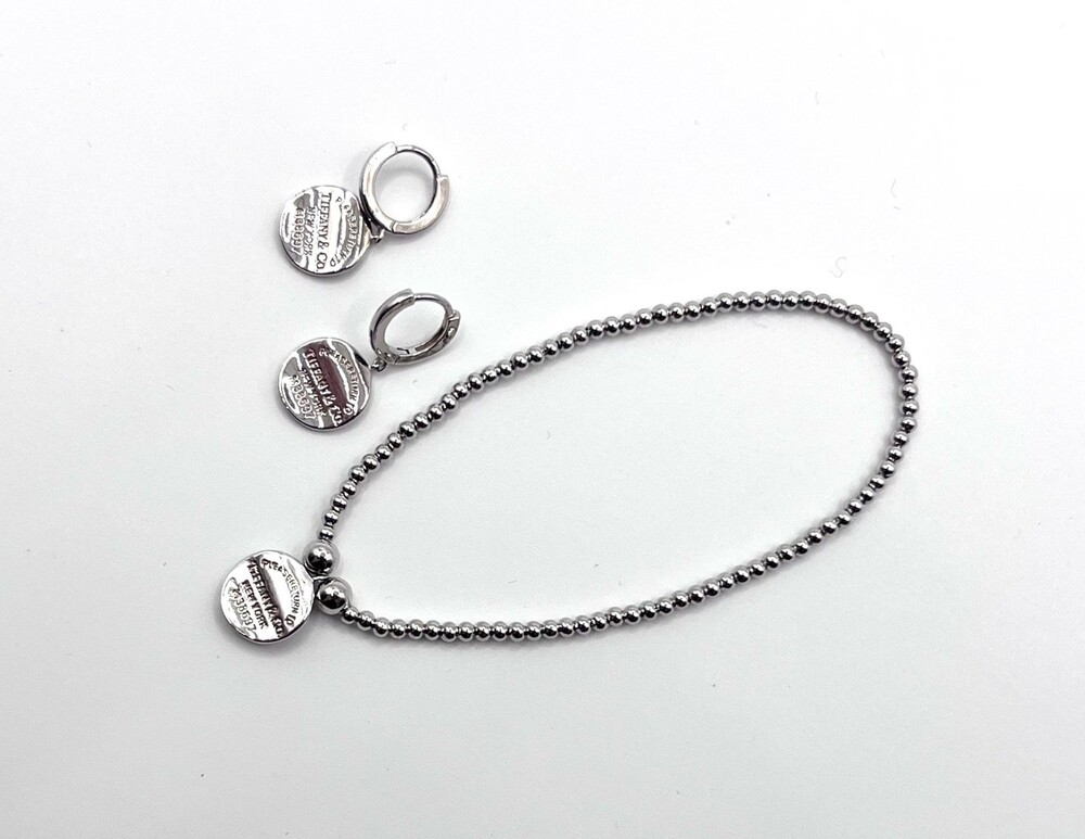 티파니앤코 리턴 투 티파니 하트 태그 실버 비드 브레이슬릿과 후프 이어링