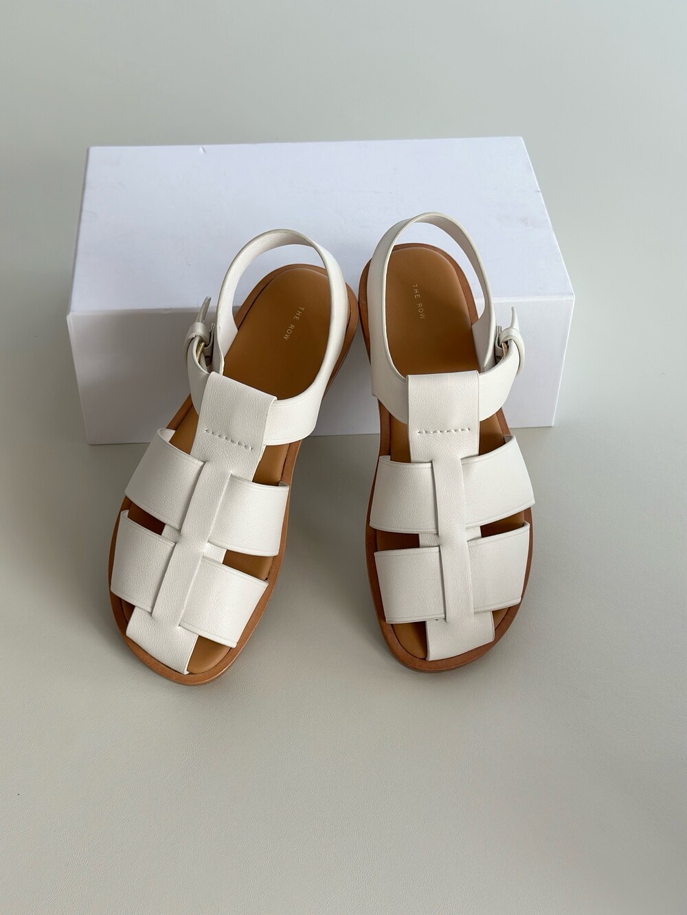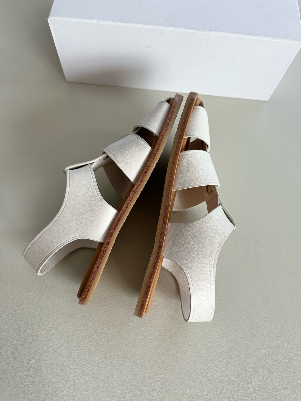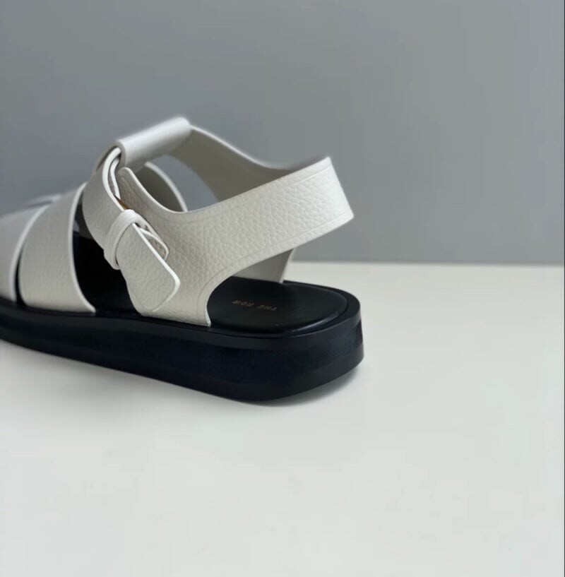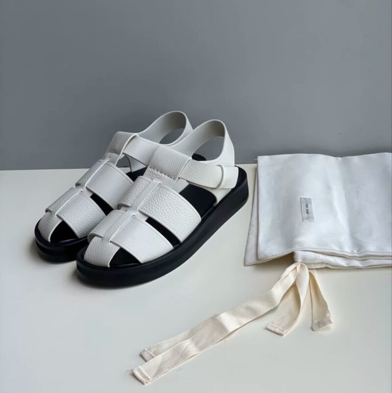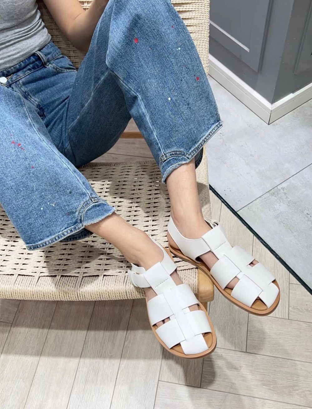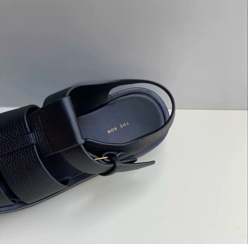 그레인 카프스킨 가죽 소재의 피셔맨 스타일 샌들. 심리스 스트랩 디자인 및