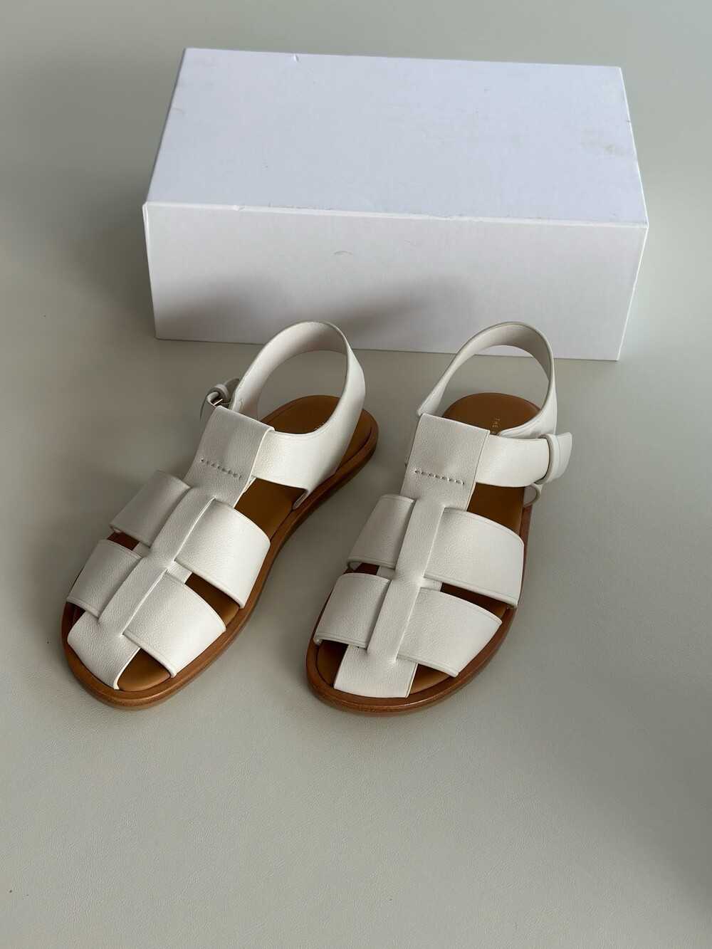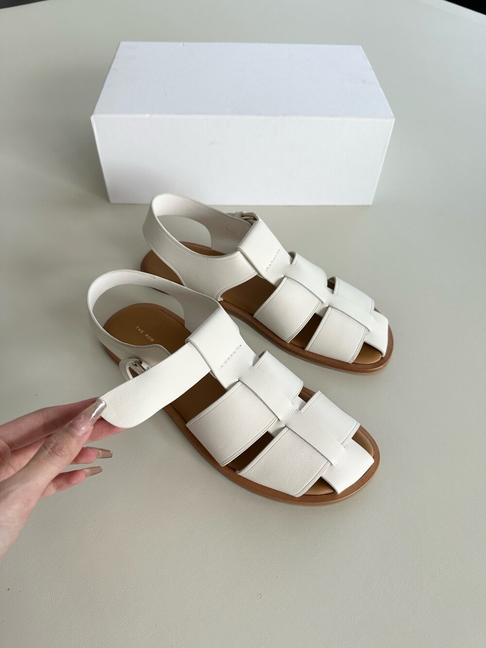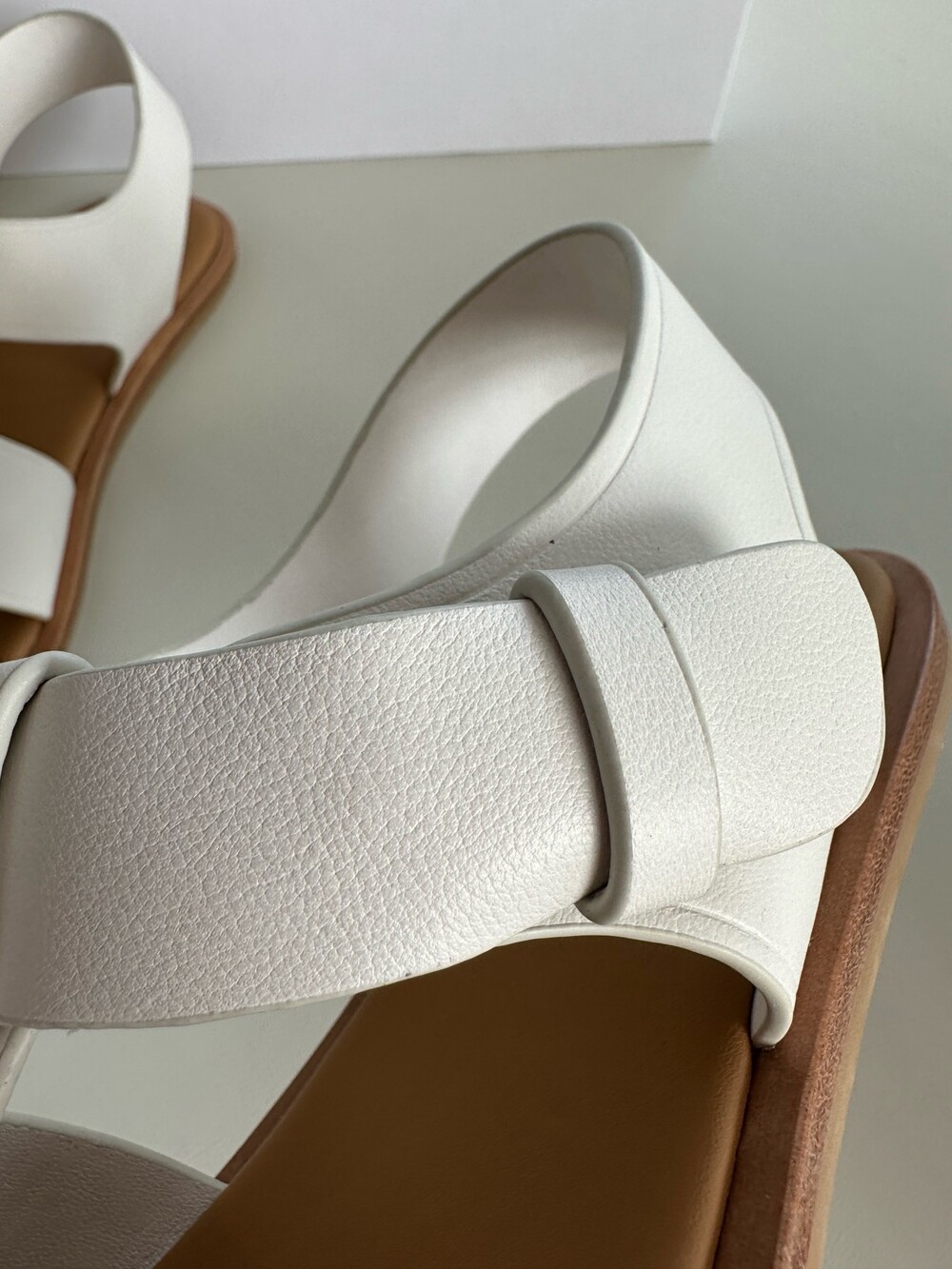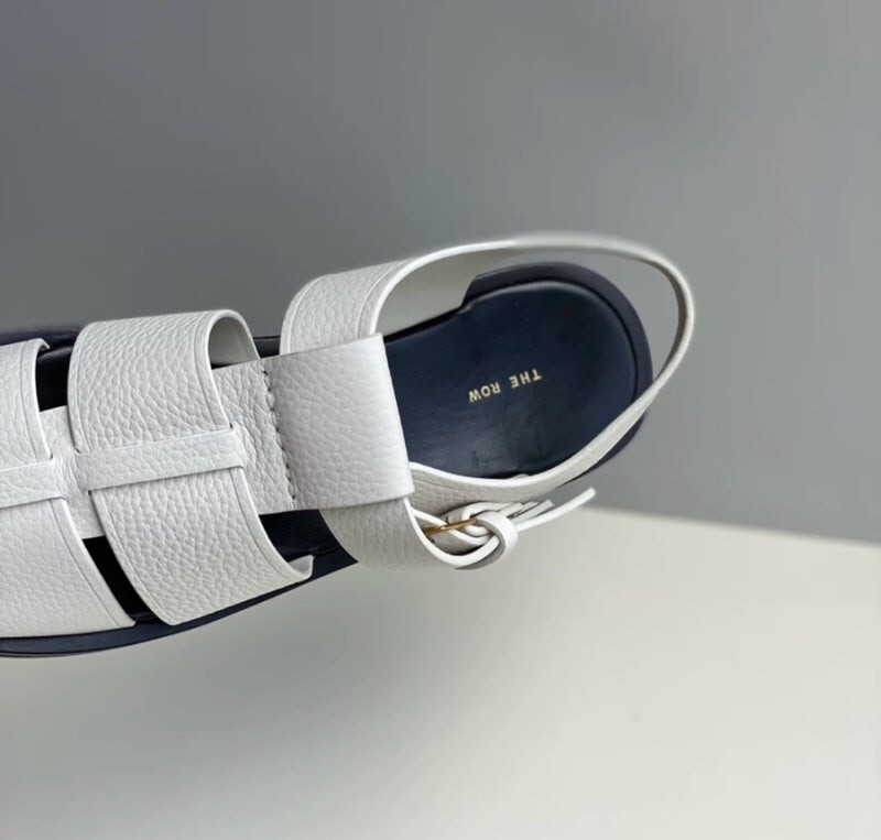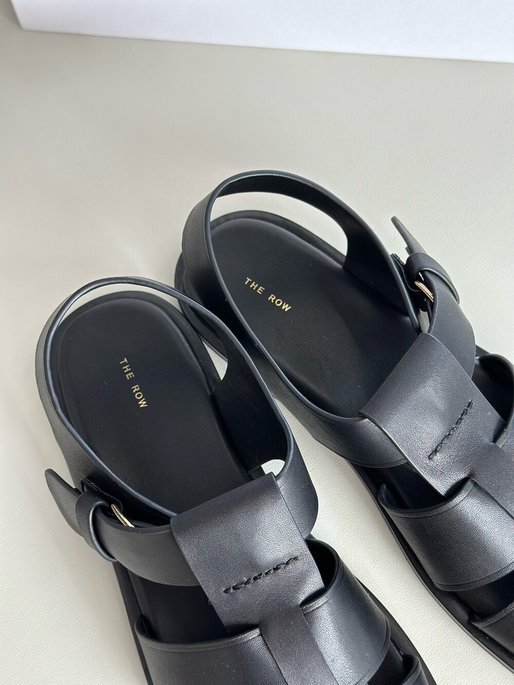 그레인 카프스킨 가죽 소재의 피셔맨 스타일 샌들. 심리스 스트랩 디자인 및