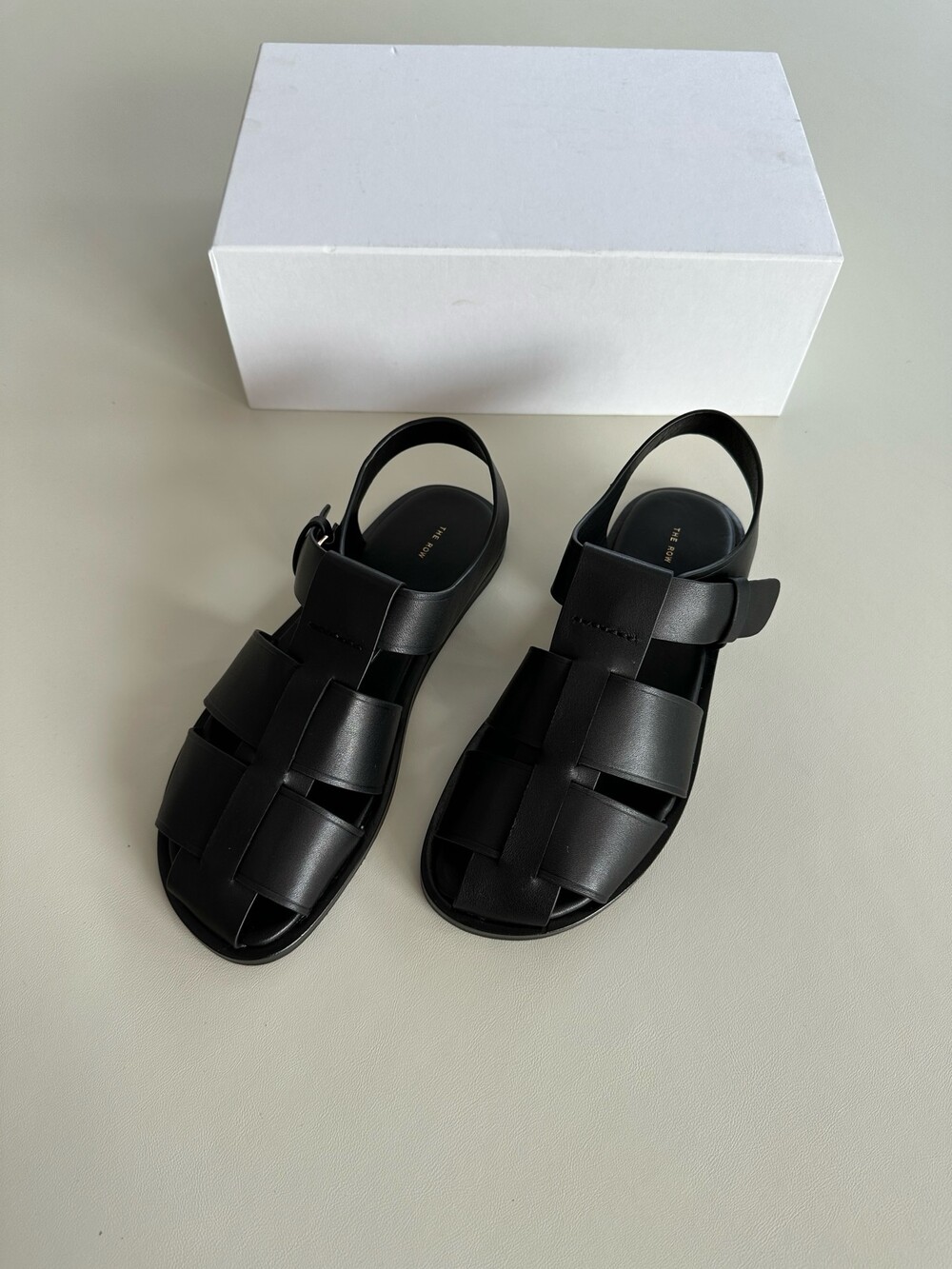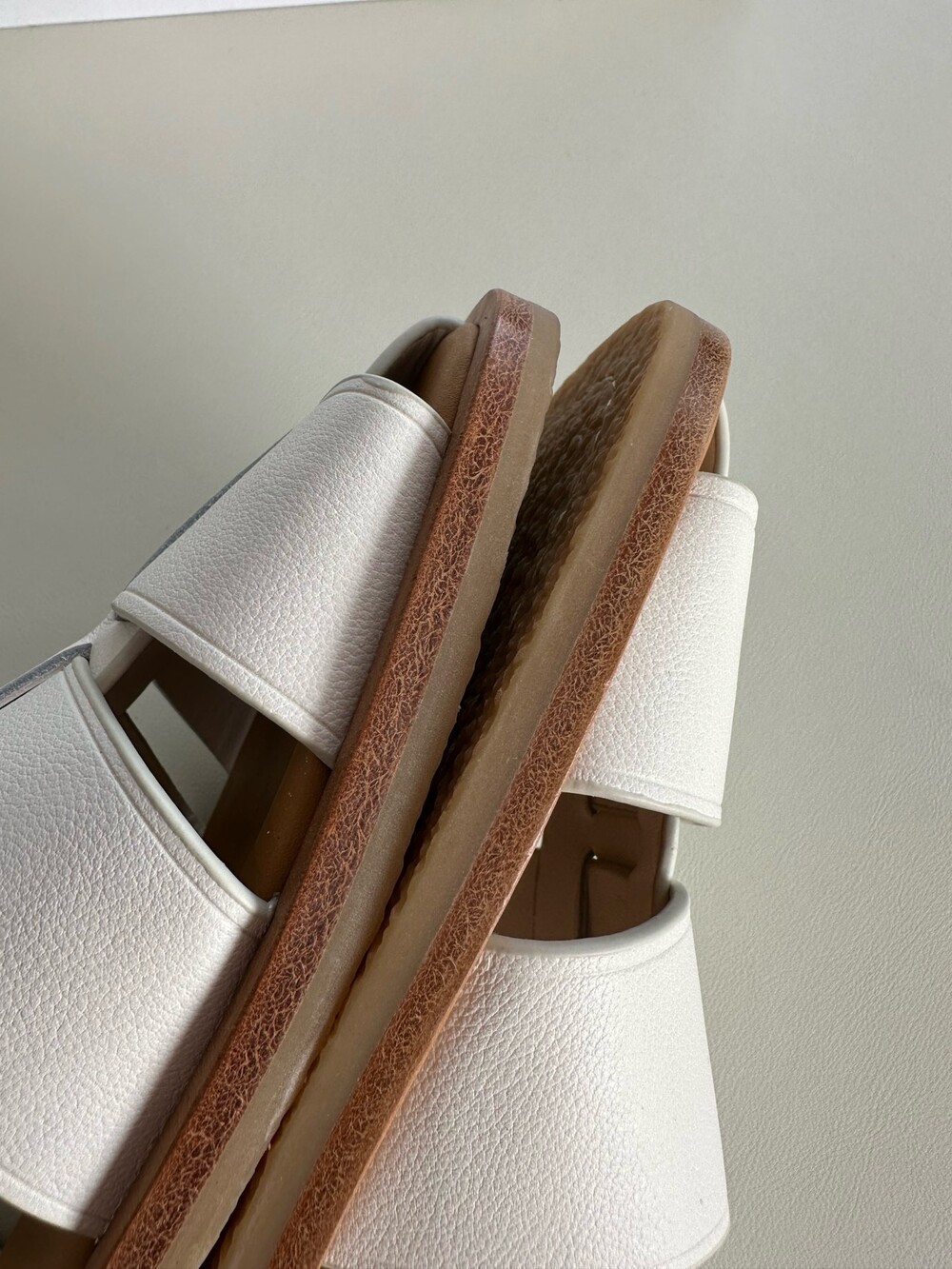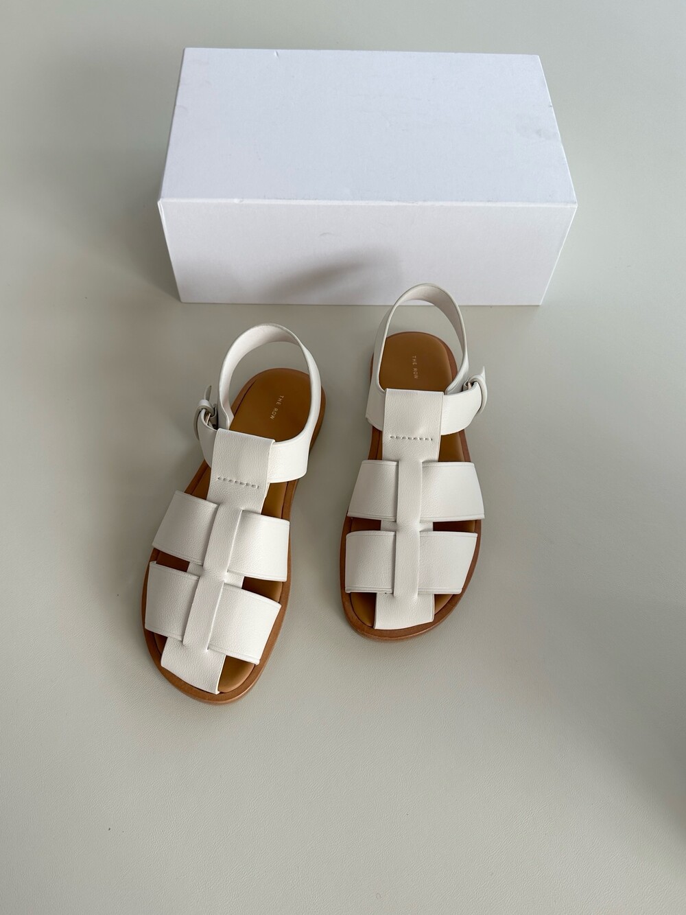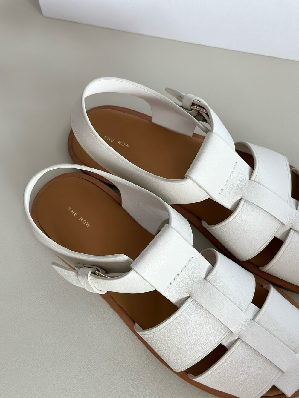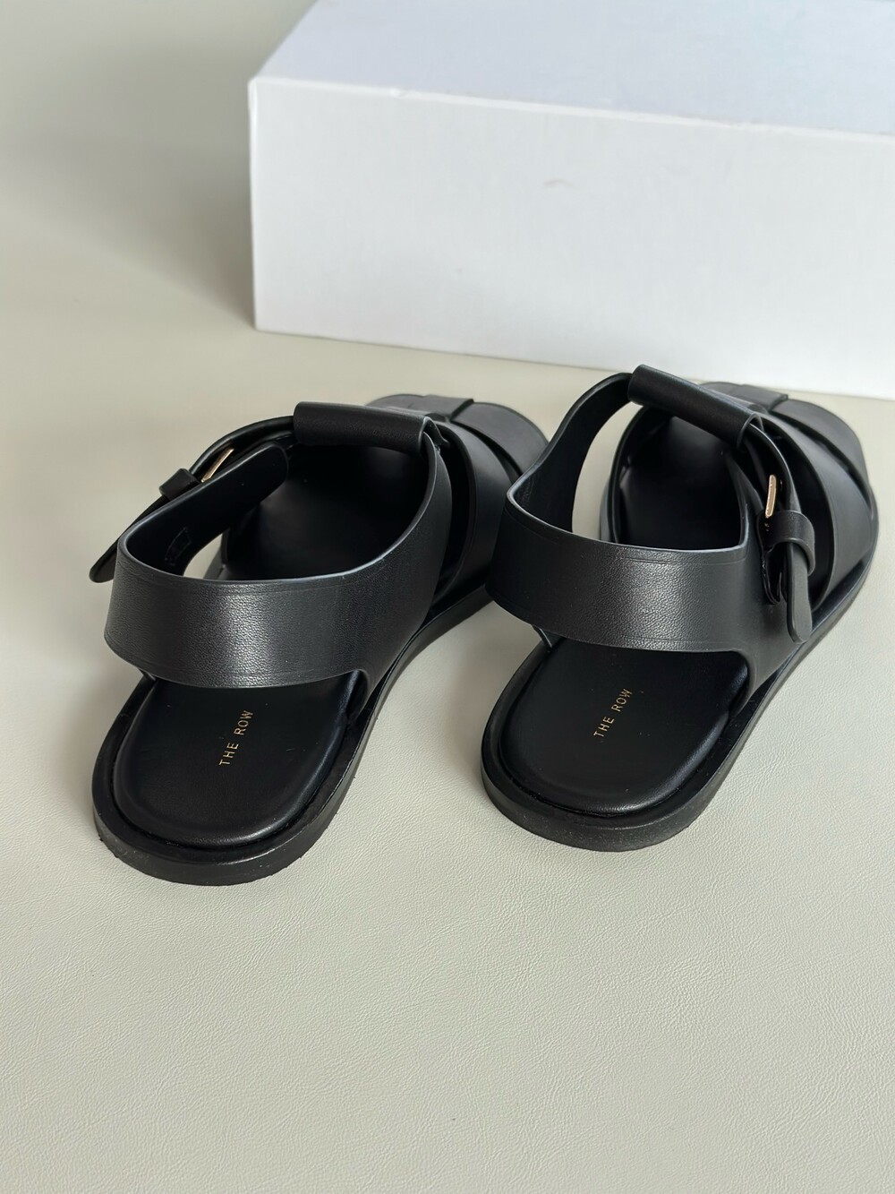 그레인 카프스킨 가죽 소재의 피셔맨 스타일 샌들. 심리스 스트랩 디자인 및