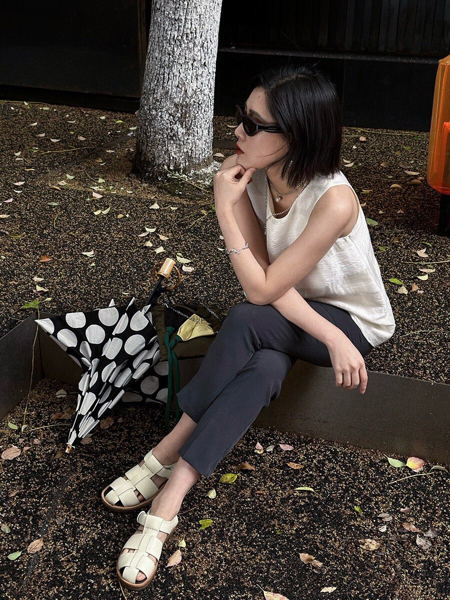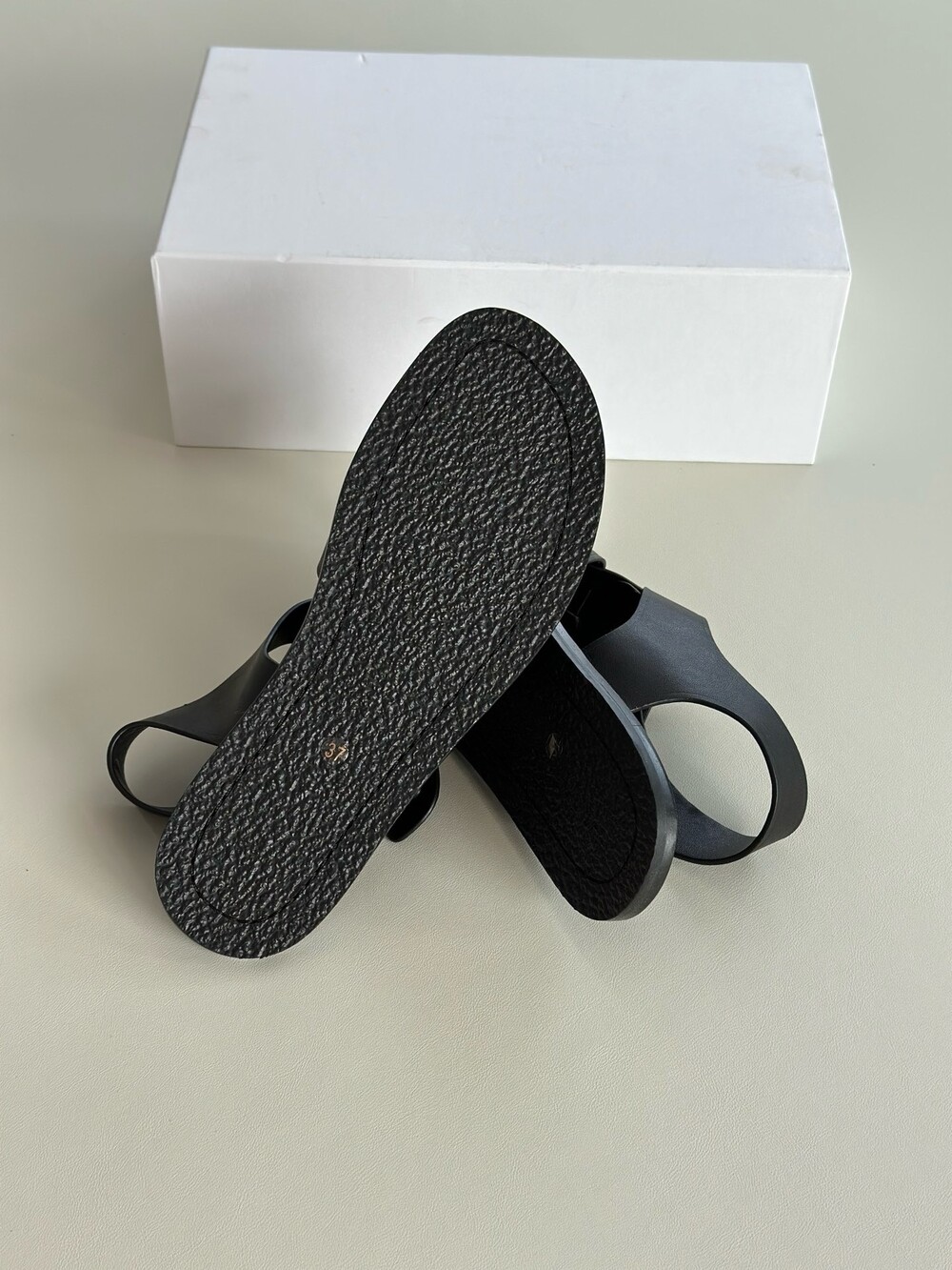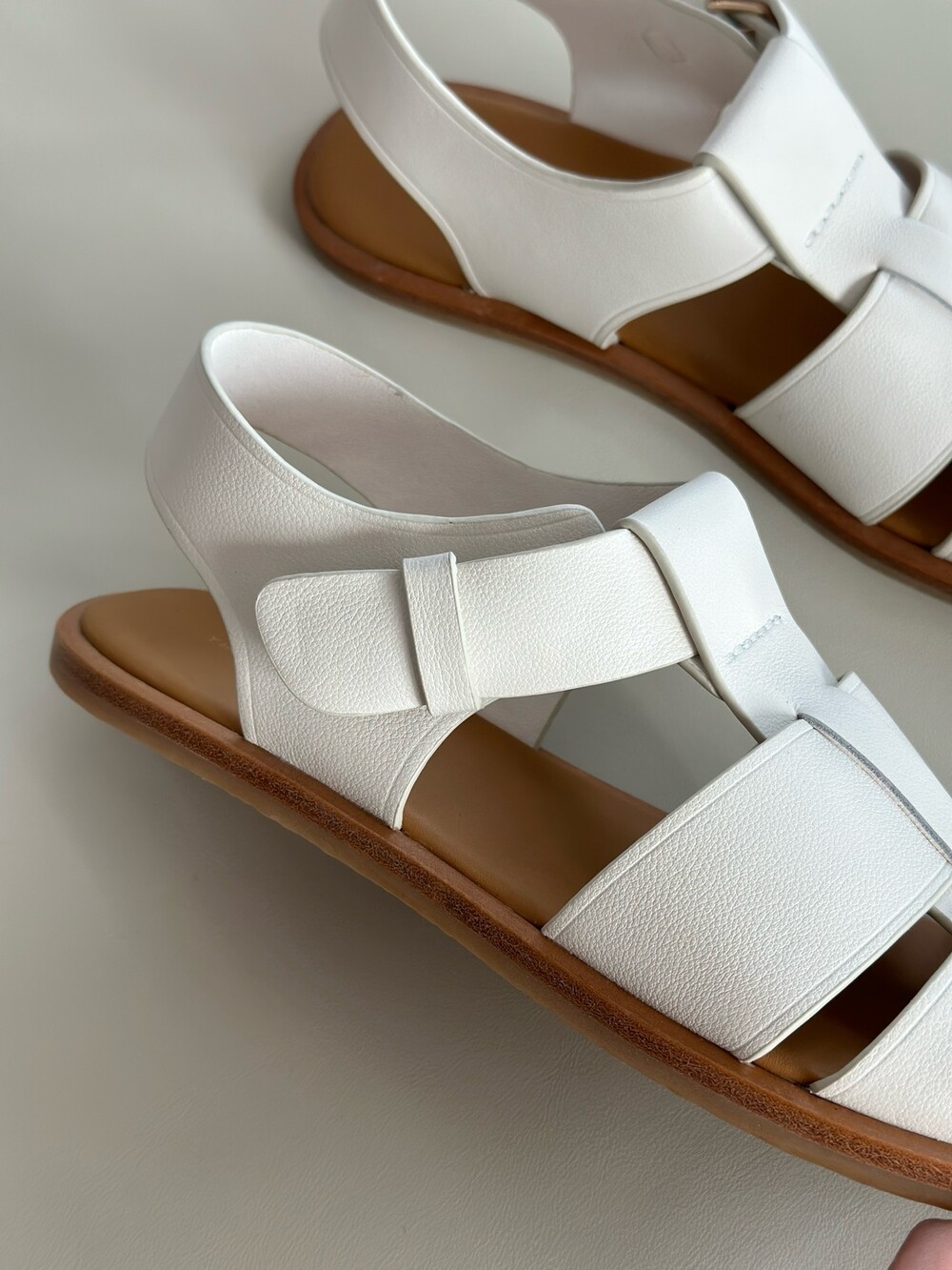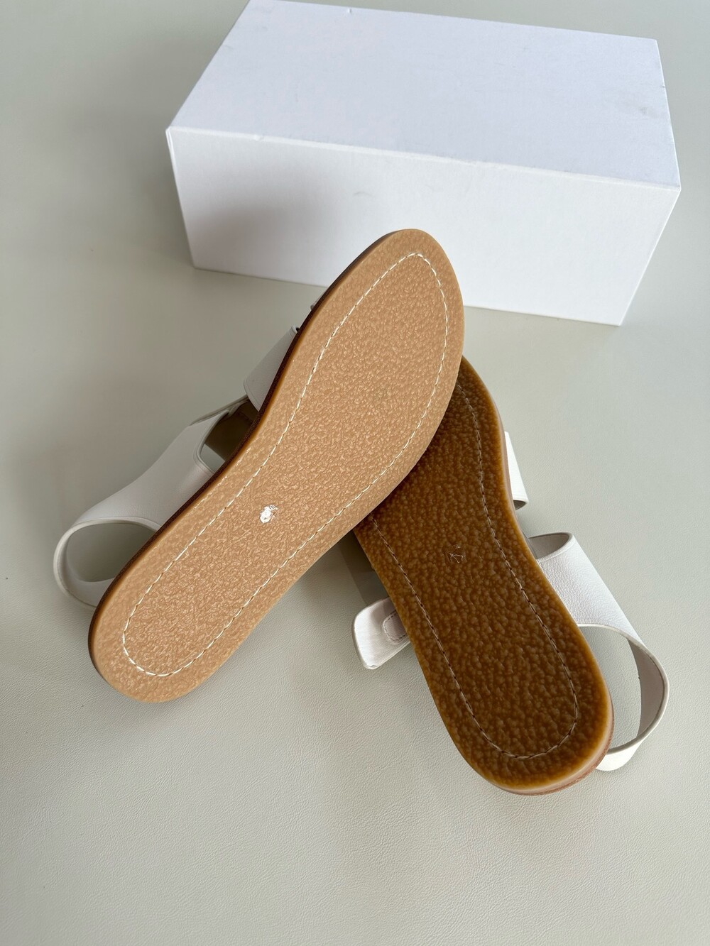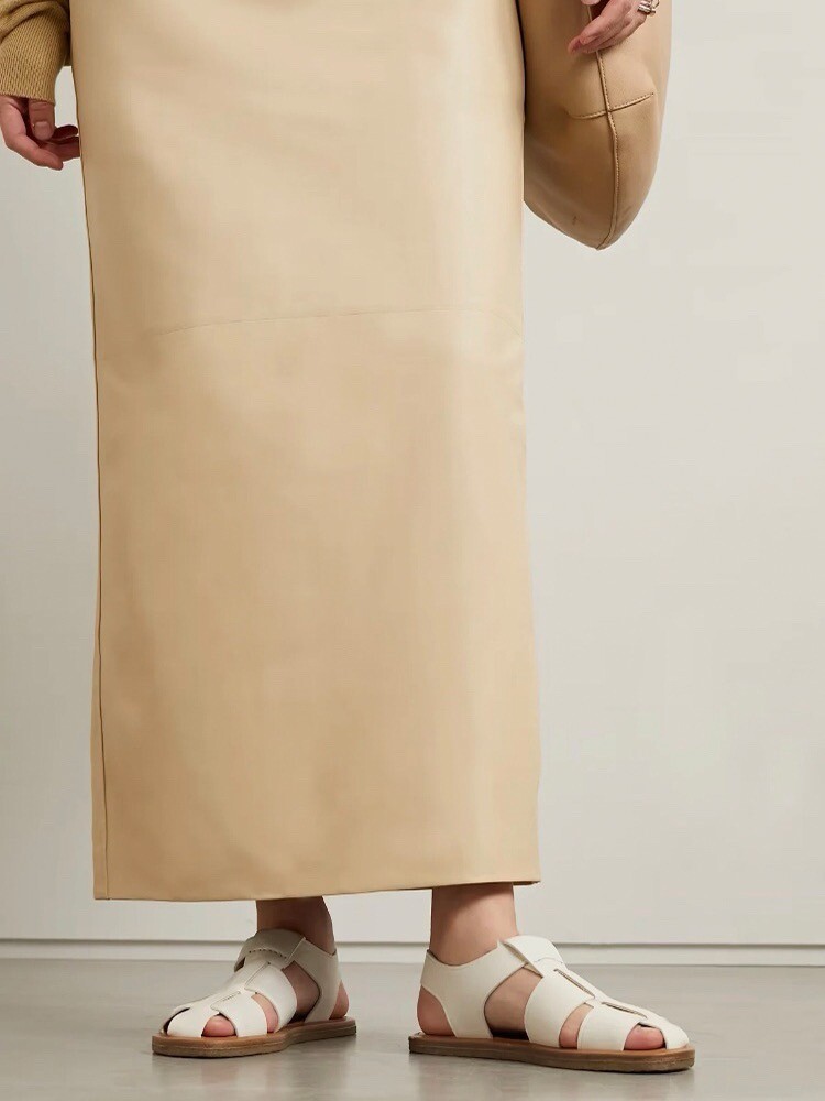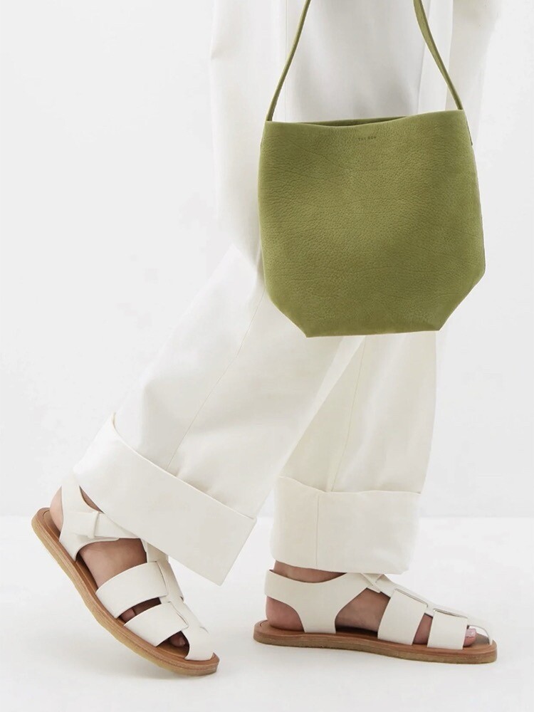 그레인 카프스킨 가죽 소재의 피셔맨 스타일 샌들. 심리스 스트랩 디자인 및