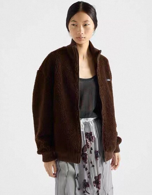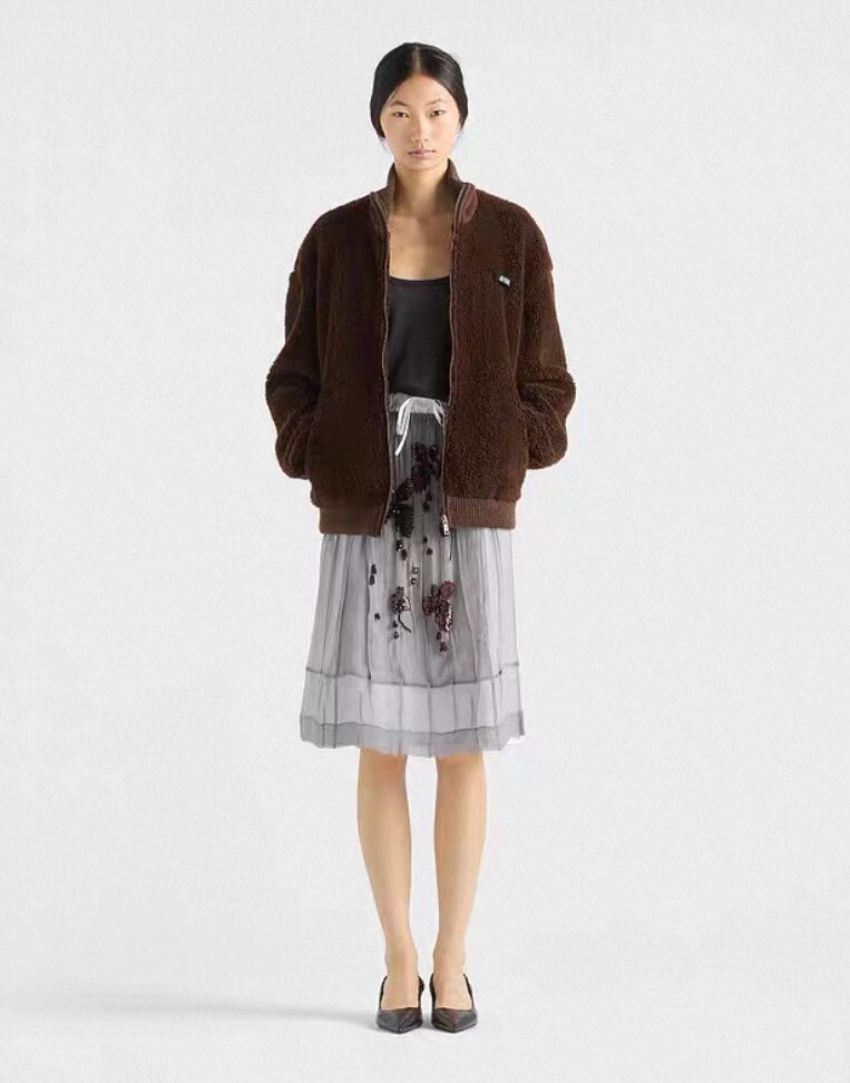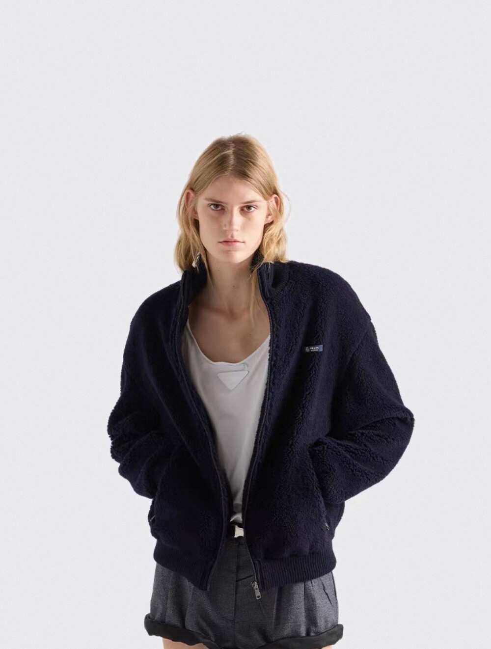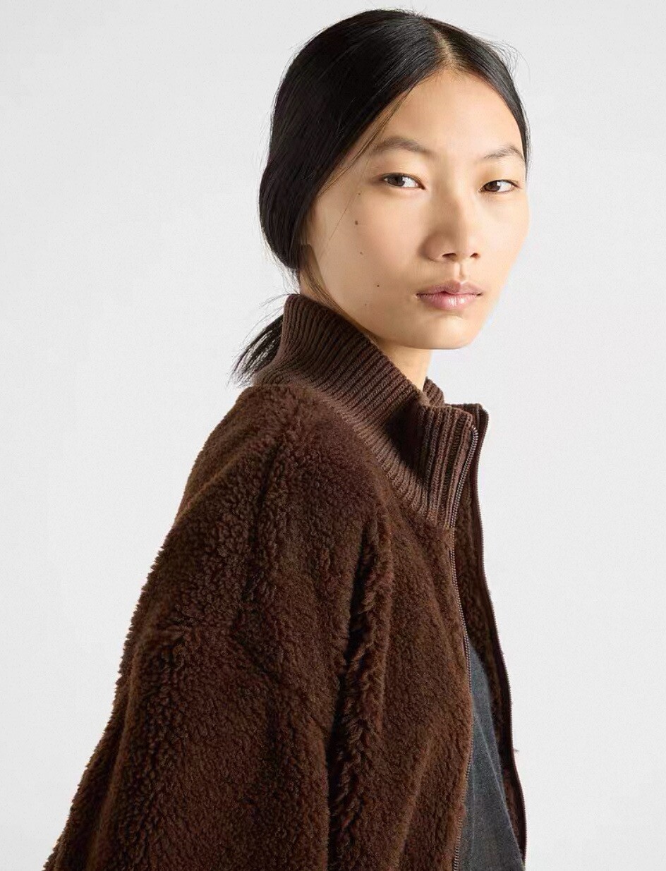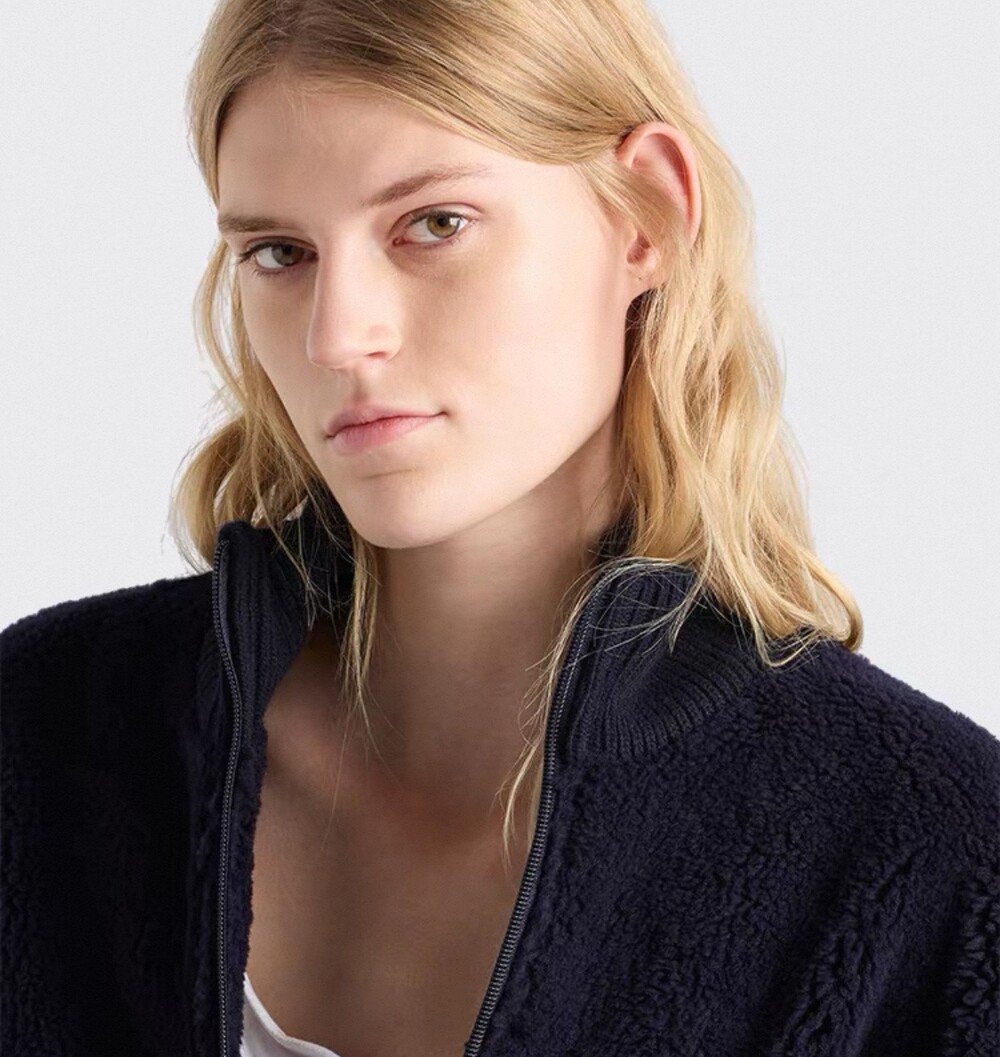 따뜻함과 가벼움이 프라다 스타일로 재해석됩니다. 세련된 라인, 립 니트 커프스 및 은은한 로고가 특징인 재킷입니다.