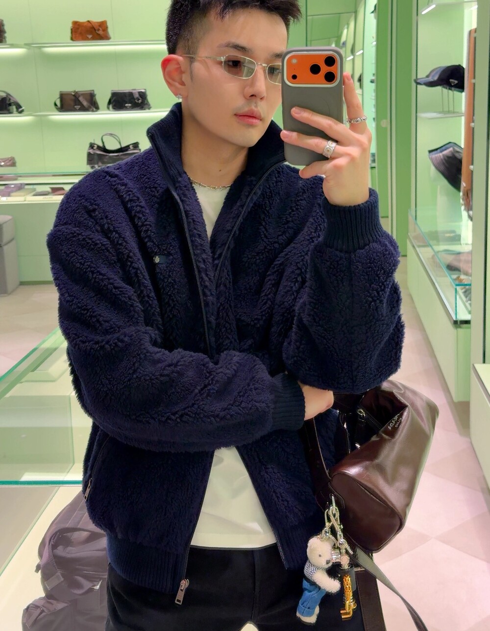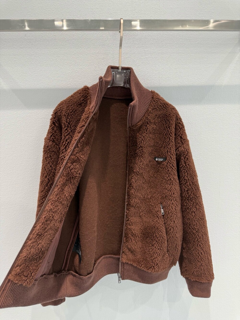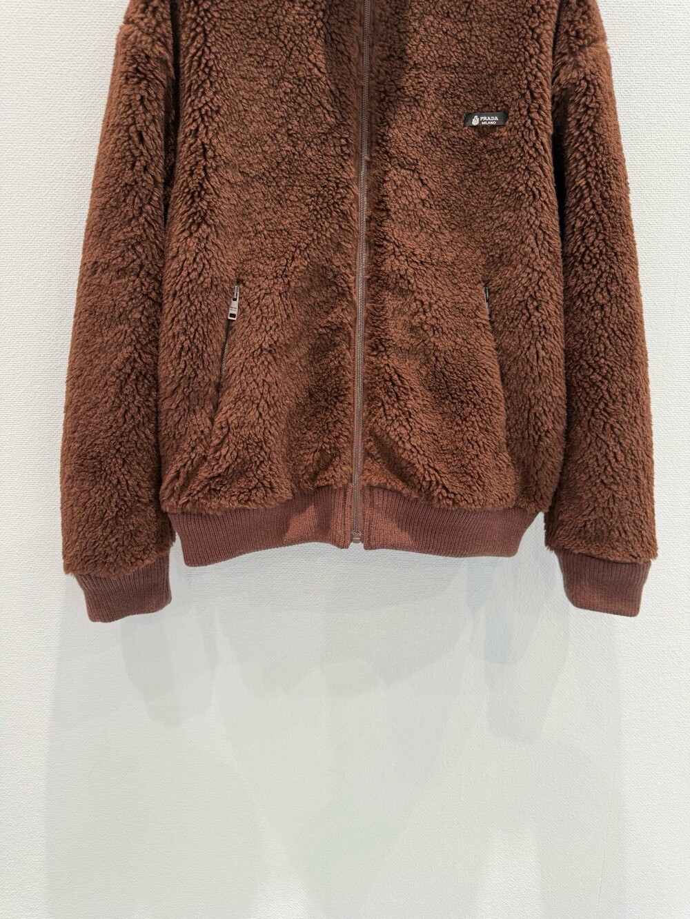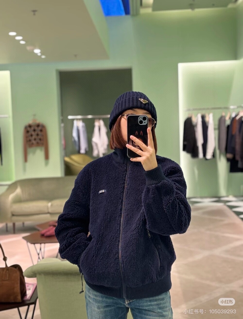 따뜻함과 가벼움이 프라다 스타일로 재해석됩니다. 세련된 라인, 립 니트 커프스 및 은은한 로고가 특징인 재킷입니다.