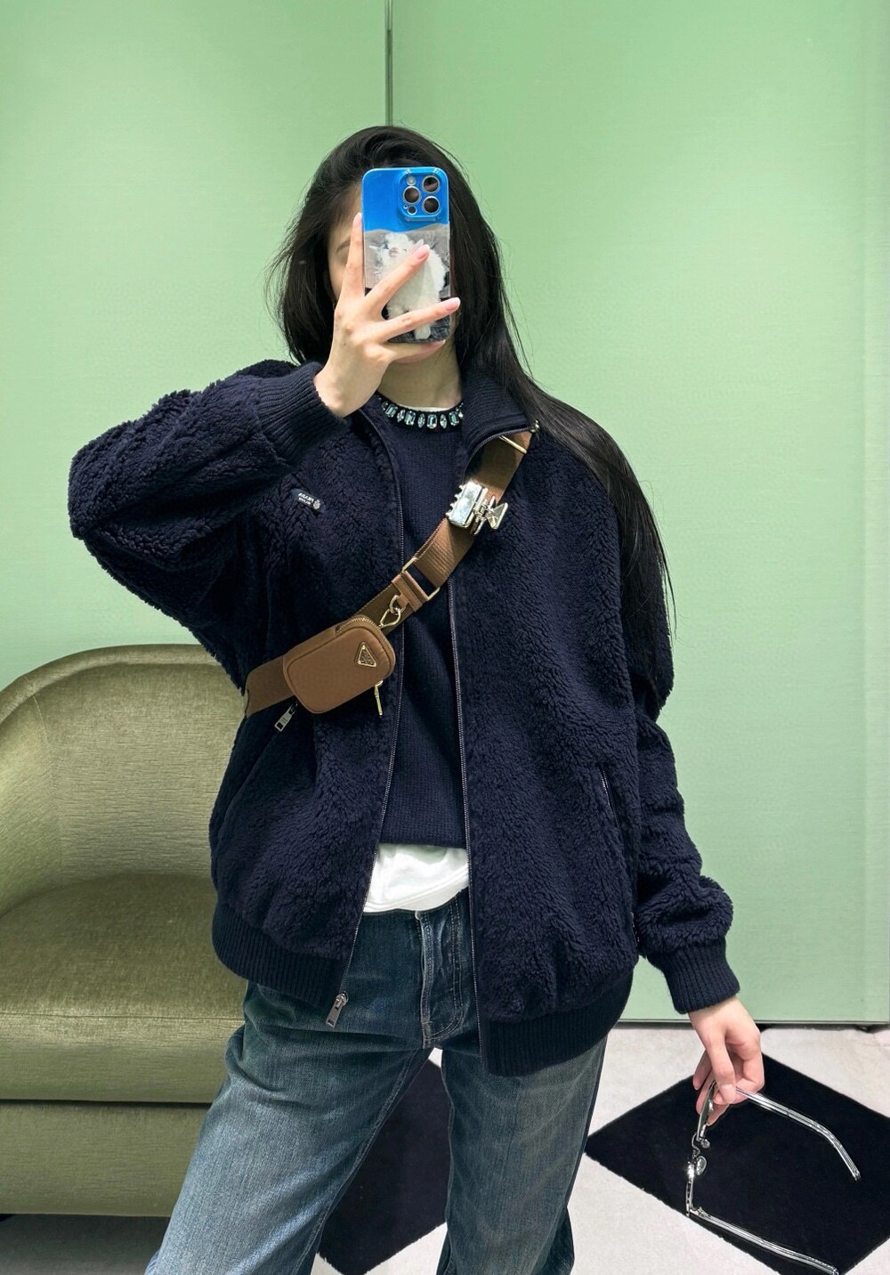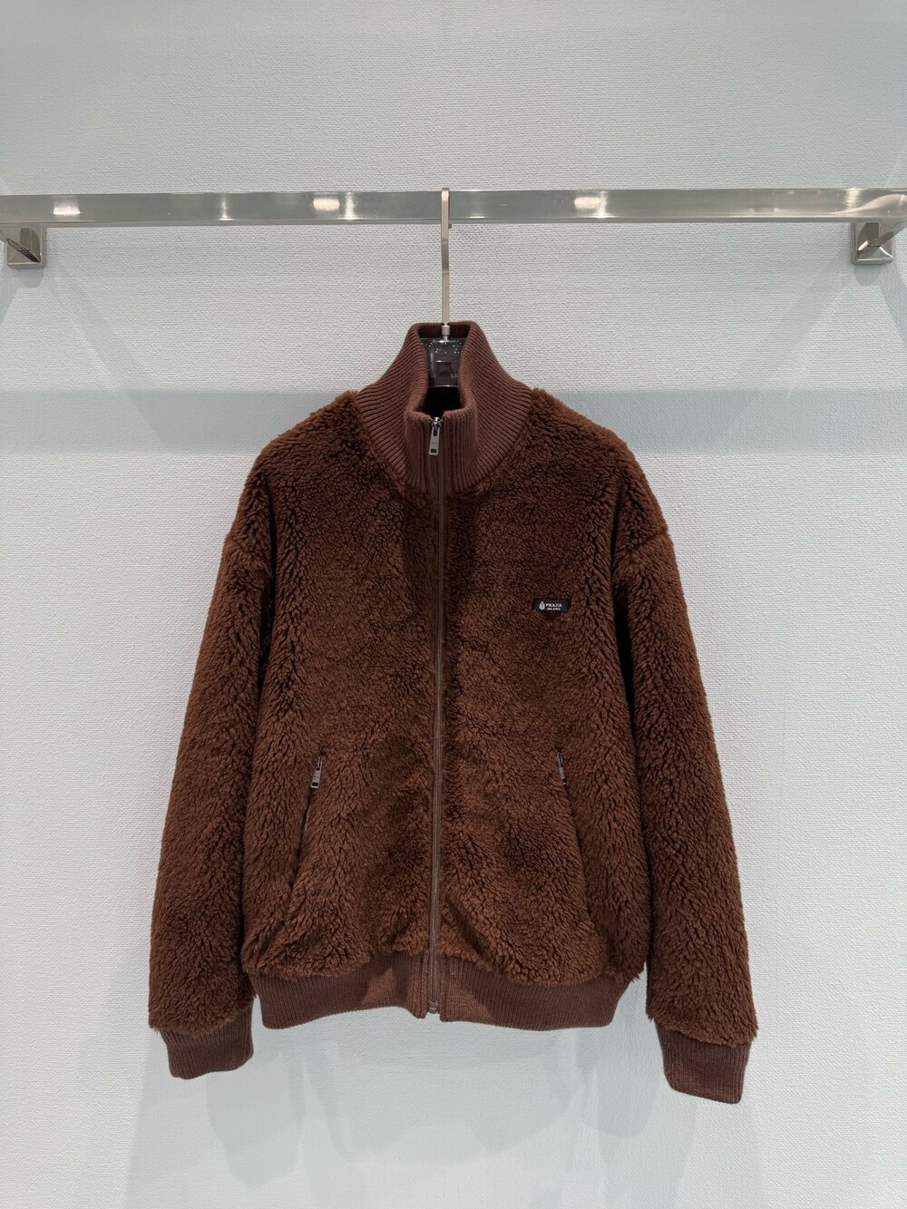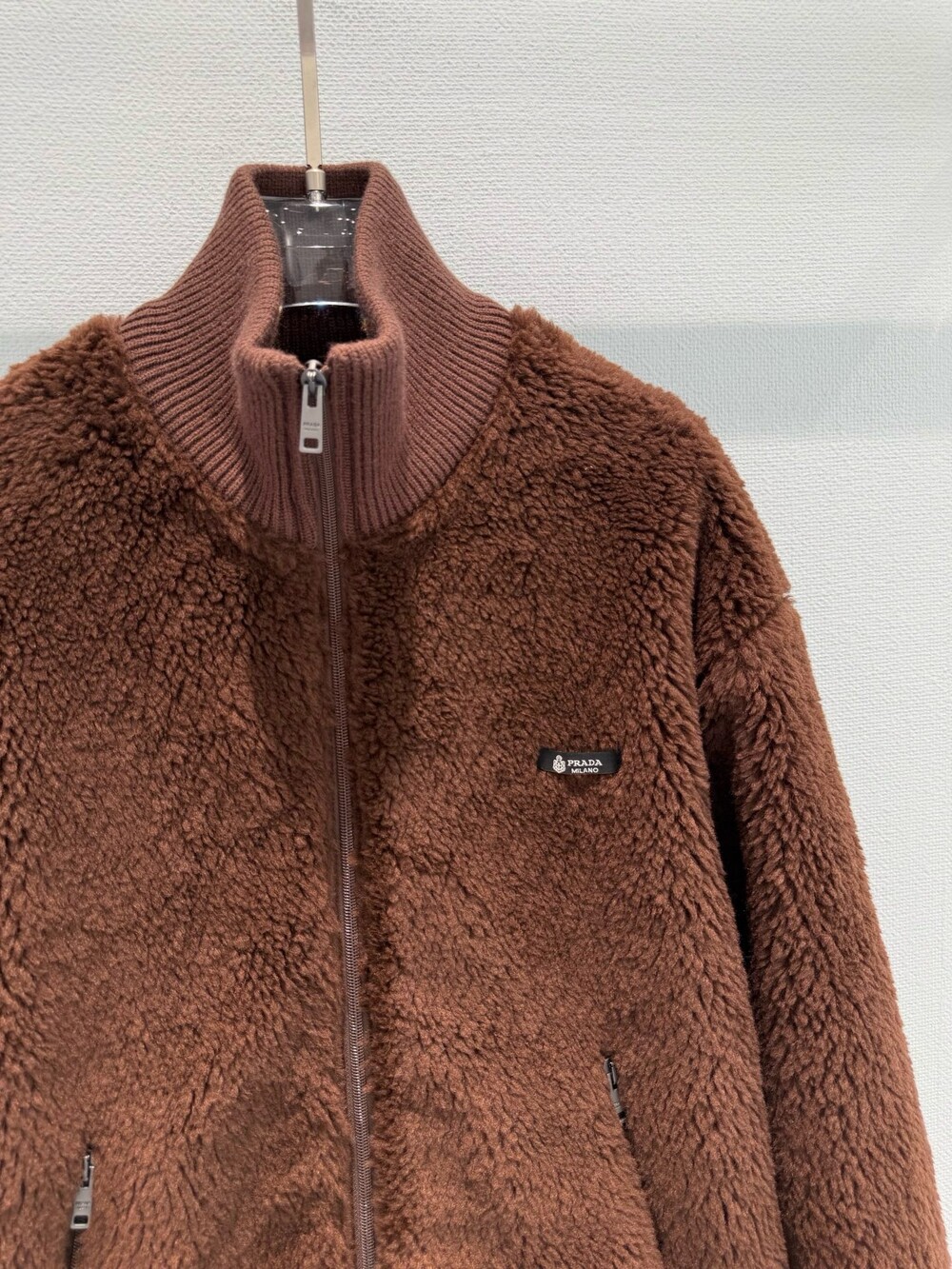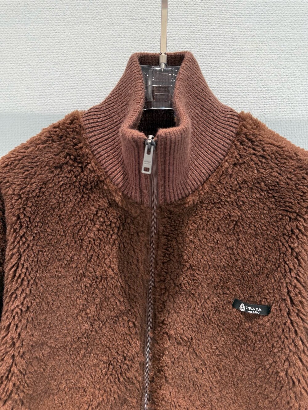따뜻함과 가벼움이 프라다 스타일로 재해석됩니다. 세련된 라인, 립 니트 커프스 및 은은한 로고가 특징인 재킷입니다.