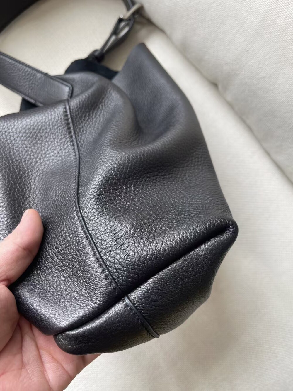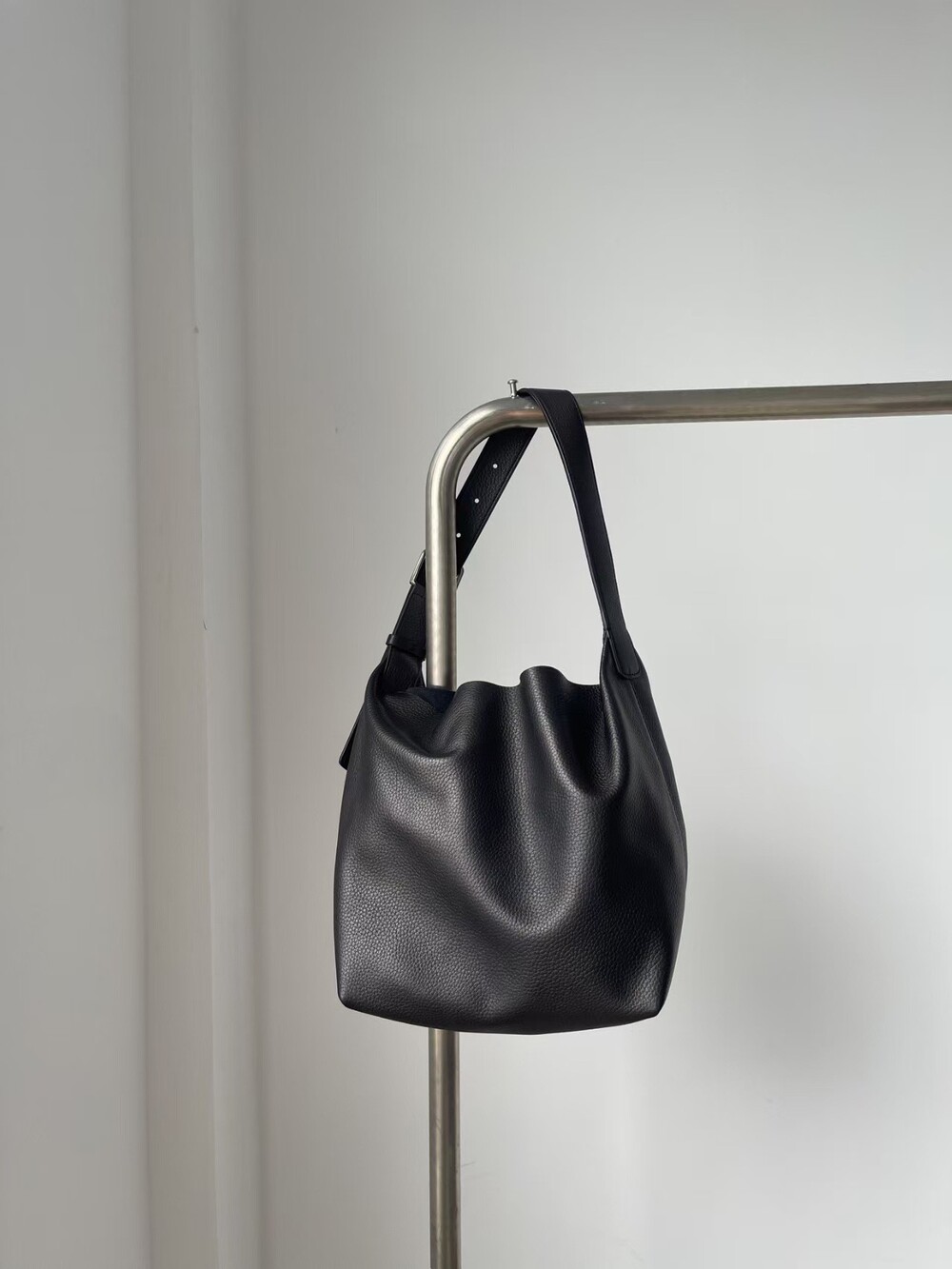 견고한 디어스킨 가죽 소재의 컴팩트 숄더백으로 플랫 베이스와 메탈 버클로 조절이 가능한 스트랩이 특징입니다.