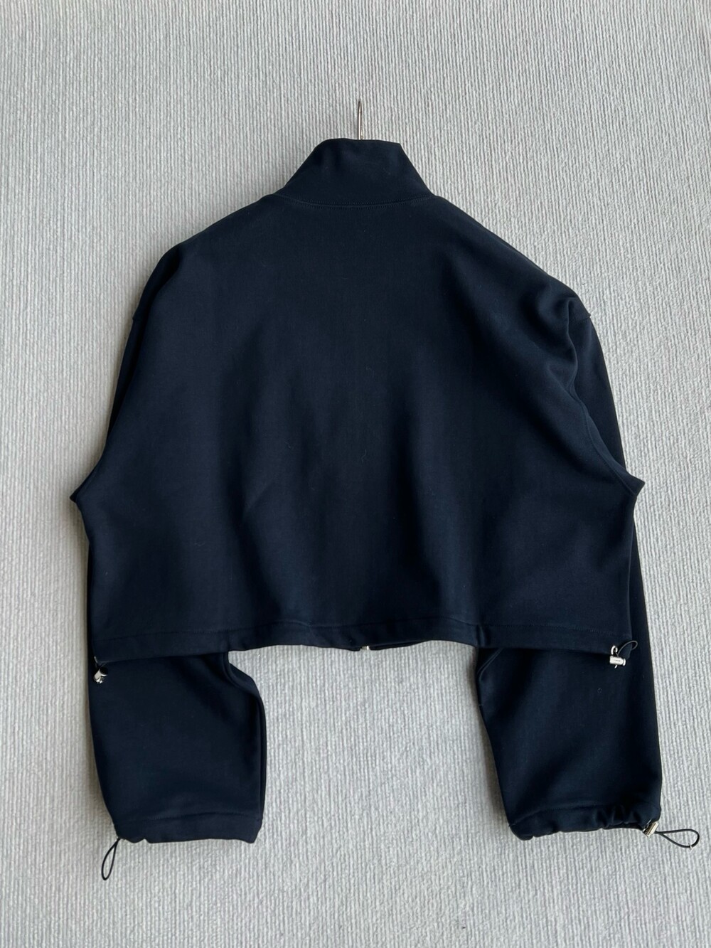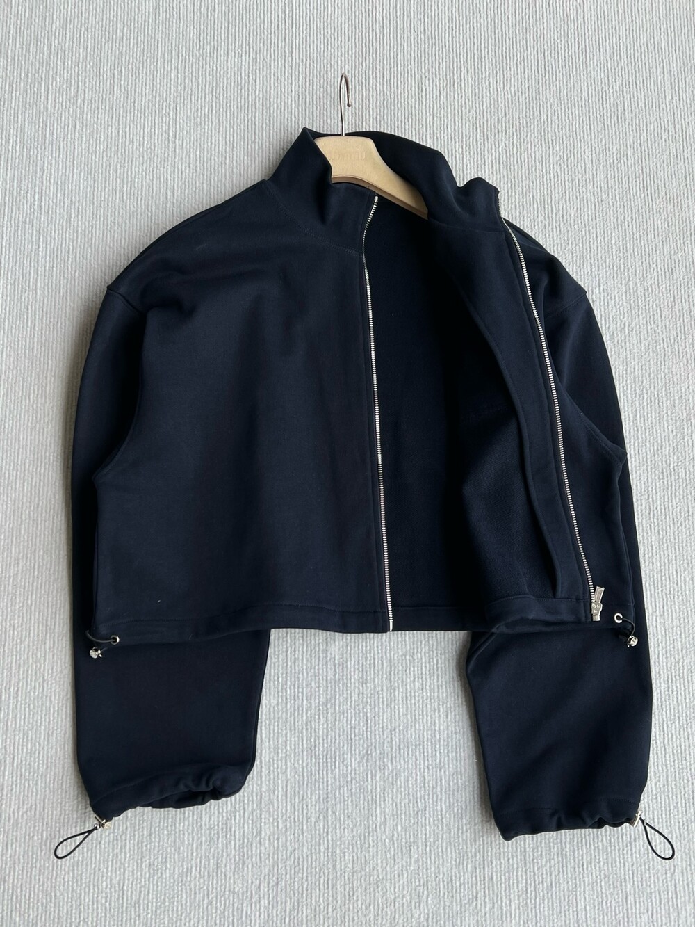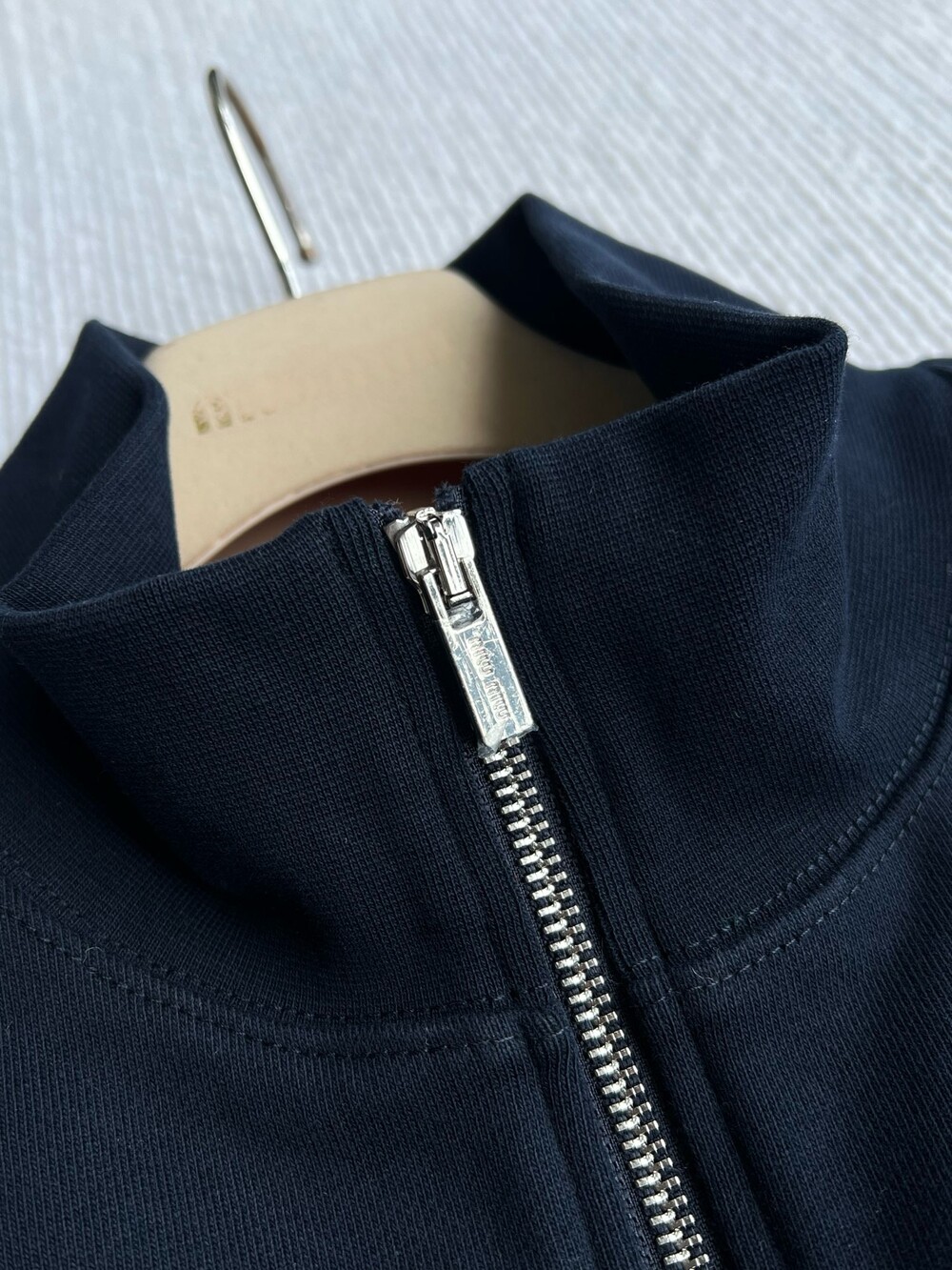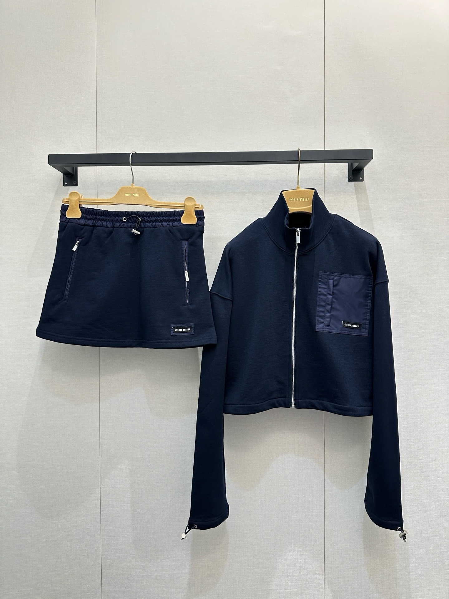 미우미우 워드로브의 필수품인 플리스 재킷은 기술적 패브릭의 특성을 살리면서 스포티하고 크롭된 라인을 강조하는 디테일을 결합하여 현대적이고 캐주얼한 룩의 비율을 새롭게 해석합니다.