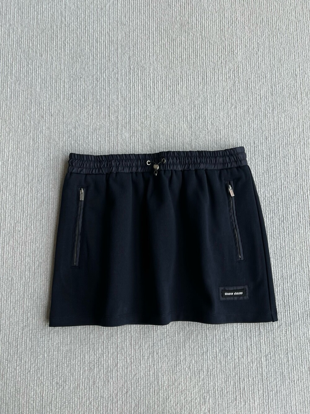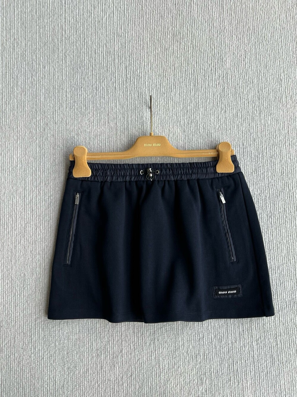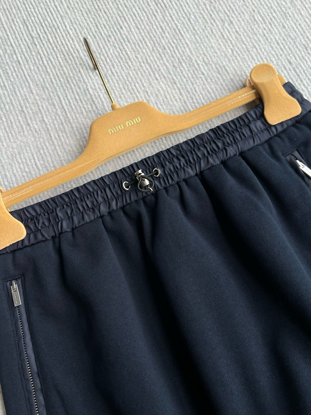 코튼 플리스는 미우미우 워드로브의 상징으로, 미니스커트의 편안하고 스포티한 룩을 정의합니다. 기술적인 패브릭을 실루엣과 캐주얼 스타일을 돋보이게 하는 디테일과 결합했습니다.
