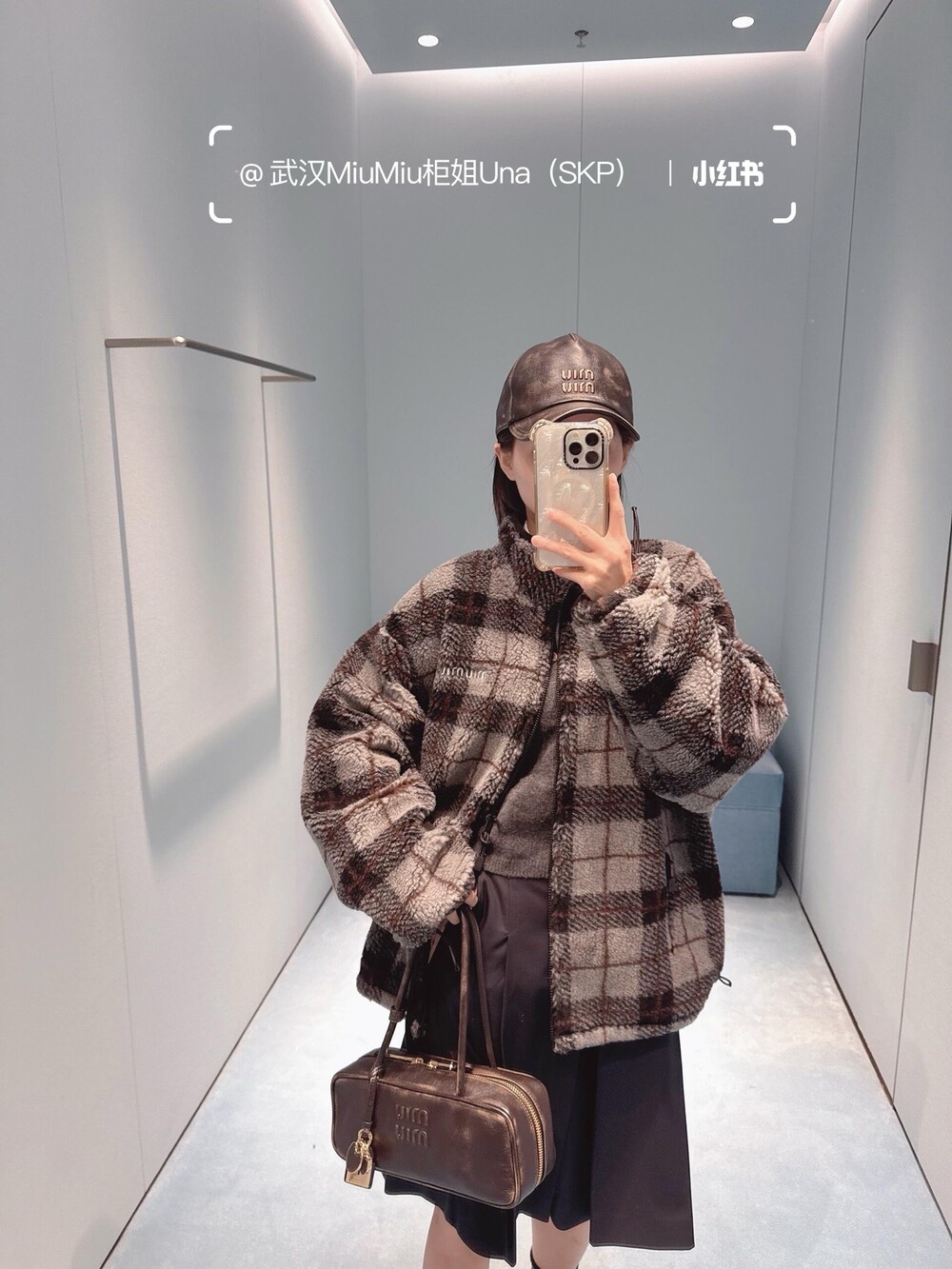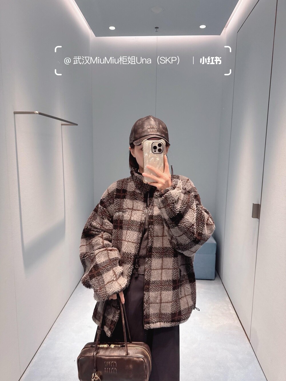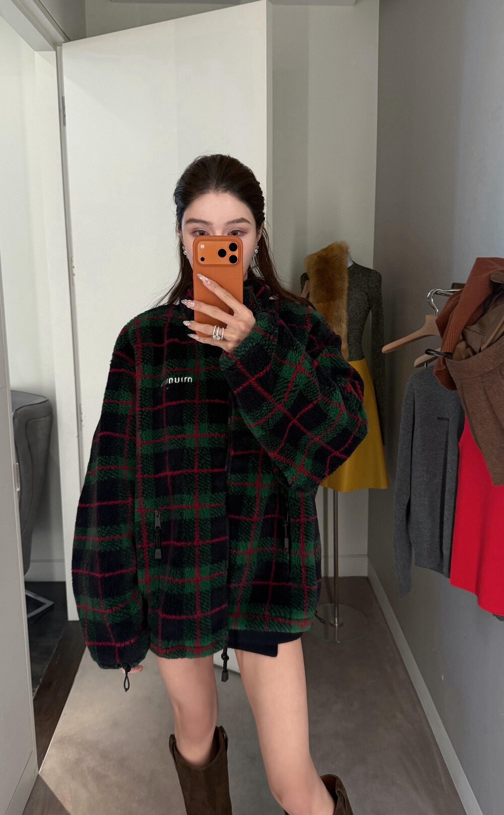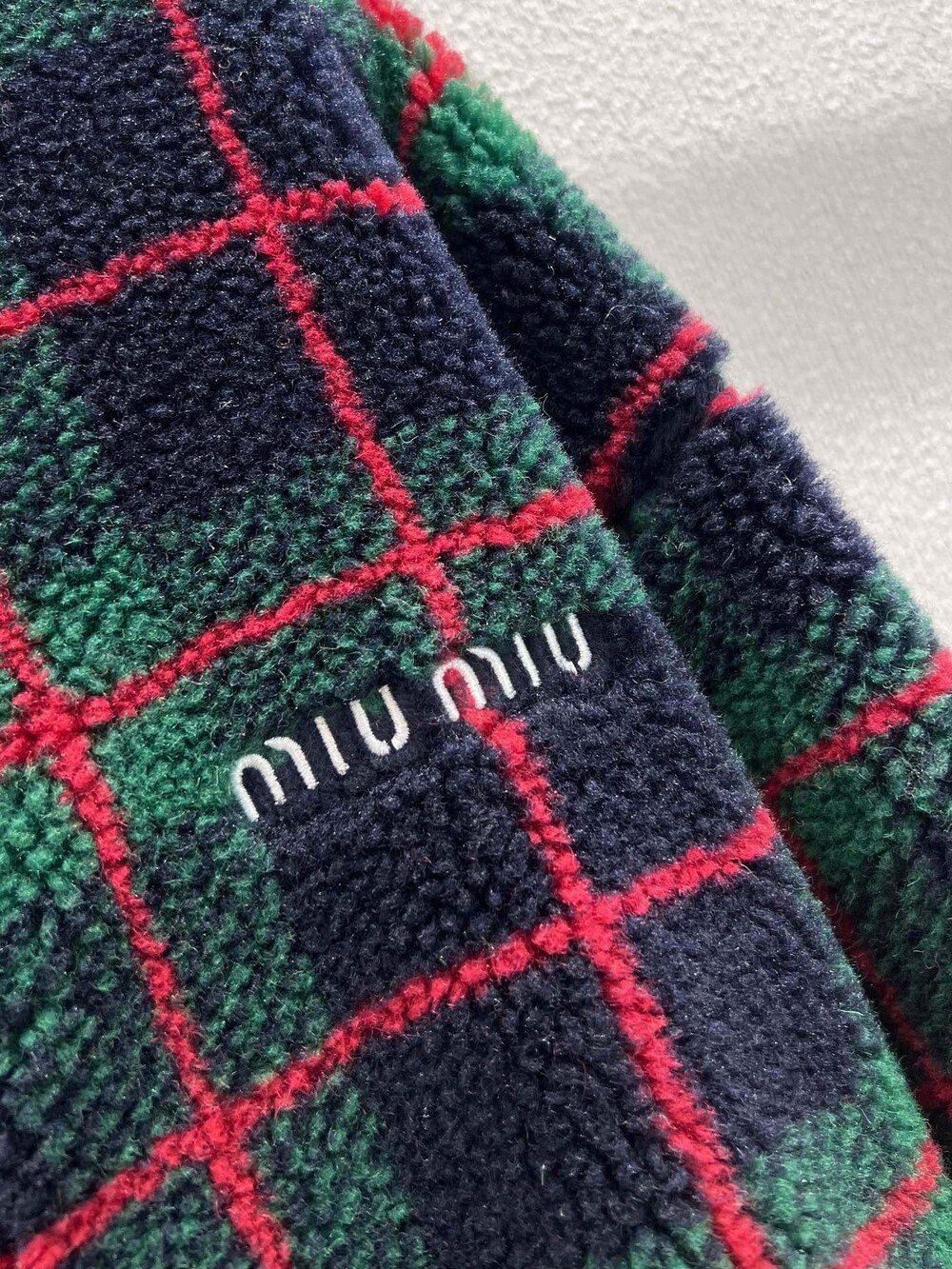아이코닉한 플리스 재킷을 울 소재로 볼륨감과 부드러움을 더한 테디 버전으로 재해석했습니다. 클래식한 체크 패턴은 남성복에서 영감을 받아 스포티한 페미니티를 미우미우만의 감각으로 표현합니다.